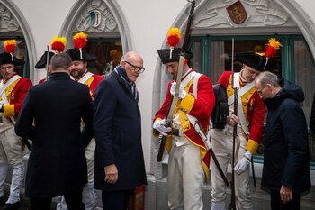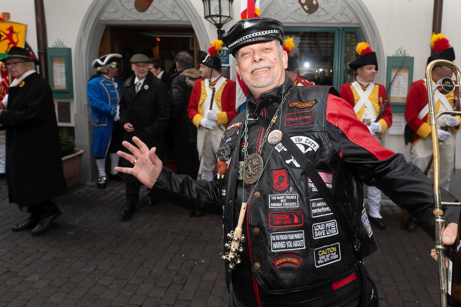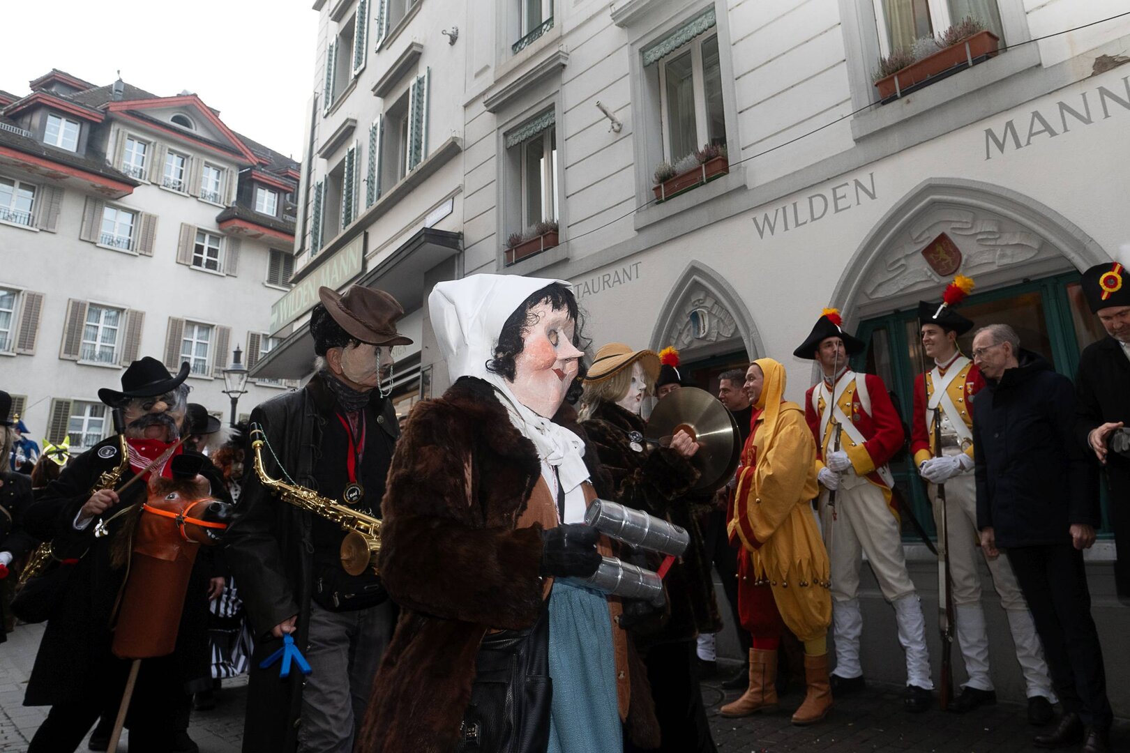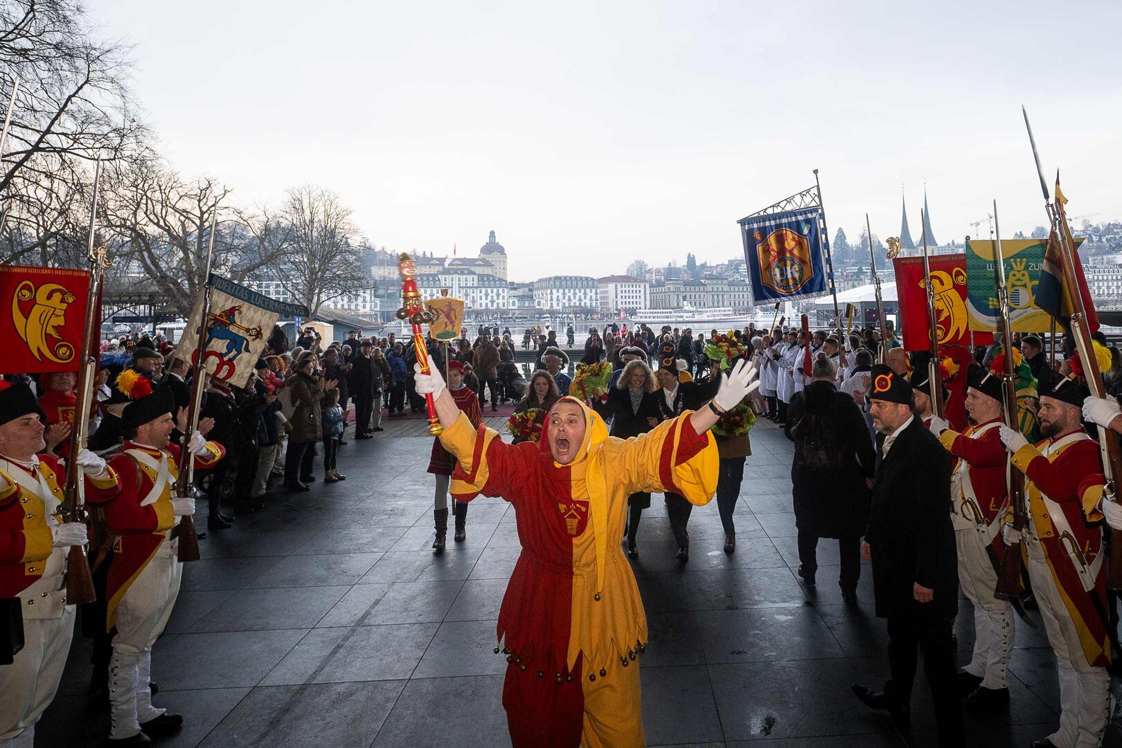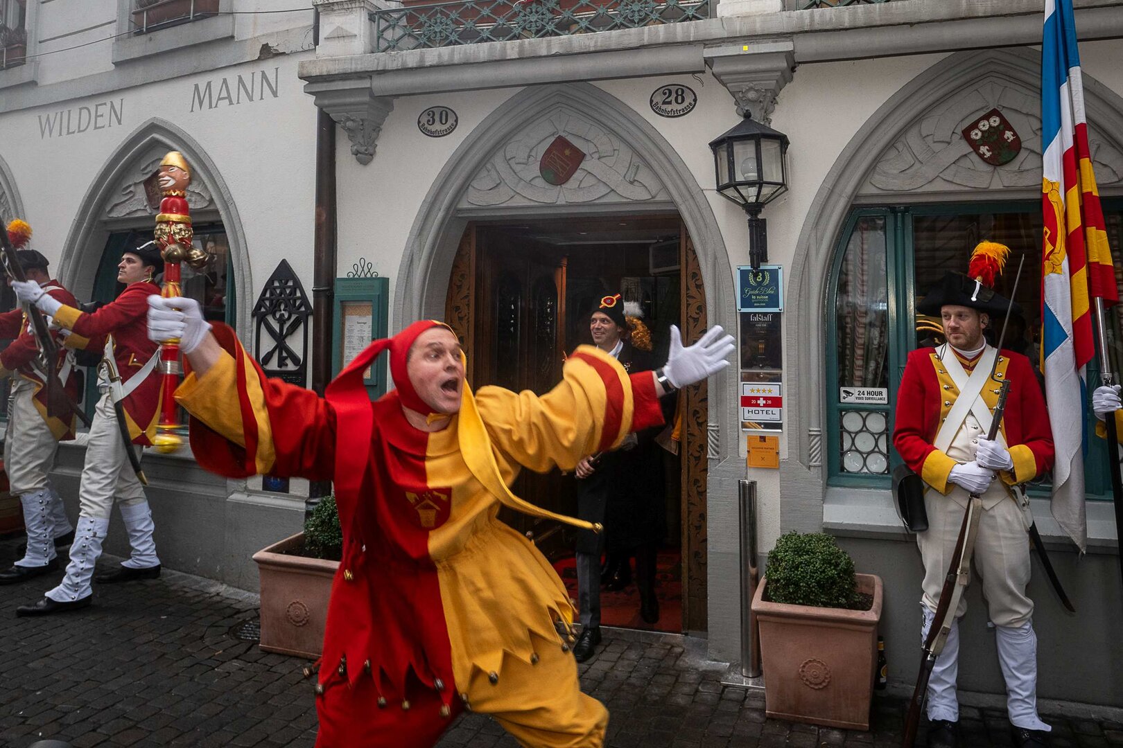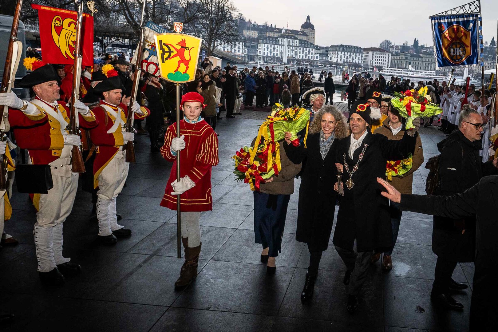 Auf dem Kapellplatz warteten bereits die Zunftgruppierungen: die strammen Grenadiere, das Umzugskomitee sowie die als Waldmanndli bekannte Historische Zunftgruppe. Die Feldmusik spielte auf, Hunderte von Freunden und Bekannten jubelten dem Fritschivater 2026 zu. Für zusätzlichen Schwung sorgte der Zunftnarr, der stilecht mit dem Lastenvelo auf den Kapellplatz rollte und das Publikum lautstark zum «Brüeleee» animierte. Nach einem ersten Umzug durch die Altstadt führte der Weg in den Wilden Mann. Dort fand mit der «Aufwartung» beim Zunftmeister der eigentliche Kern der Abholung statt. Rund zwei Dutzend Gruppen – vom Neuzünftler-Jahrgang über Vergnügungskomitees bis hin zu Delegationen aus Wirtschaft, Vereinigungen und weiteren Kreisen – überbrachten ihre Glückwünsche, meist mit viel Witz und Charme.