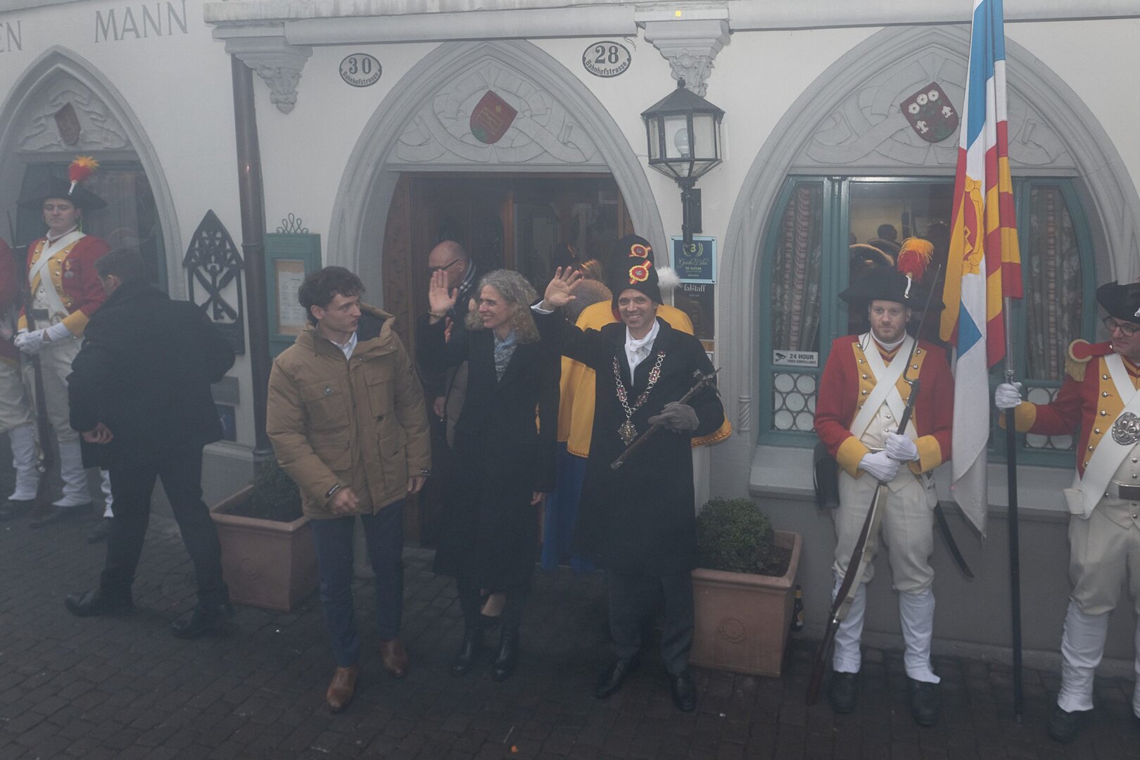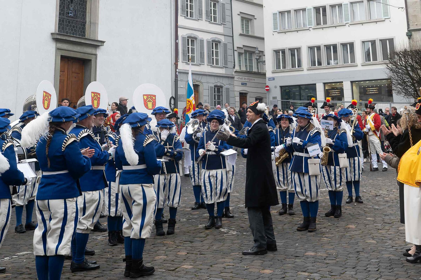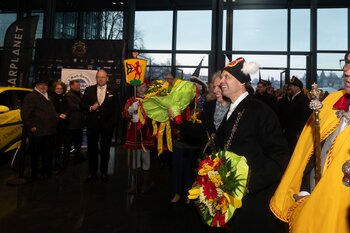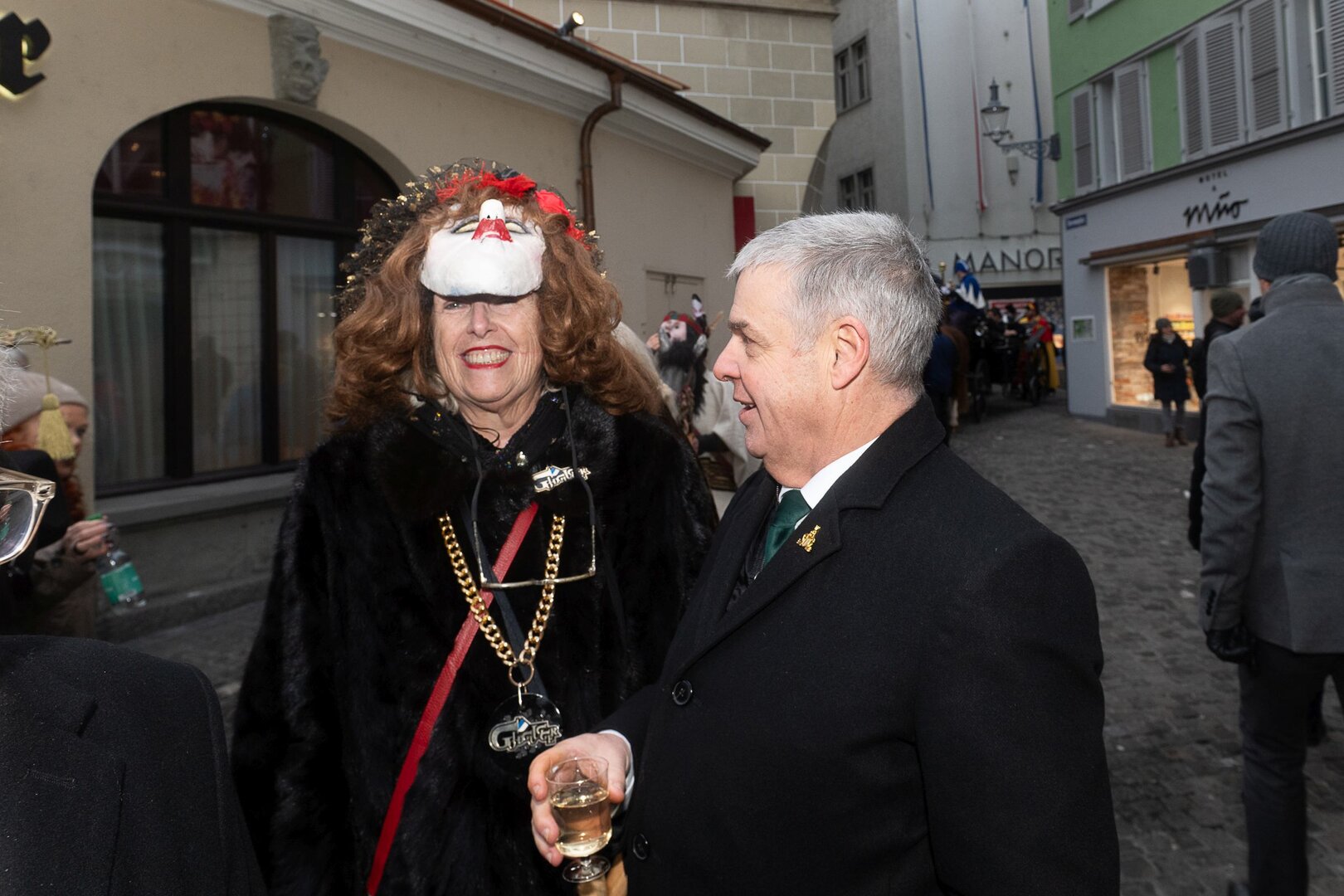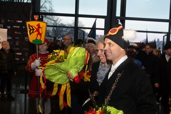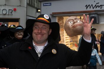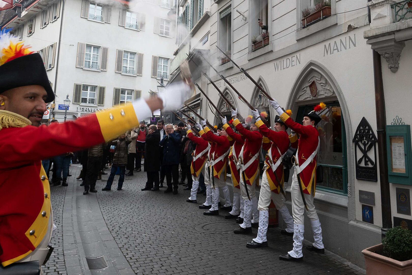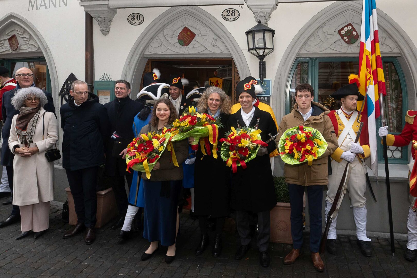 Auf dem Kapellplatz warteten bereits die Zunftgruppierungen: die strammen Grenadiere, das Umzugskomitee sowie die als Waldmanndli bekannte Historische Zunftgruppe. Die Feldmusik spielte auf, Hunderte von Freunden und Bekannten jubelten dem Fritschivater 2026 zu. Für zusätzlichen Schwung sorgte der Zunftnarr, der stilecht mit dem Lastenvelo auf den Kapellplatz rollte und das Publikum lautstark zum «Brüeleee» animierte. Nach einem ersten Umzug durch die Altstadt führte der Weg in den Wilden Mann. Dort fand mit der «Aufwartung» beim Zunftmeister der eigentliche Kern der Abholung statt. Rund zwei Dutzend Gruppen – vom Neuzünftler-Jahrgang über Vergnügungskomitees bis hin zu Delegationen aus Wirtschaft, Vereinigungen und weiteren Kreisen – überbrachten ihre Glückwünsche, meist mit viel Witz und Charme.