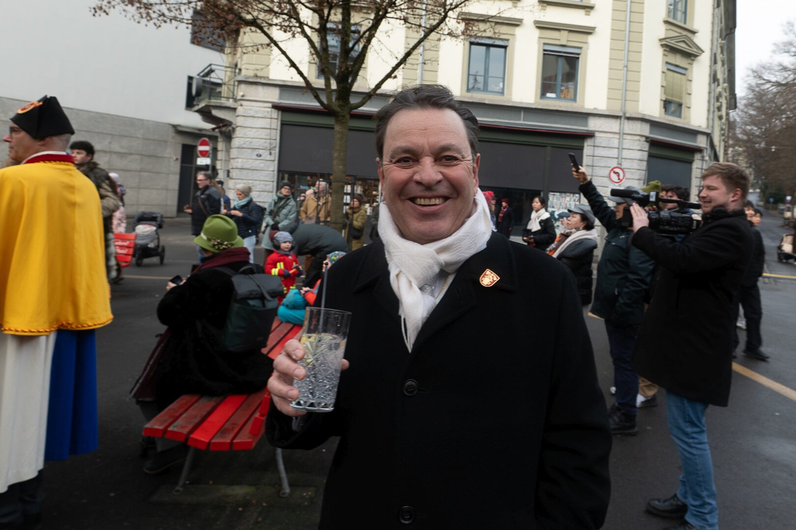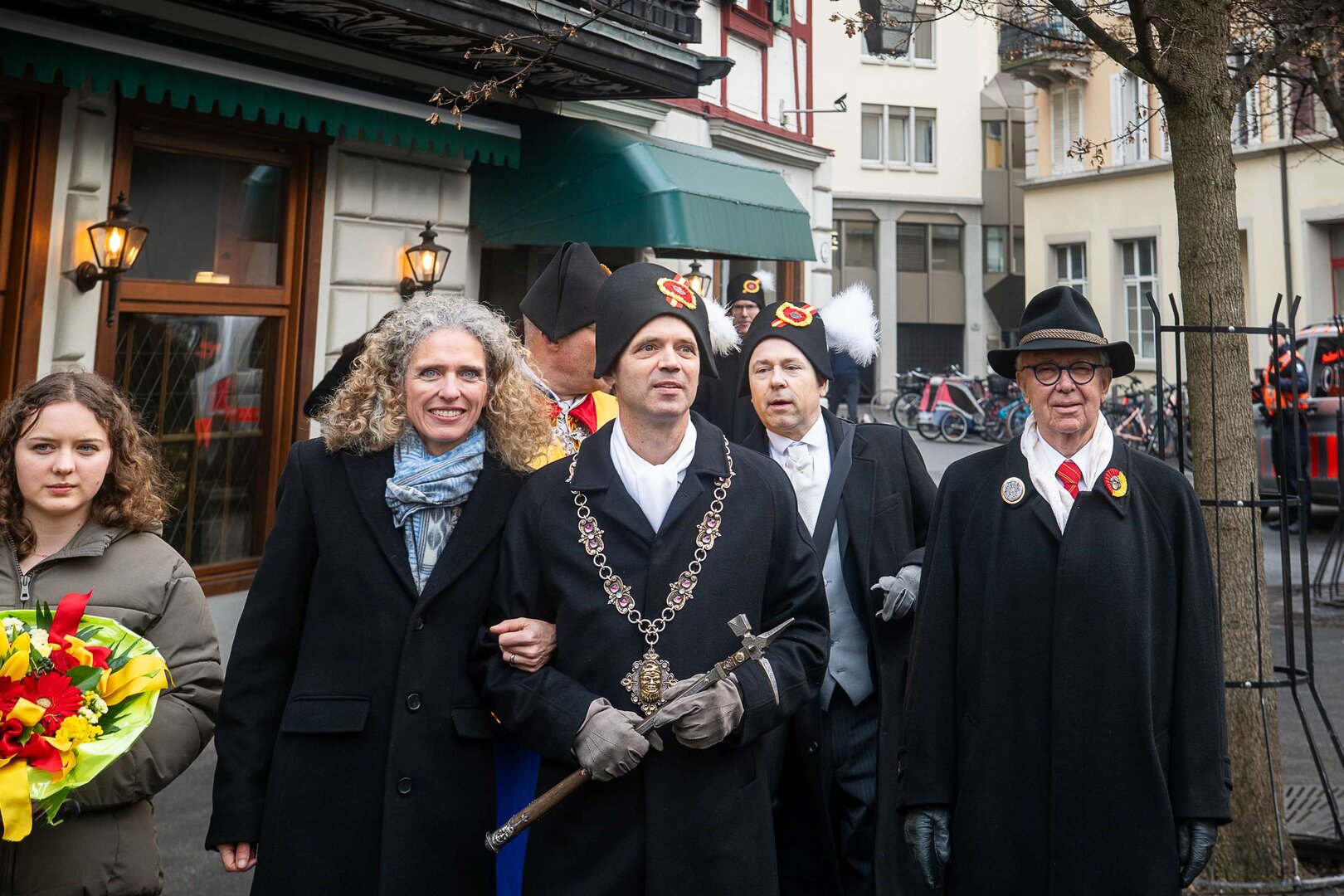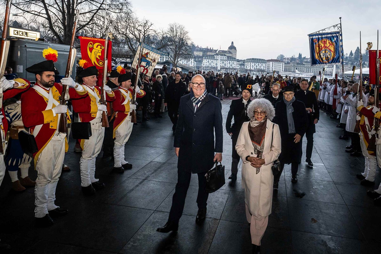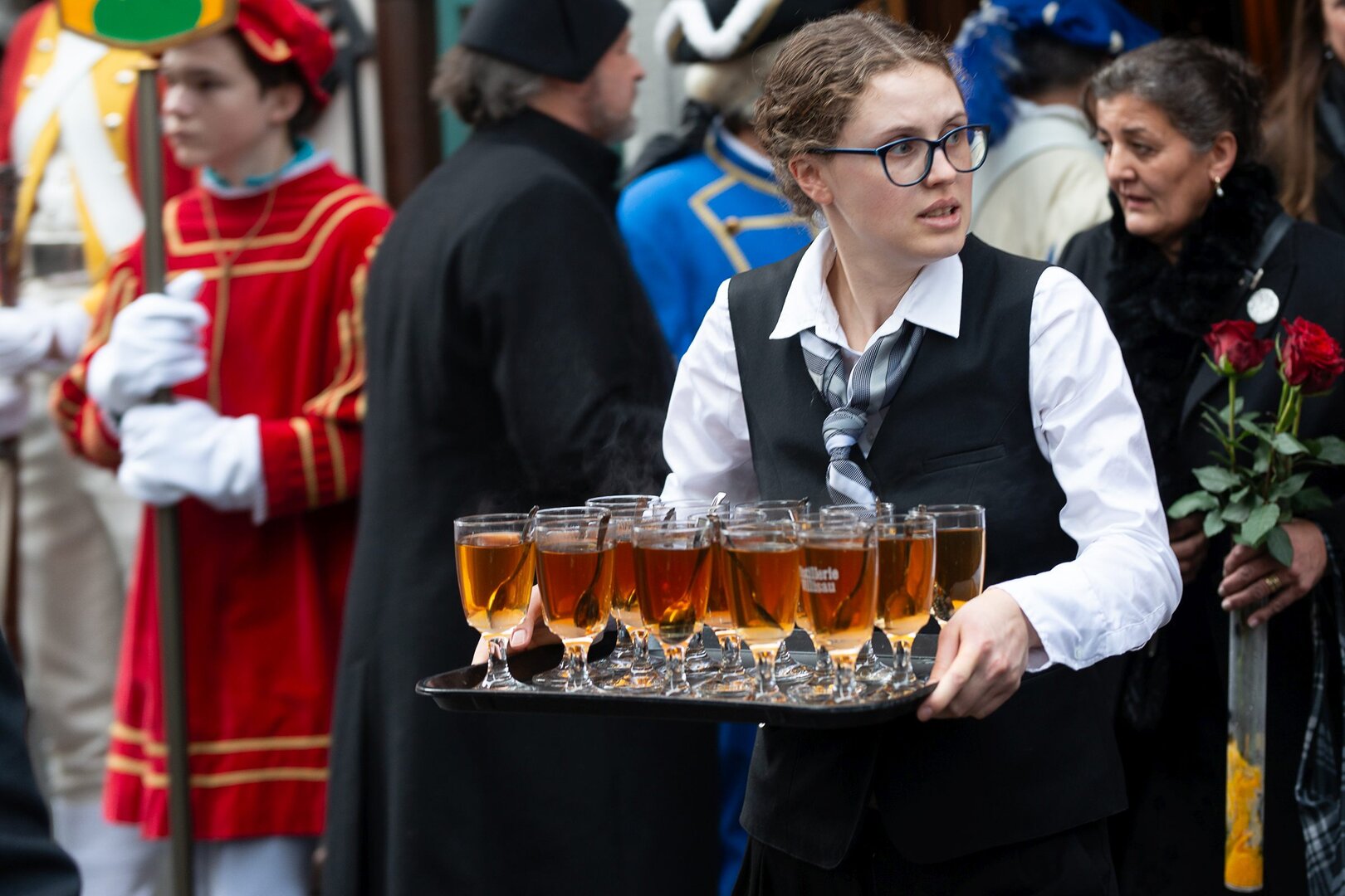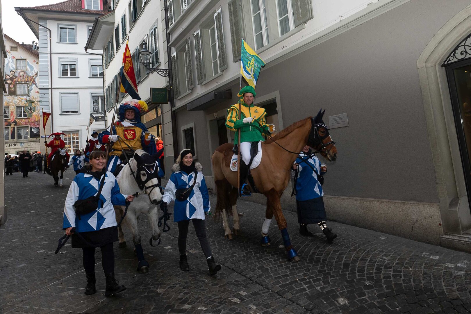 Auf dem Kapellplatz warteten bereits die Zunftgruppierungen: die strammen Grenadiere, das Umzugskomitee sowie die als Waldmanndli bekannte Historische Zunftgruppe. Die Feldmusik spielte auf, Hunderte von Freunden und Bekannten jubelten dem Fritschivater 2026 zu. Für zusätzlichen Schwung sorgte der Zunftnarr, der stilecht mit dem Lastenvelo auf den Kapellplatz rollte und das Publikum lautstark zum «Brüeleee» animierte. Nach einem ersten Umzug durch die Altstadt führte der Weg in den Wilden Mann. Dort fand mit der «Aufwartung» beim Zunftmeister der eigentliche Kern der Abholung statt. Rund zwei Dutzend Gruppen – vom Neuzünftler-Jahrgang über Vergnügungskomitees bis hin zu Delegationen aus Wirtschaft, Vereinigungen und weiteren Kreisen – überbrachten ihre Glückwünsche, meist mit viel Witz und Charme.