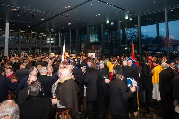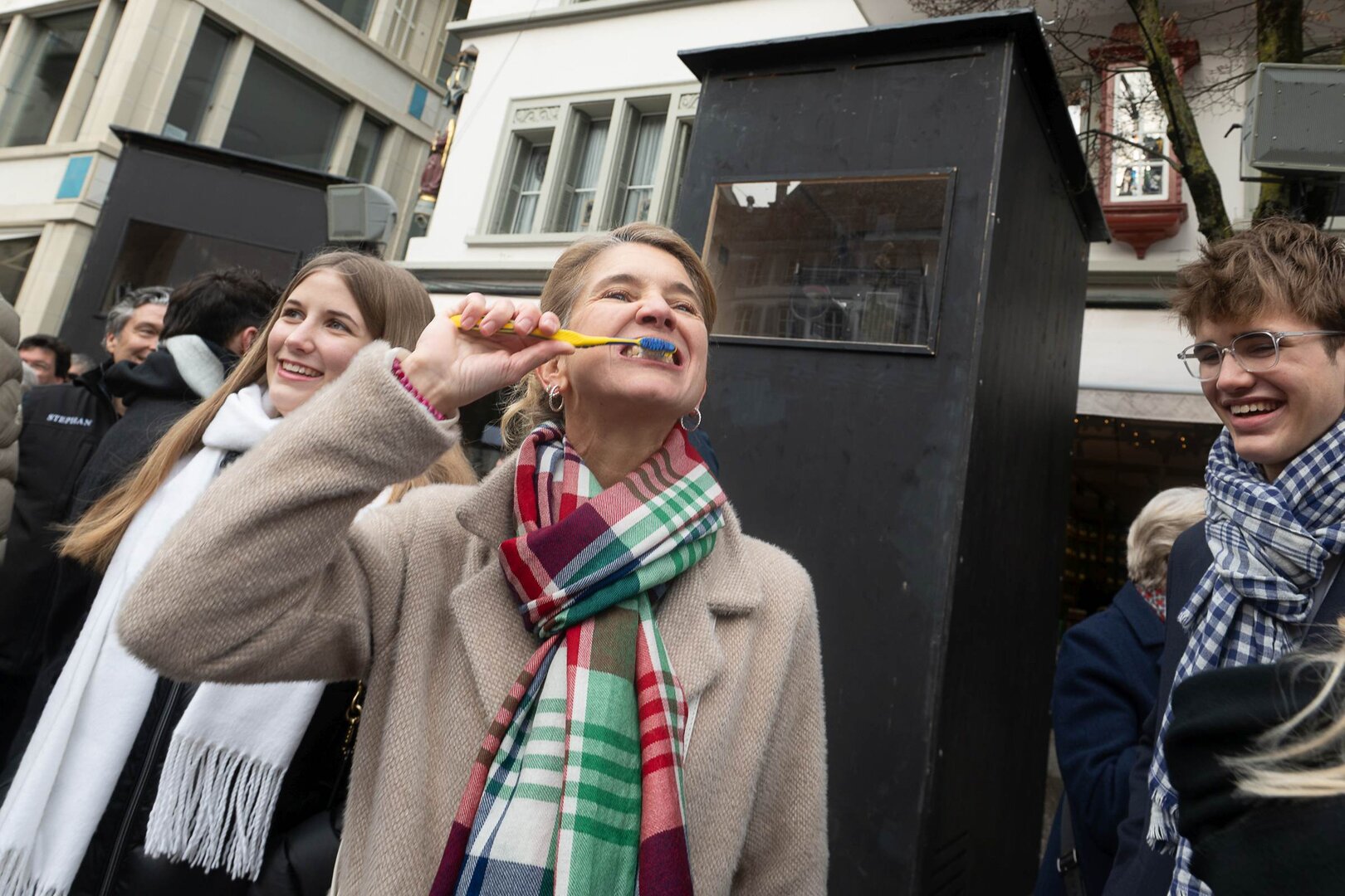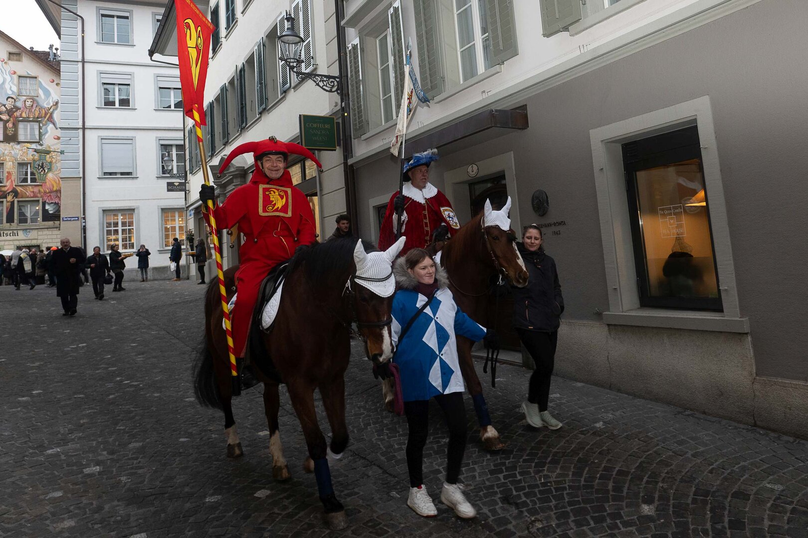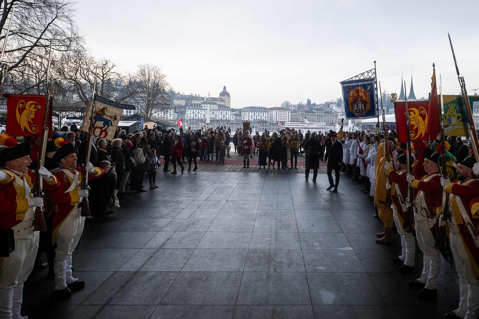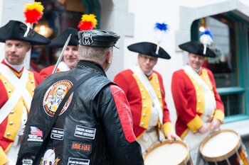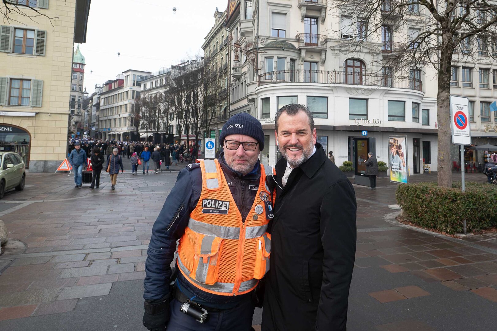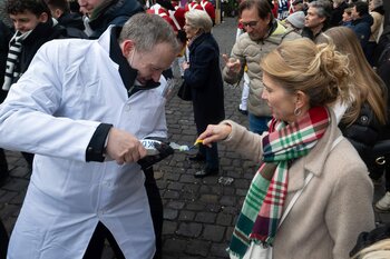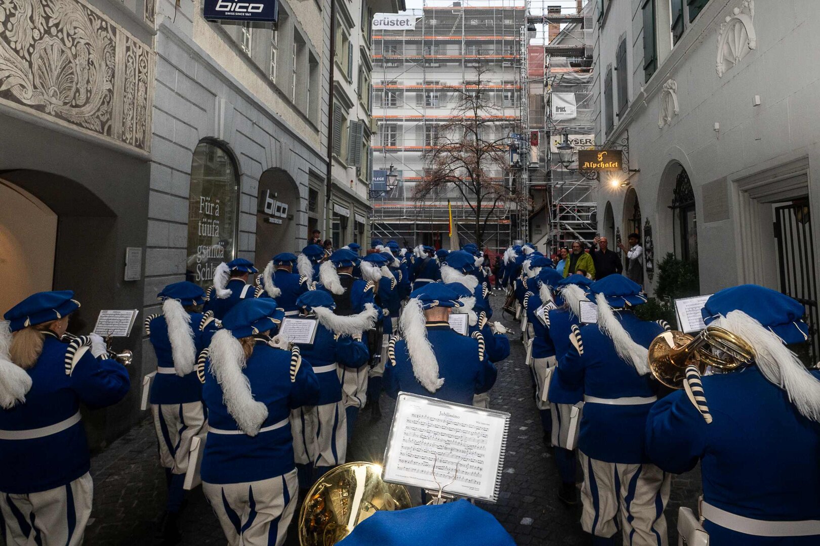 Auf dem Kapellplatz warteten bereits die Zunftgruppierungen: die strammen Grenadiere, das Umzugskomitee sowie die als Waldmanndli bekannte Historische Zunftgruppe. Die Feldmusik spielte auf, Hunderte von Freunden und Bekannten jubelten dem Fritschivater 2026 zu. Für zusätzlichen Schwung sorgte der Zunftnarr, der stilecht mit dem Lastenvelo auf den Kapellplatz rollte und das Publikum lautstark zum «Brüeleee» animierte. Nach einem ersten Umzug durch die Altstadt führte der Weg in den Wilden Mann. Dort fand mit der «Aufwartung» beim Zunftmeister der eigentliche Kern der Abholung statt. Rund zwei Dutzend Gruppen – vom Neuzünftler-Jahrgang über Vergnügungskomitees bis hin zu Delegationen aus Wirtschaft, Vereinigungen und weiteren Kreisen – überbrachten ihre Glückwünsche, meist mit viel Witz und Charme.