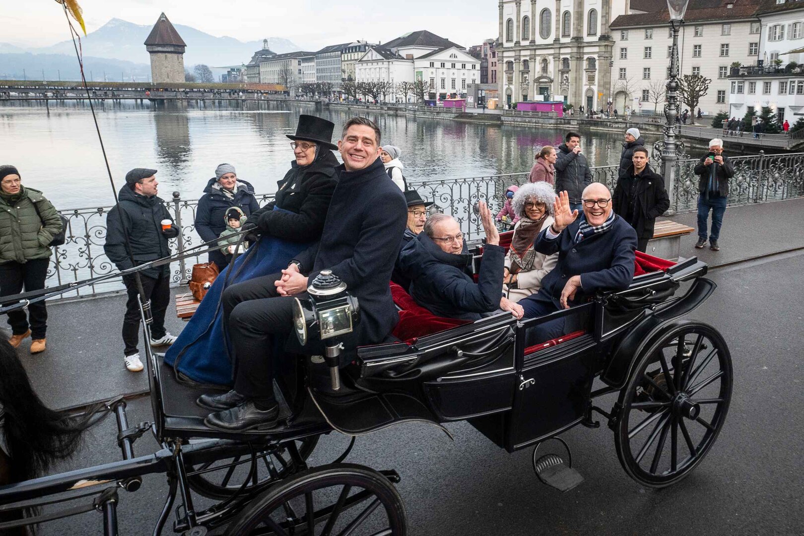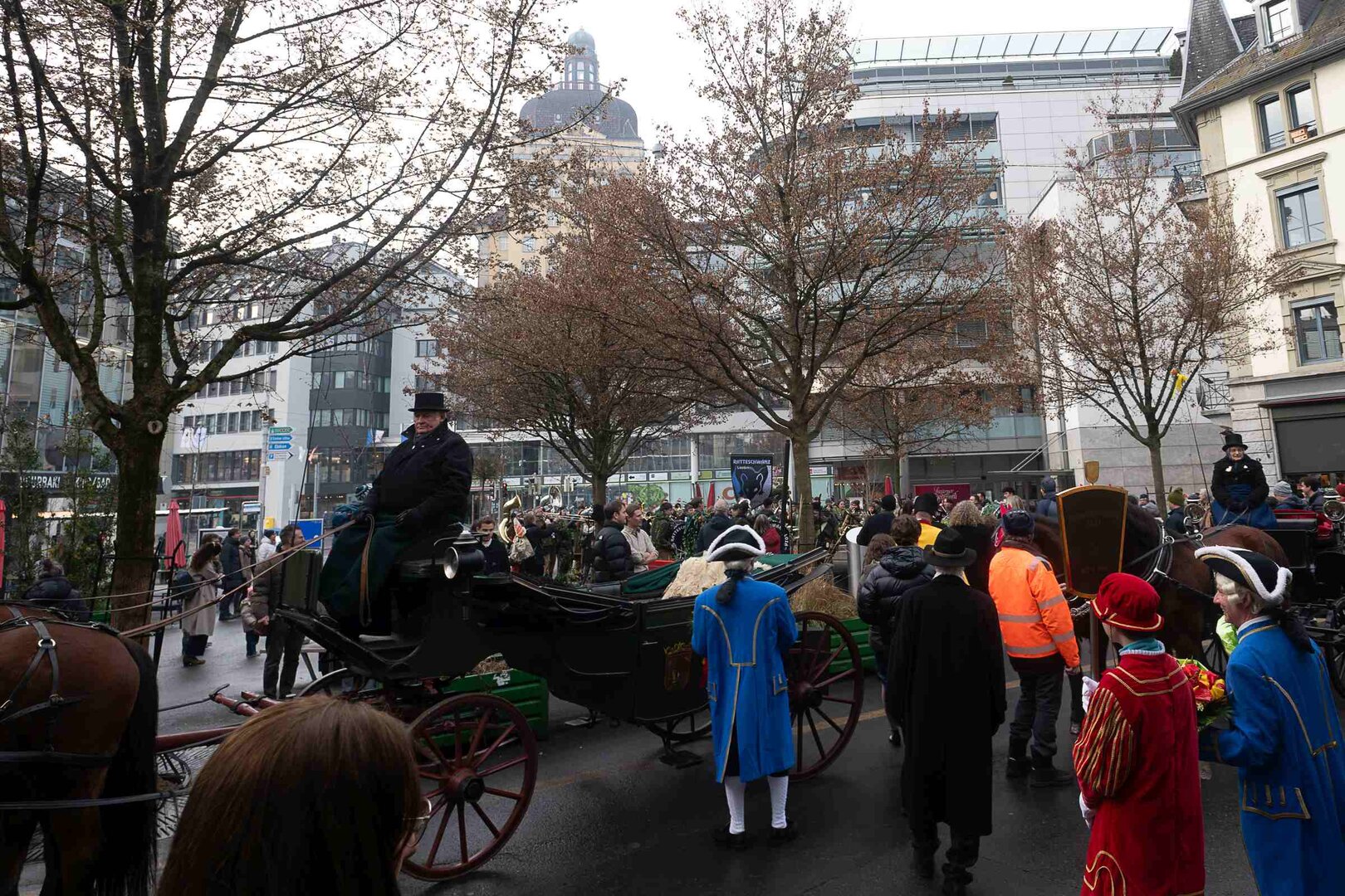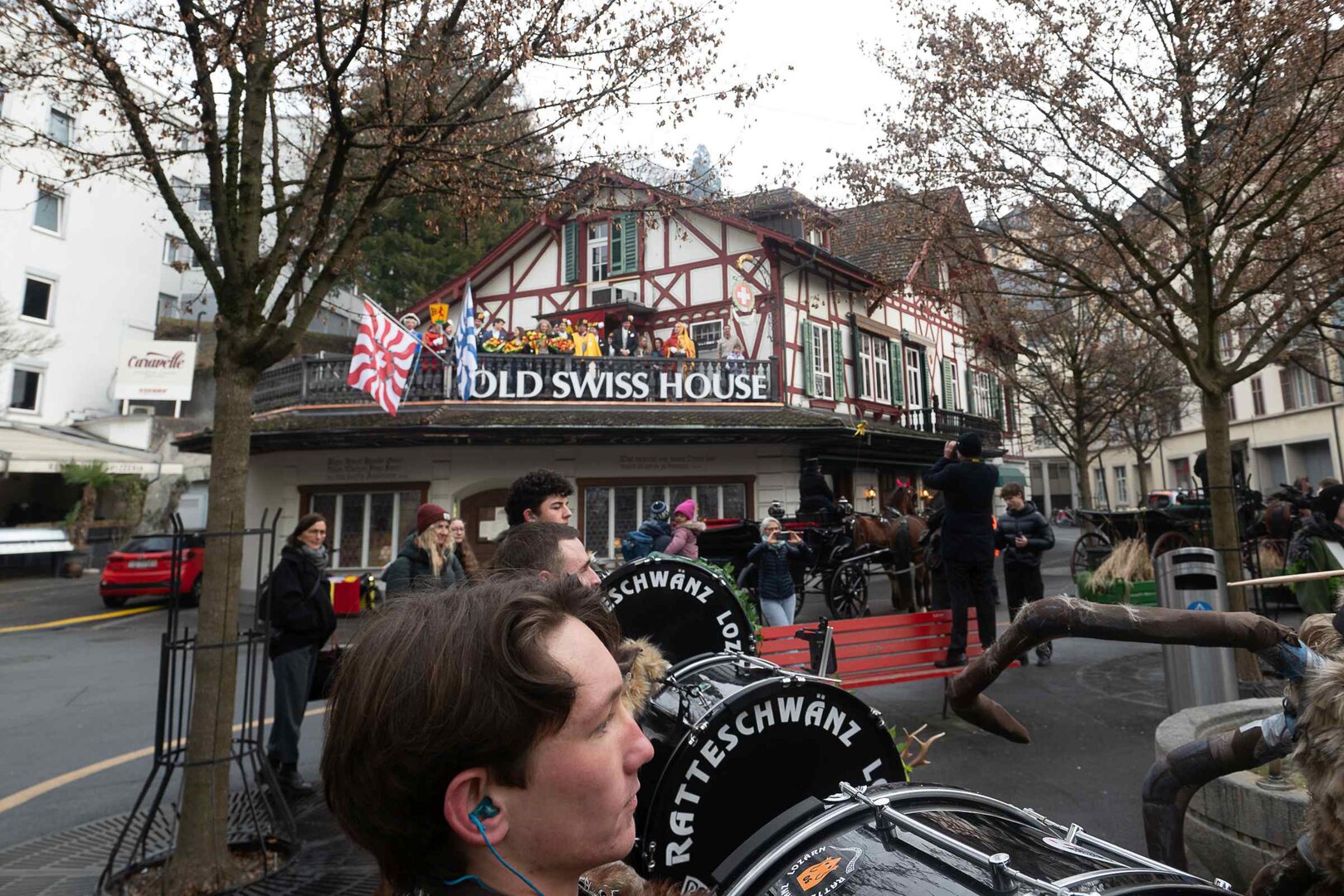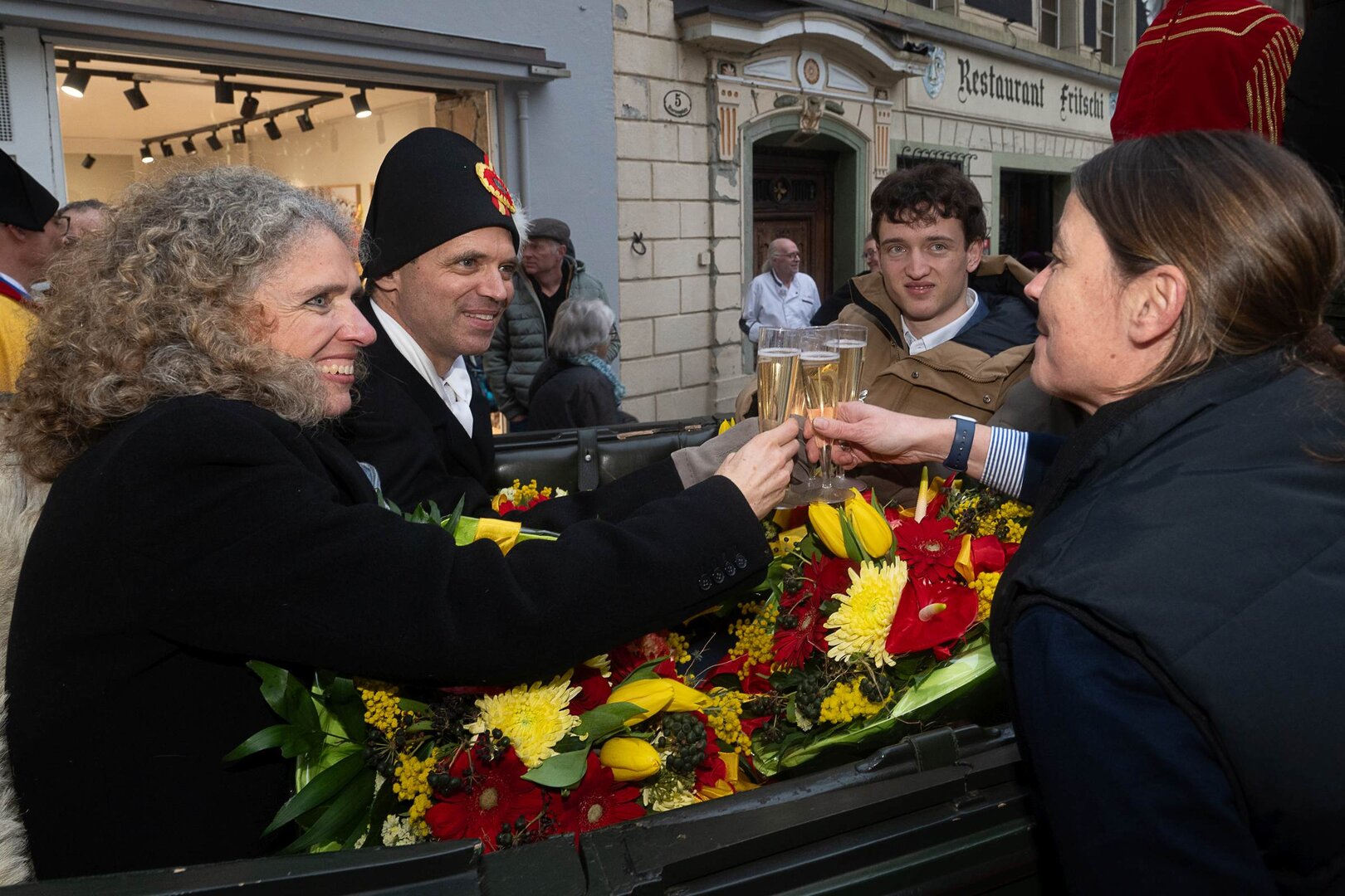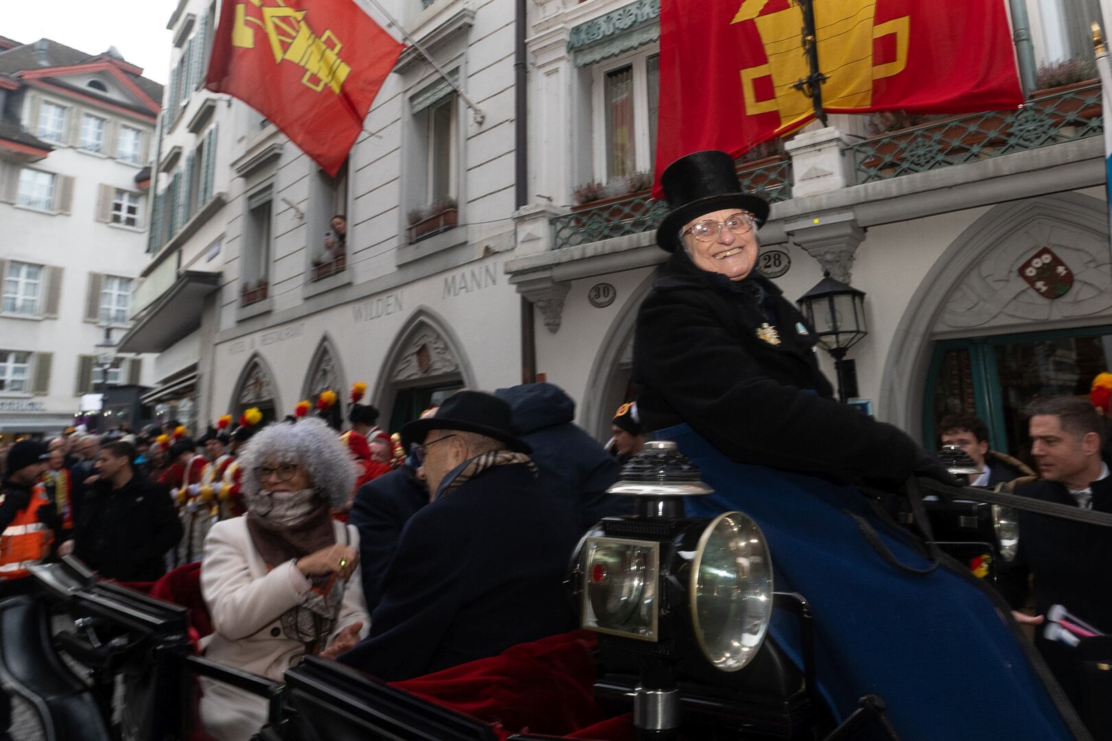 ph. Frühmorgens beginnt für den Fritschivater die Vorbereitung für das Bärteliessen. Zusammen mit seiner Familie und dem Zunftrat traf sich Stefan Hug um 9 Uhr im Old Swiss House zum traditionellen Tafelspitz – die ideale Grundlage für einen langen Tag. Um halb elf ging es dann standesgemäss mit der Kutsche in Richtung Altstadt.