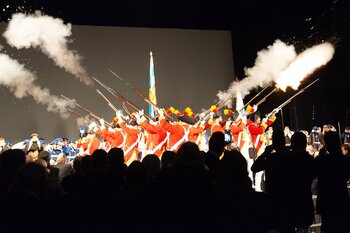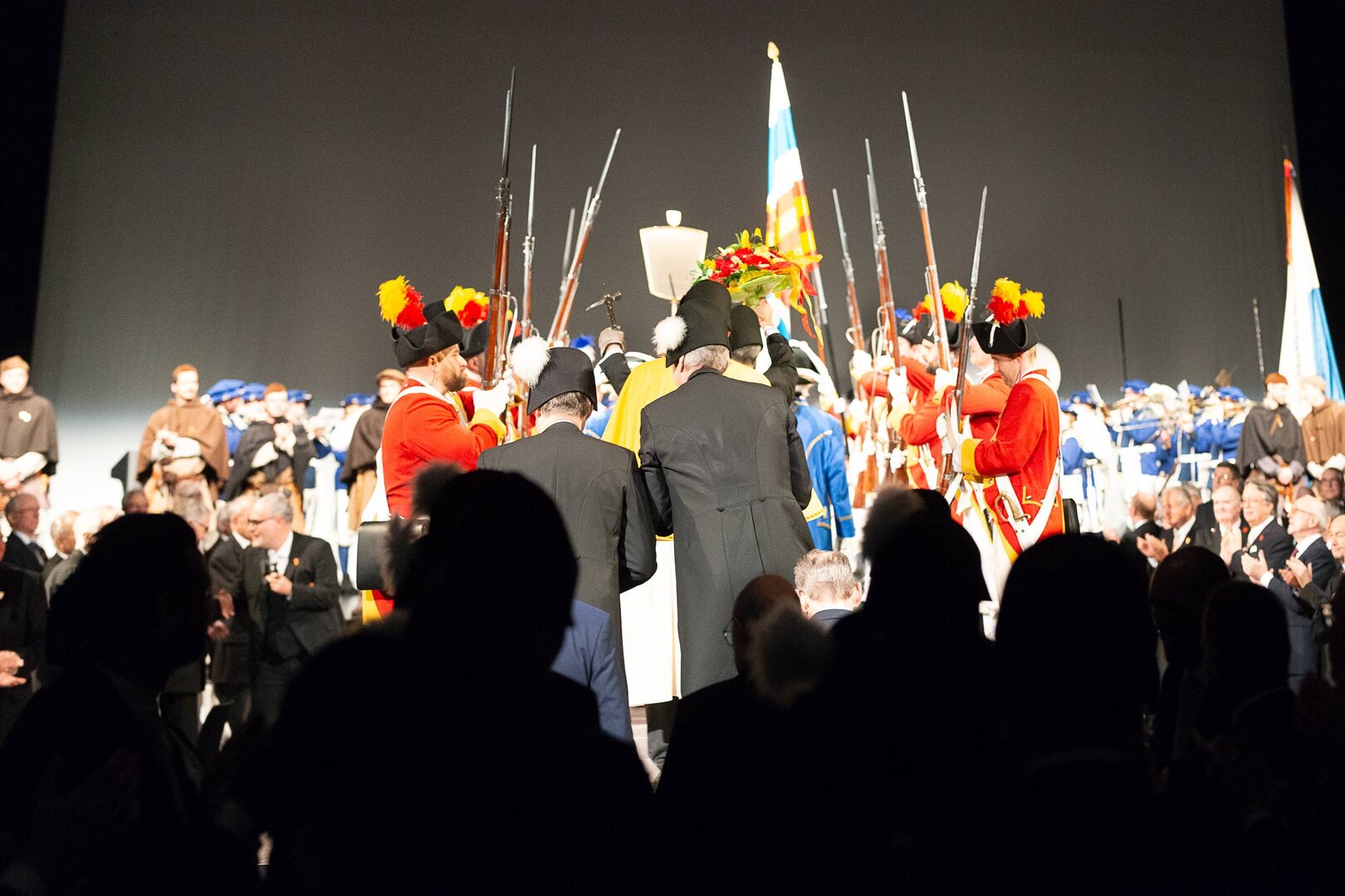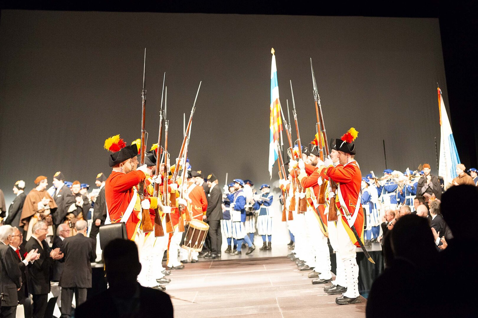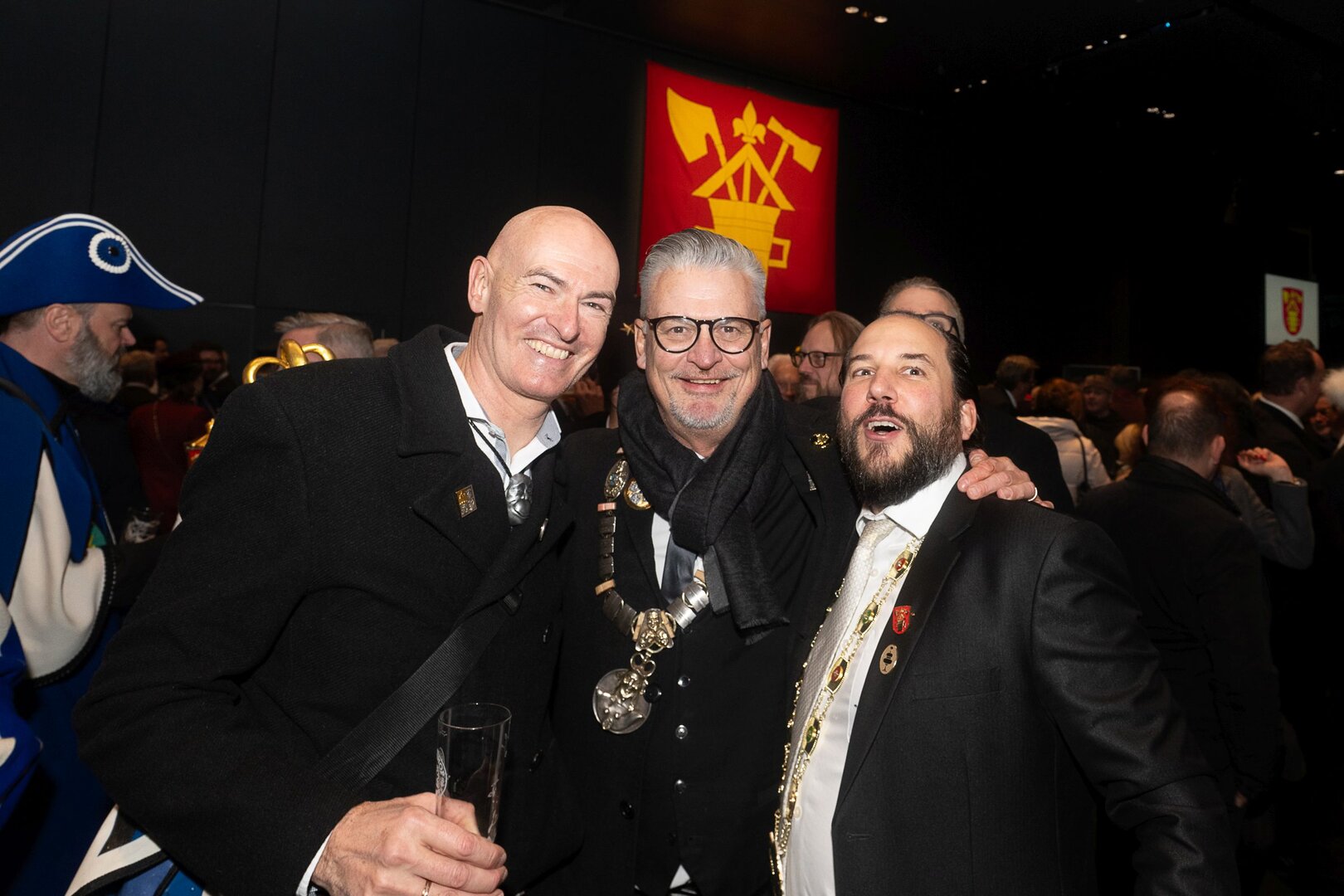Beim anschliessenden Umzug durch die Altstadt stach vor allem die grosse, farbenprächtige Delegation der LFK-Huereaffe gemeinsam mit zahlreichen Alt-Herren ins Auge. Begleitet von der Lozärner Original Guggenmusig und der Chatzemusig Lozärn zog der Tross weiter zum fast schon überlebenswichtigen Halt im Stadtkeller – Gehopftes und Gekelltertes inklusive. Grossartig, liebe Stadtkeller-Crew! Beim KKL wurde der Fritschivater schliesslich von den Zünftlern der Zunft zu Safran empfangen, allen voran vom stets sorgenfreien VKP Tobias Moser. Die traditionelle Fritschipastete, gehaltvolle Ansprachen des Zunftmeisters sowie seiner Ehrengäste – Bundesrat Martin Pfister, Coop-CEO Philipp Wyss und der Zunftmeister zu Hottigen, Anders Mathis – und diverse Ehrungen verliehen dem Anlass seinen würdevollen Rahmen. Ein weiteres Highlight bildete das rund einstündige Theater des VK26.