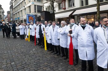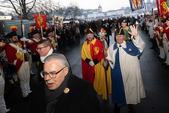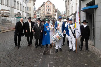 die fritschivater-abholung beim bärteliessen: feierliche aufwartung des LFK beim Zunftmeister zu Safran 2026 - Stefan Hug