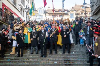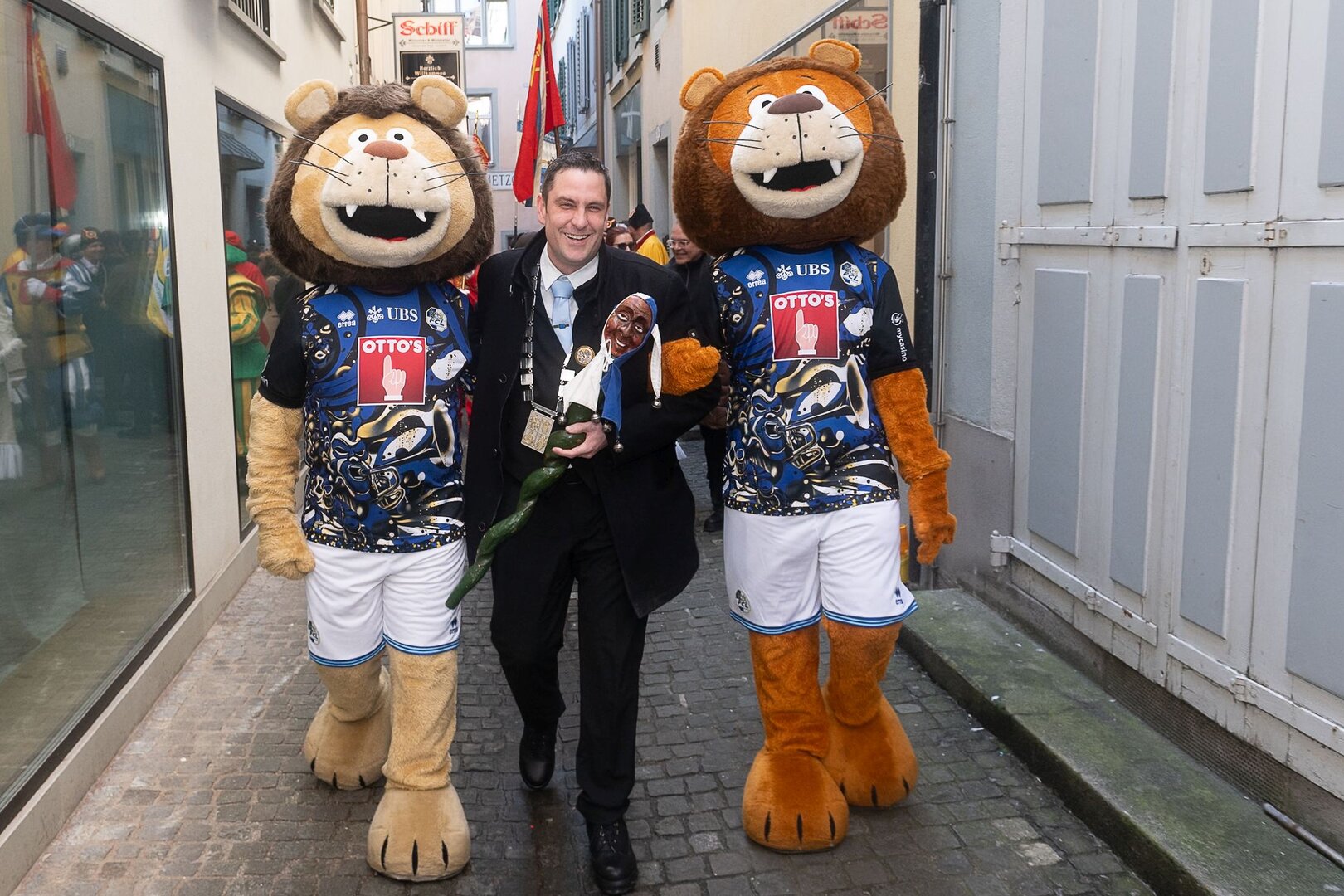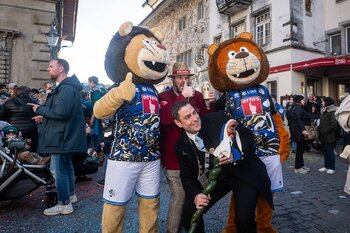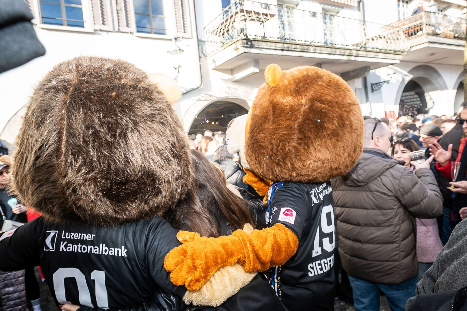 Für eine besondere Überraschung sorgte der gemeinsame Auftritt der FCL-Maskottchen Siegfried & Leu, die mitten im Fasnachtstreiben auftauchten und sofort für grosse Begeisterung sorgten. Mit Charme, Humor und viel Publikumsnähe schlugen sie eine Brücke zwischen Sport und Fasnacht. Was war wohl der Grund warum die beiden in der Menschenmenge auftauchten?