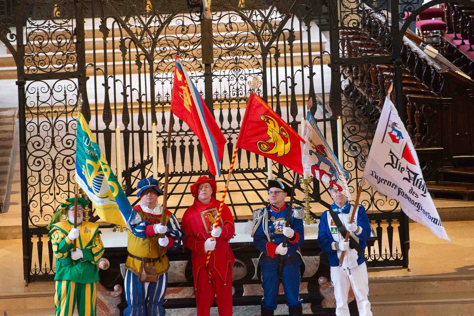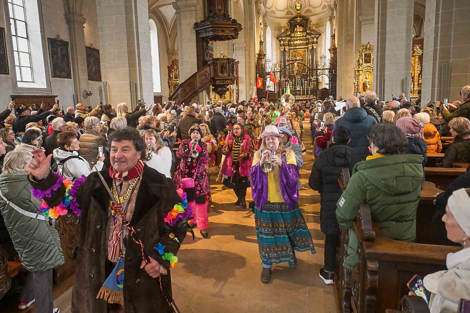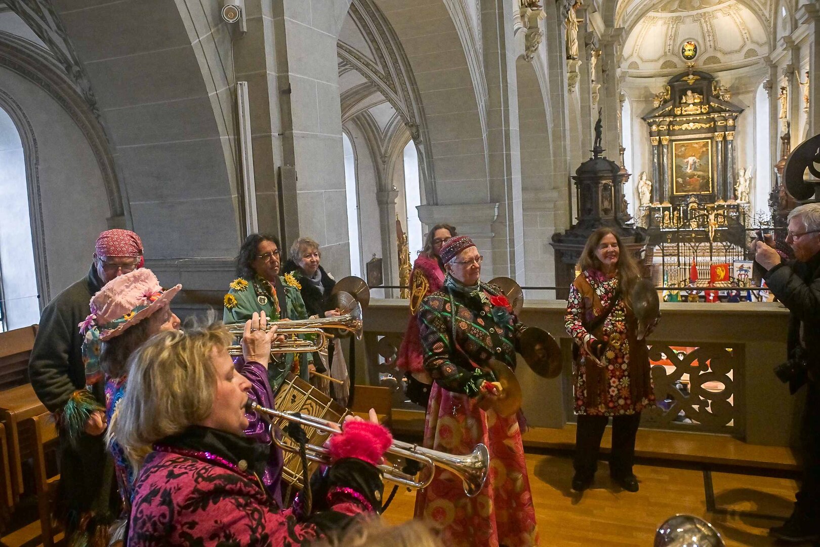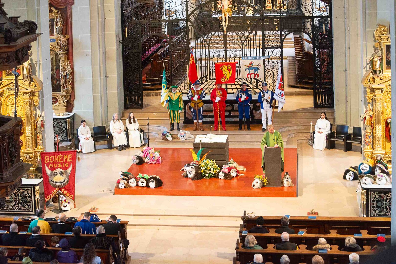 ph. Was für Klänge sind da in der Hofkirche zu hören? Wenn die Orgel auf die sanften Guuggerklänge der Guggenmusig treffen ertönt es in der Hofkirche wunderbar. Begleitet von Bohème Musig Lozärn marschierten die Meister und Präsidenten des LFK's in die Hofkirche ein. Auch wenn womöglich da und dort noch etwas müde Augen zu sehen waren, waren die ränge in der Hofkirche gut gefüllt. Am Sonntag die ideale Bedingungen etwas besinnliche Kraft zu tanken, bevor es dann am Güdismontag und Zischtig nochmals auf die Gassen geht.