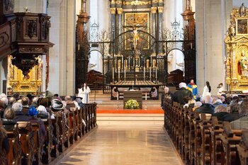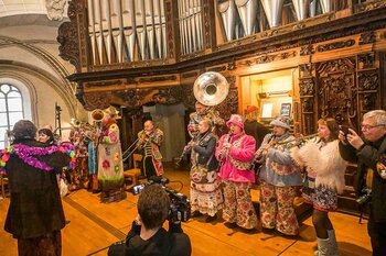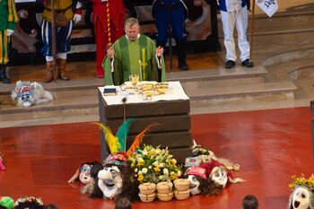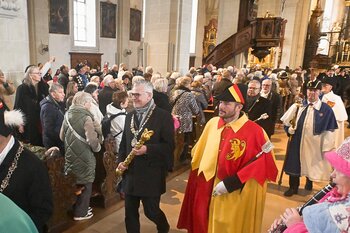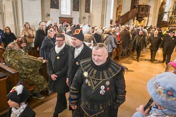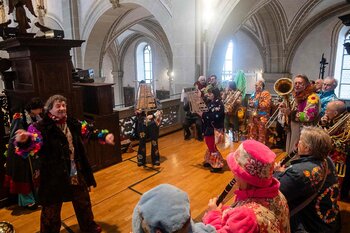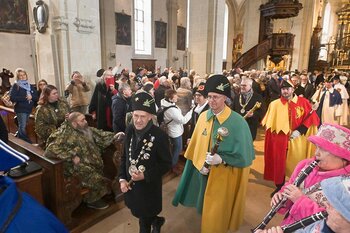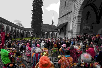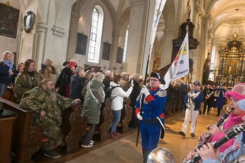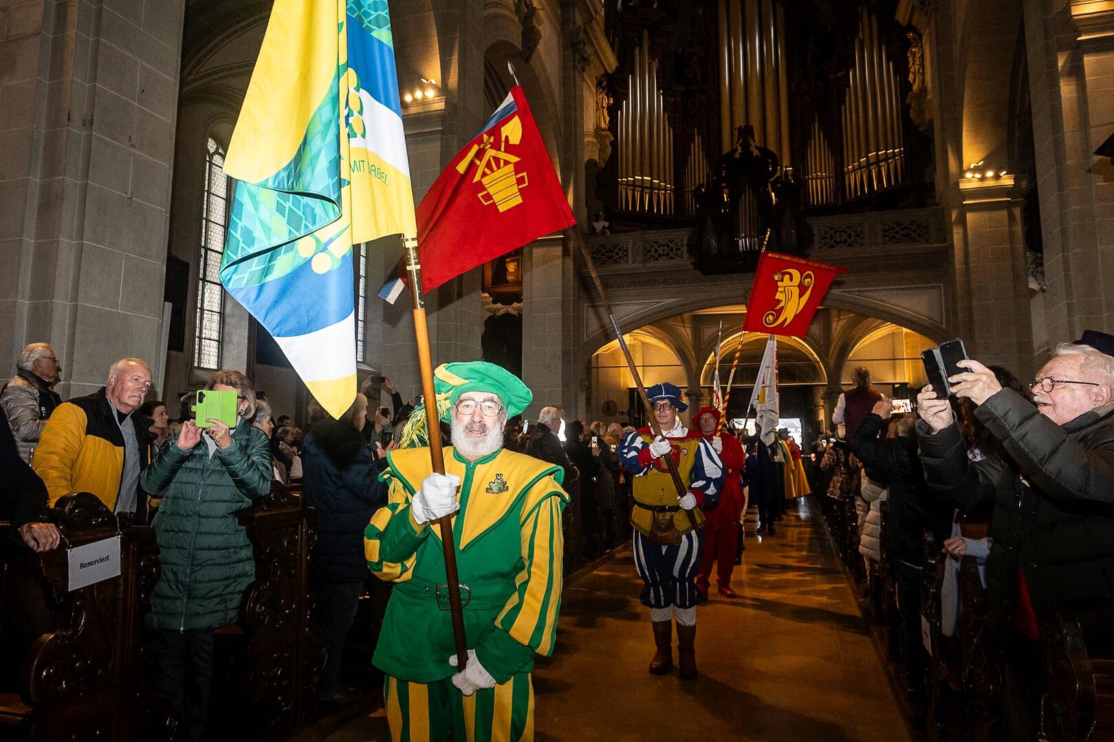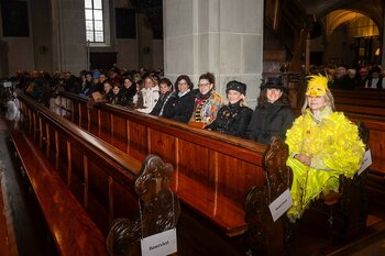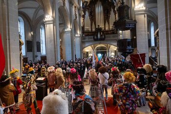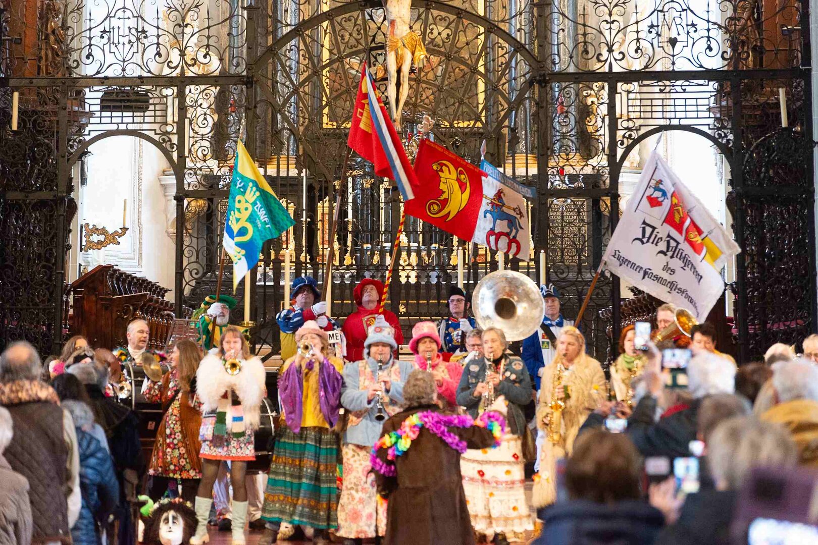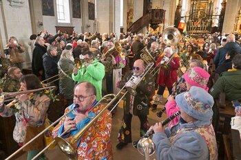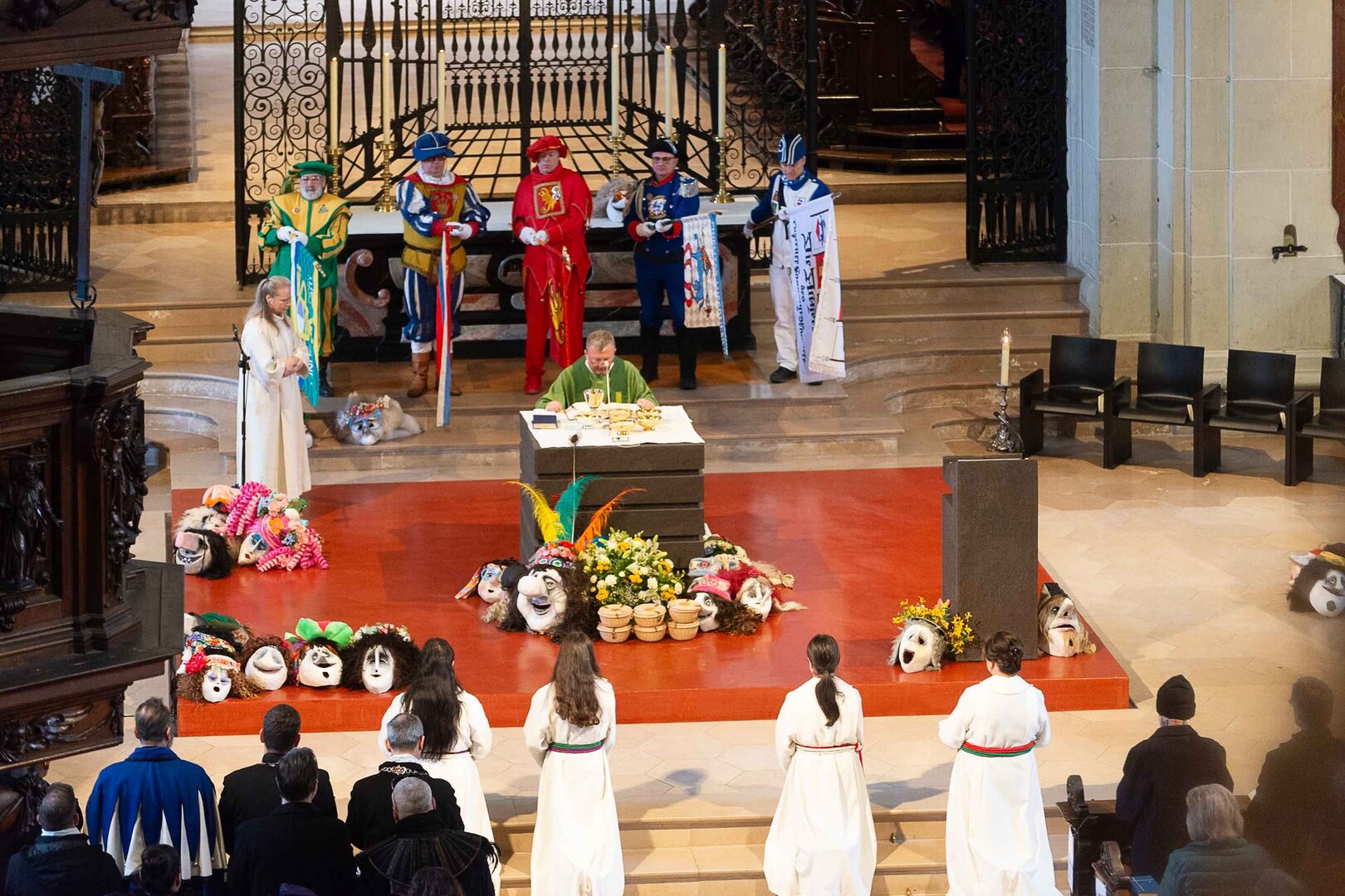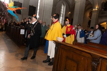 ph. Was für Klänge sind da in der Hofkirche zu hören? Wenn die Orgel auf die sanften Guuggerklänge der Guggenmusig treffen ertönt es in der Hofkirche wunderbar. Begleitet von Bohème Musig Lozärn marschierten die Meister und Präsidenten des LFK's in die Hofkirche ein. Auch wenn womöglich da und dort noch etwas müde Augen zu sehen waren, waren die ränge in der Hofkirche gut gefüllt. Am Sonntag die ideale Bedingungen etwas besinnliche Kraft zu tanken, bevor es dann am Güdismontag und Zischtig nochmals auf die Gassen geht.