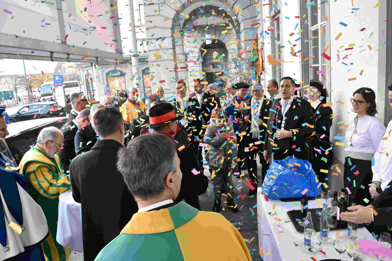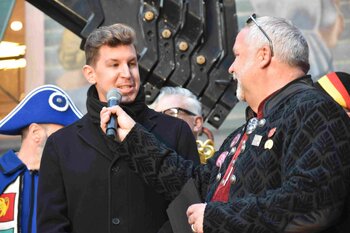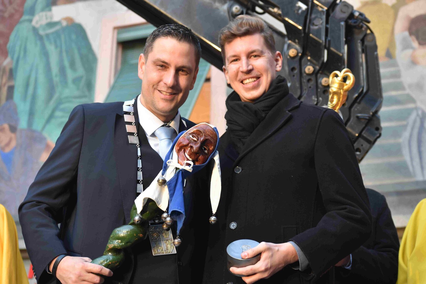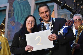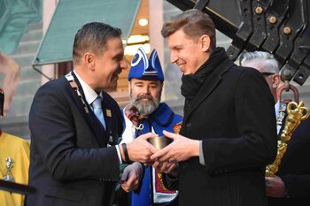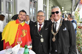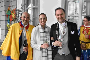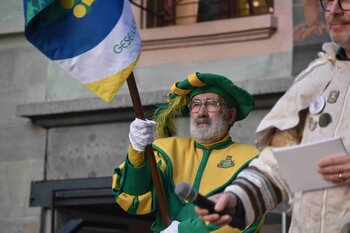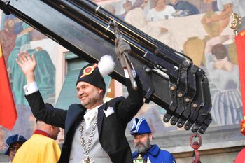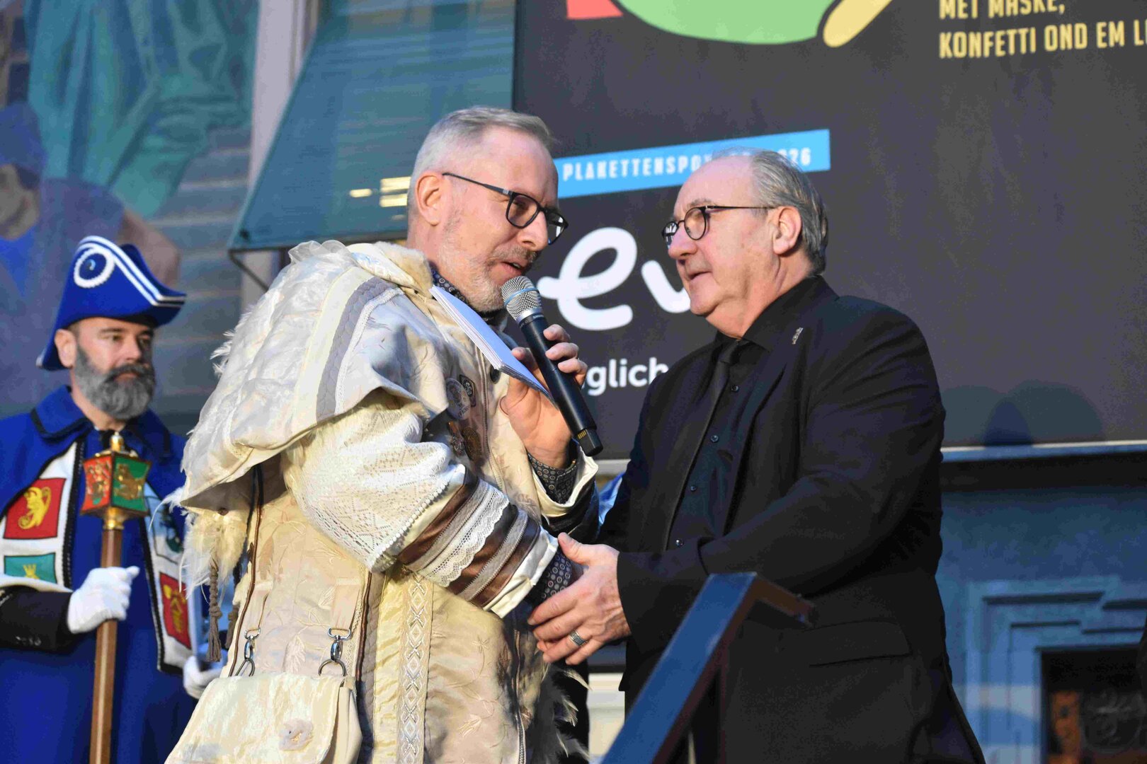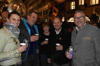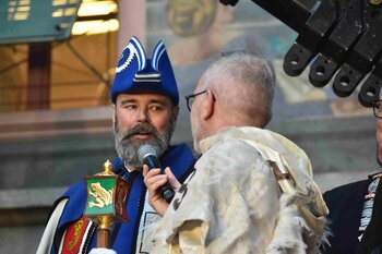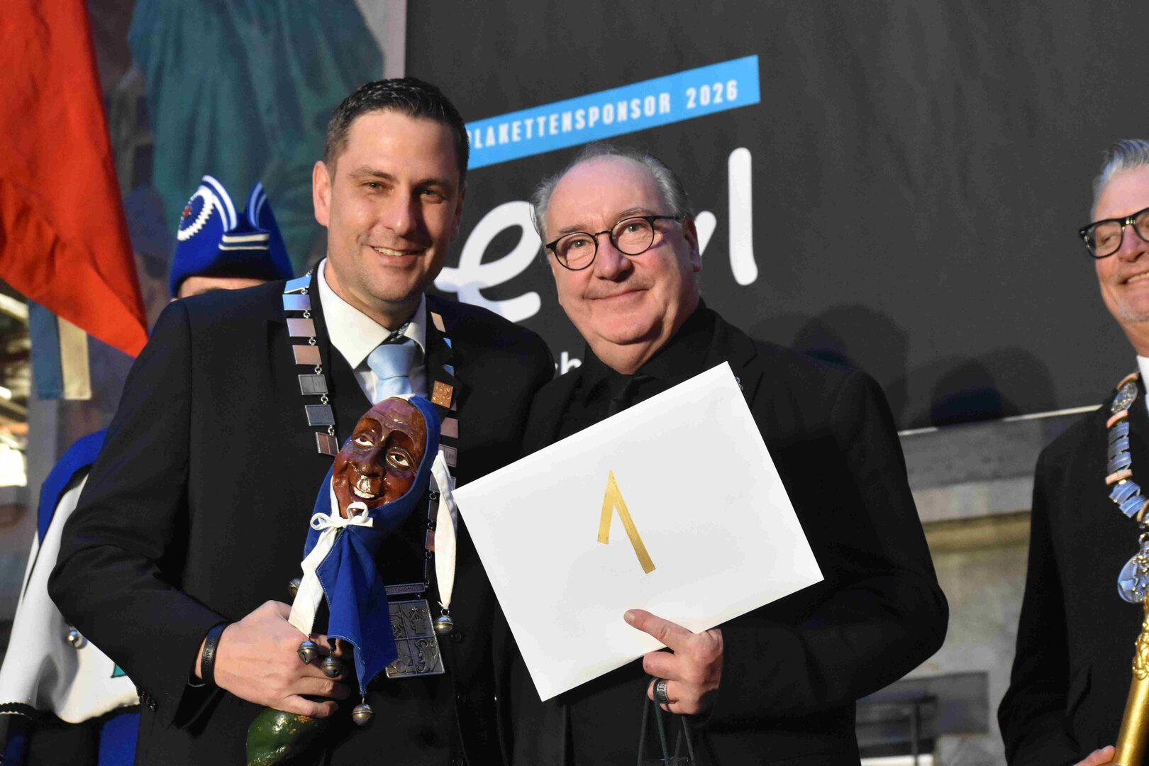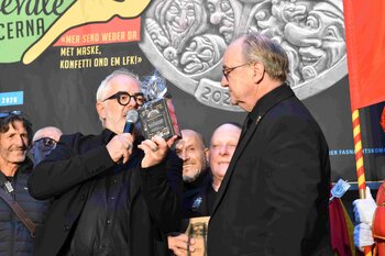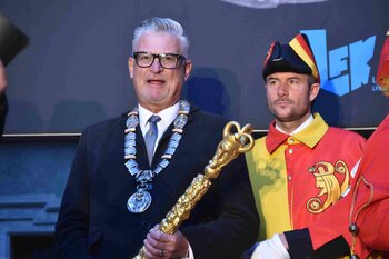 Zunächst wurde der Prägewerksponsor – die energie wasser luzern (EWL) geehrt. Anschliessend folgte die Würdigung der Zweit- und Drittplatzierten des Plakettenwettbewerbs. Und dann war der grosse Moment gekommen: Nach Trommelwirbel und einem improvisierten Fötzaliregen wurde sie enthüllt – die Fasnachtsplakette 2026, gestaltet vom renommierten Luzerner Künstler Basil Koch.