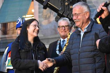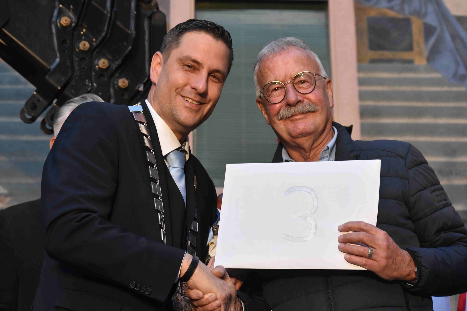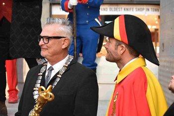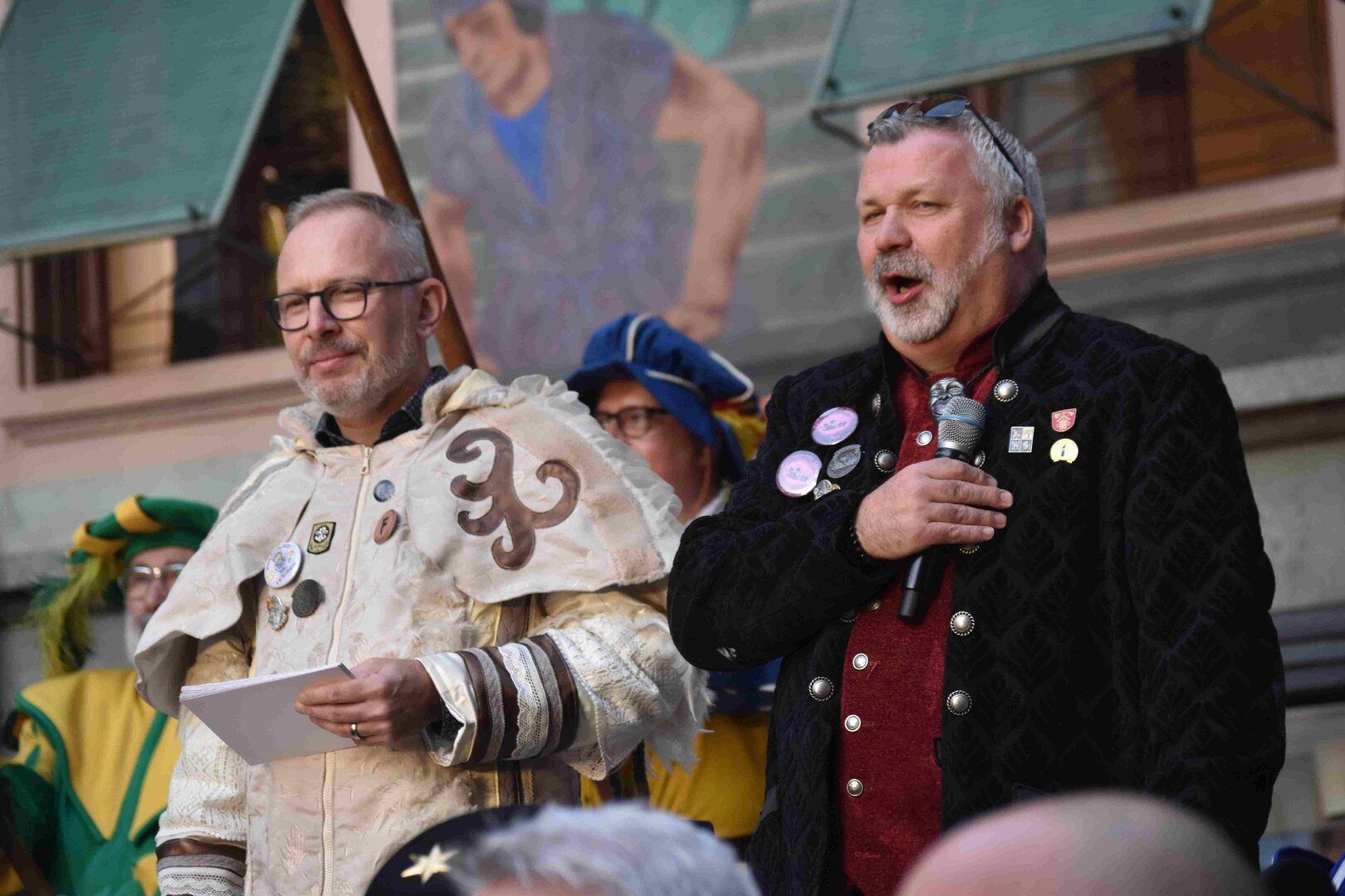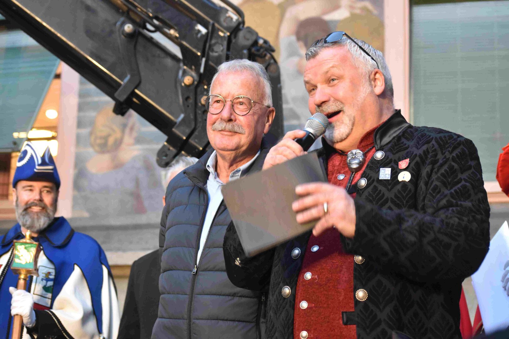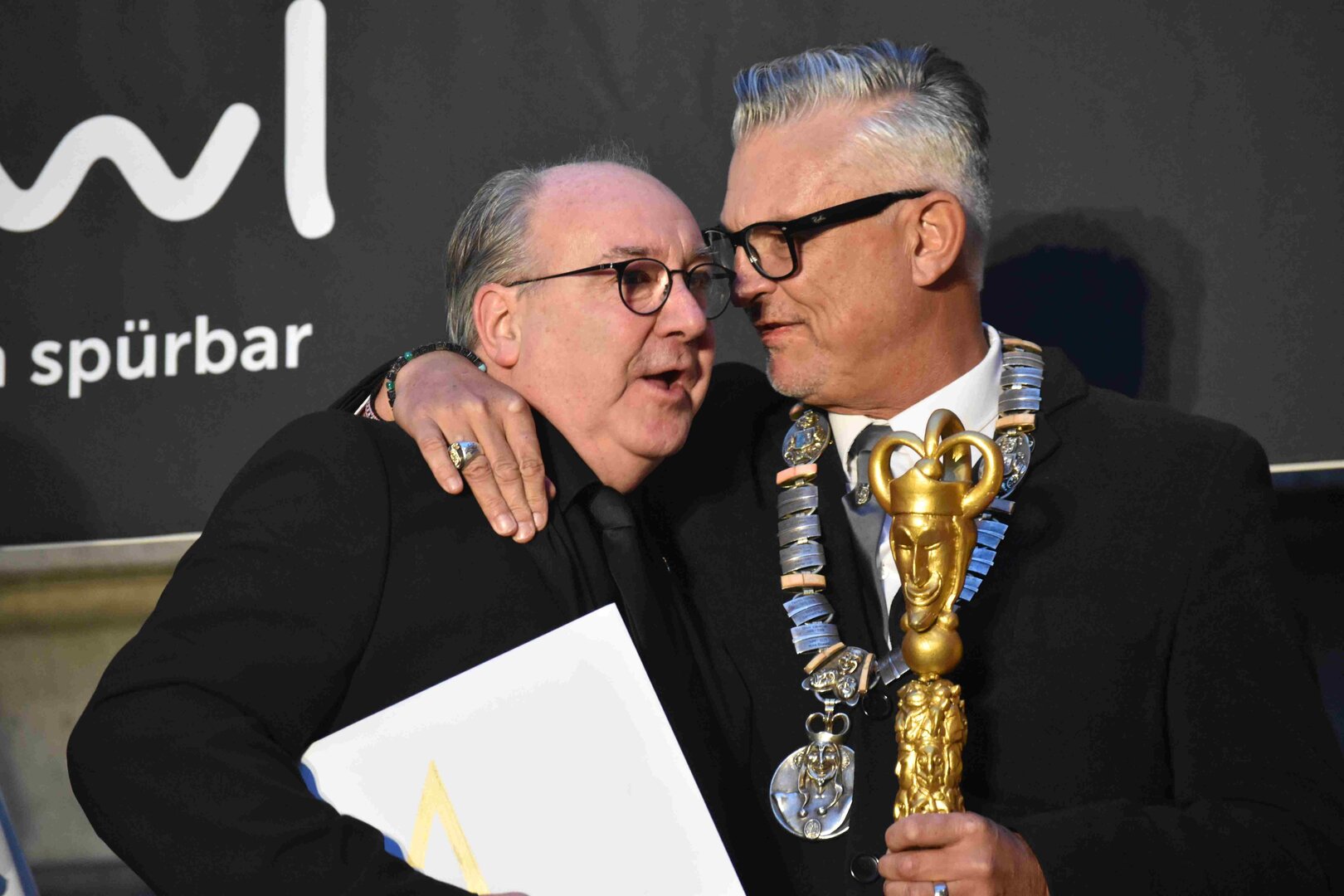 Zunächst wurde der Prägewerksponsor – die energie wasser luzern (EWL) geehrt. Anschliessend folgte die Würdigung der Zweit- und Drittplatzierten des Plakettenwettbewerbs. Und dann war der grosse Moment gekommen: Nach Trommelwirbel und einem improvisierten Fötzaliregen wurde sie enthüllt – die Fasnachtsplakette 2026, gestaltet vom renommierten Luzerner Künstler Basil Koch.