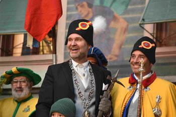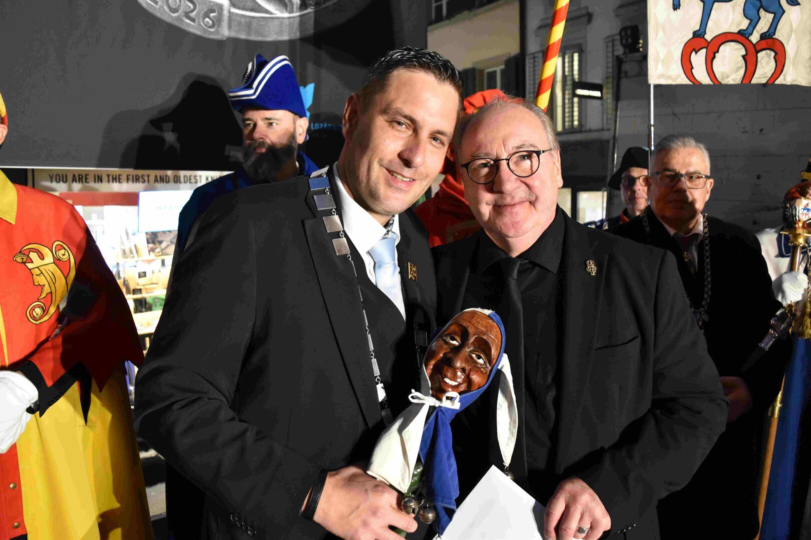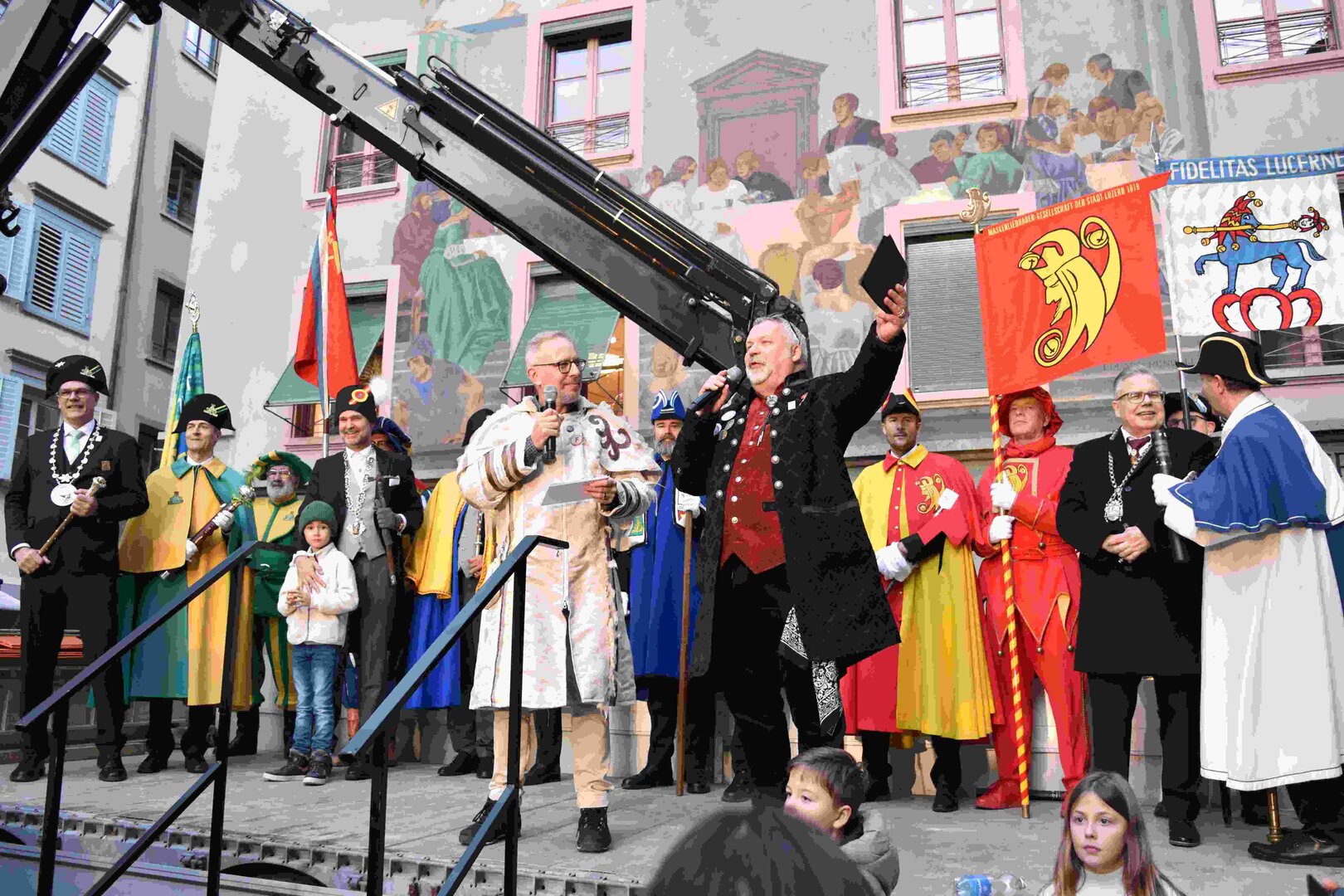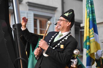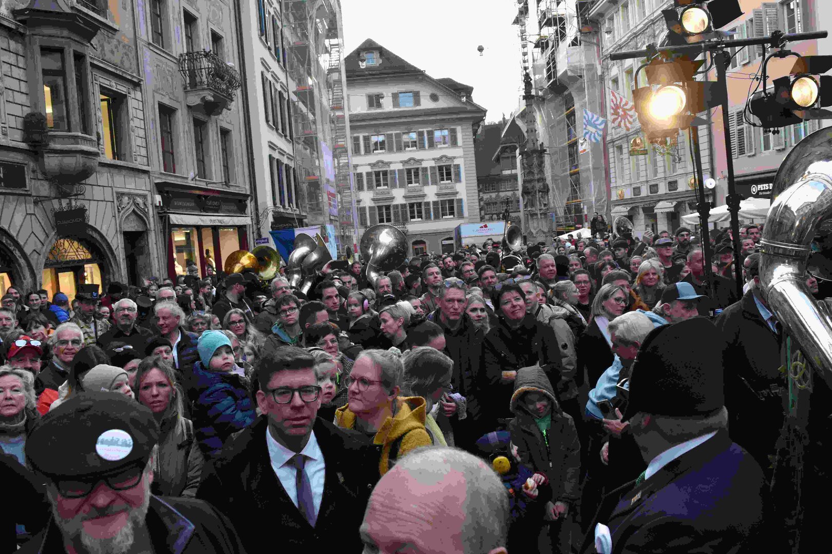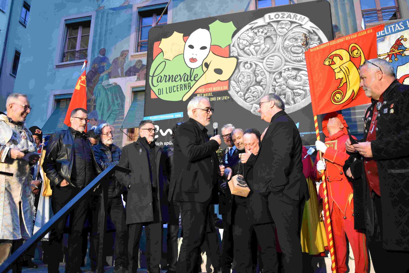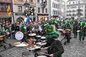 Begleitet von den Näbelhüüler Äbike und den Musegg-Geischter Lozärn zogen die Fasnachtsgewaltigen durch die Altstadt. Strahlender Sonnenschein und knackige Kälte sorgten für perfektes Wetter und einen würdigen Rahmen. Durch die Präsentation führte Thomas Zesiger und Vize-LFKP Peti Federer.