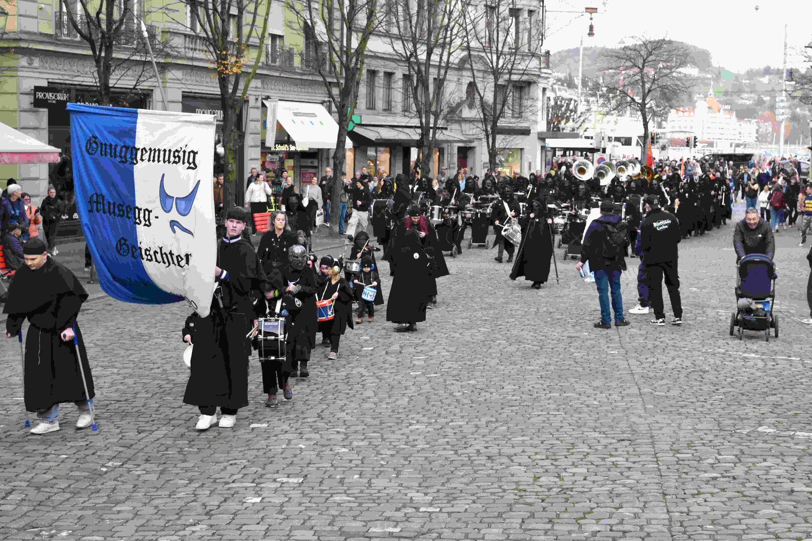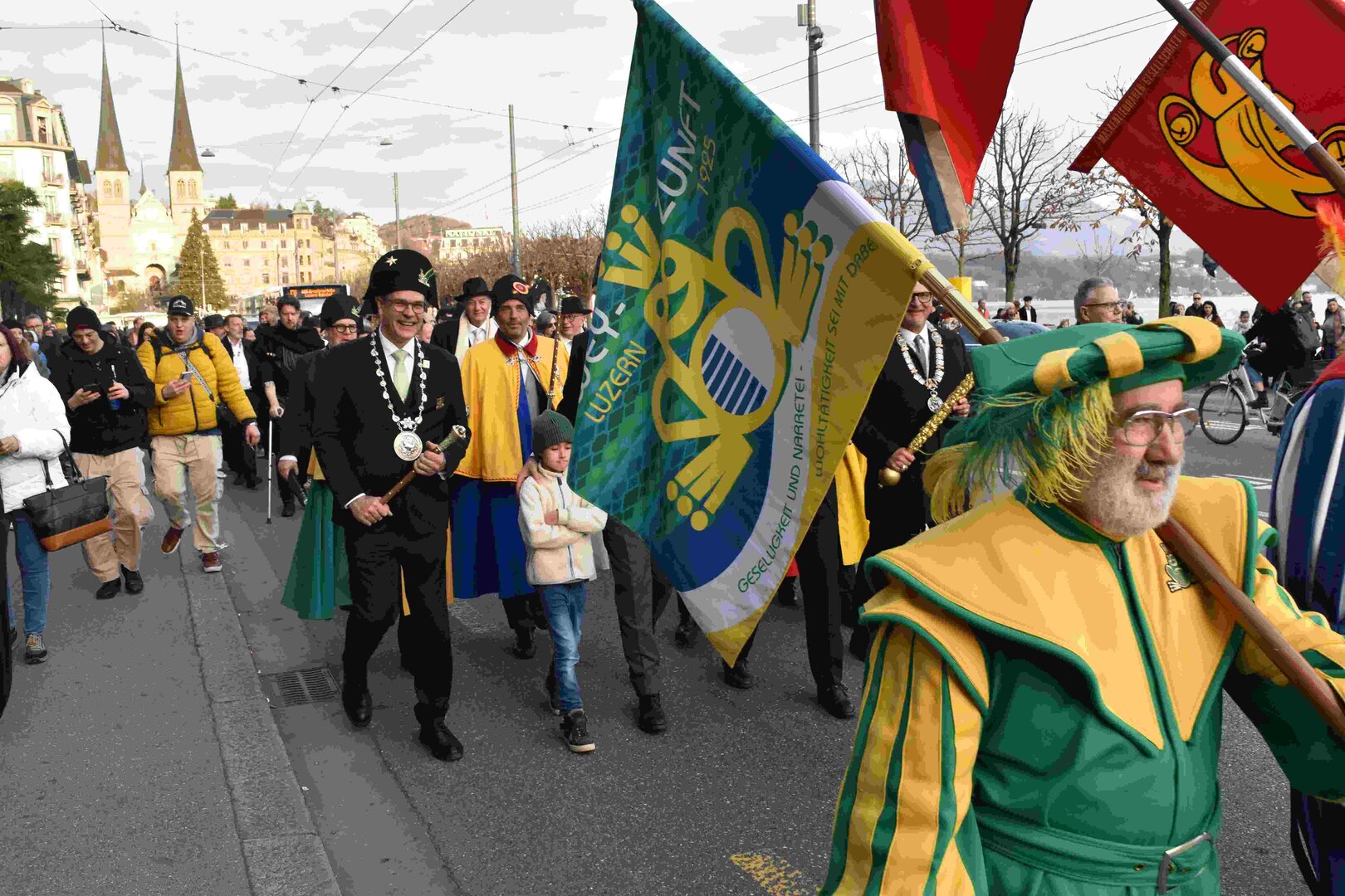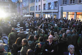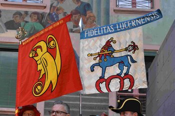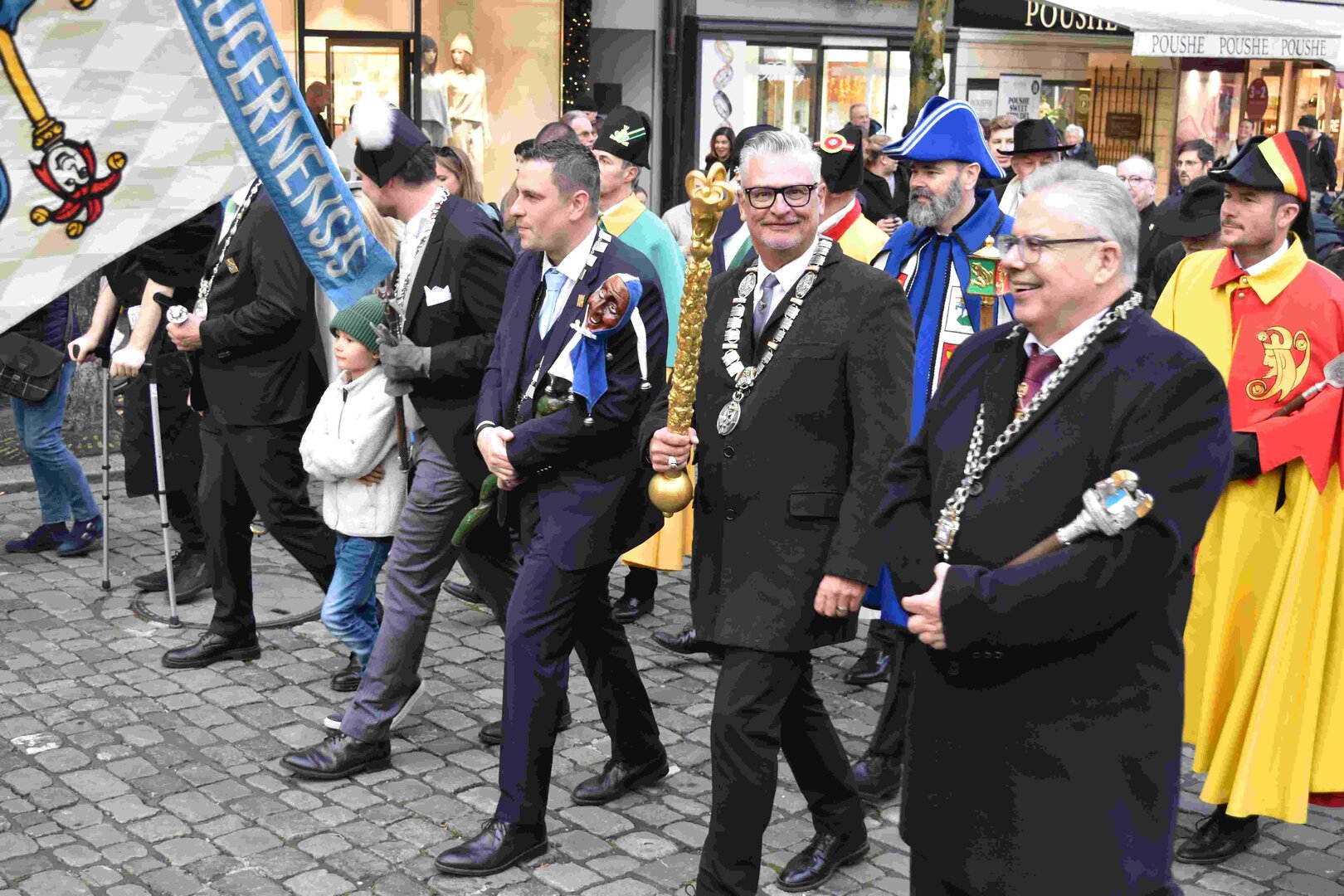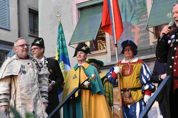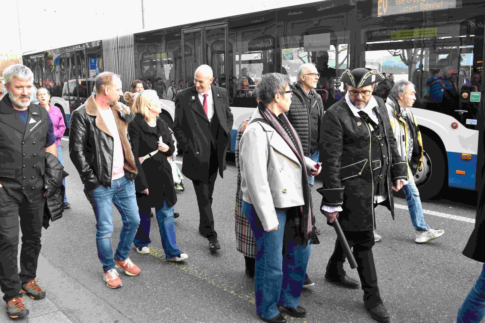 Begleitet von den Näbelhüüler Äbike und den Musegg-Geischter Lozärn zogen die Fasnachtsgewaltigen durch die Altstadt. Strahlender Sonnenschein und knackige Kälte sorgten für perfektes Wetter und einen würdigen Rahmen. Durch die Präsentation führte Thomas Zesiger und Vize-LFKP Peti Federer.