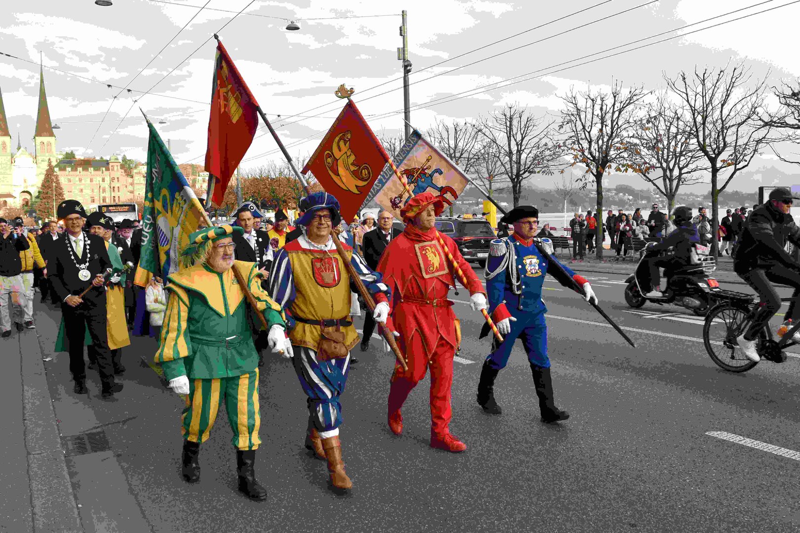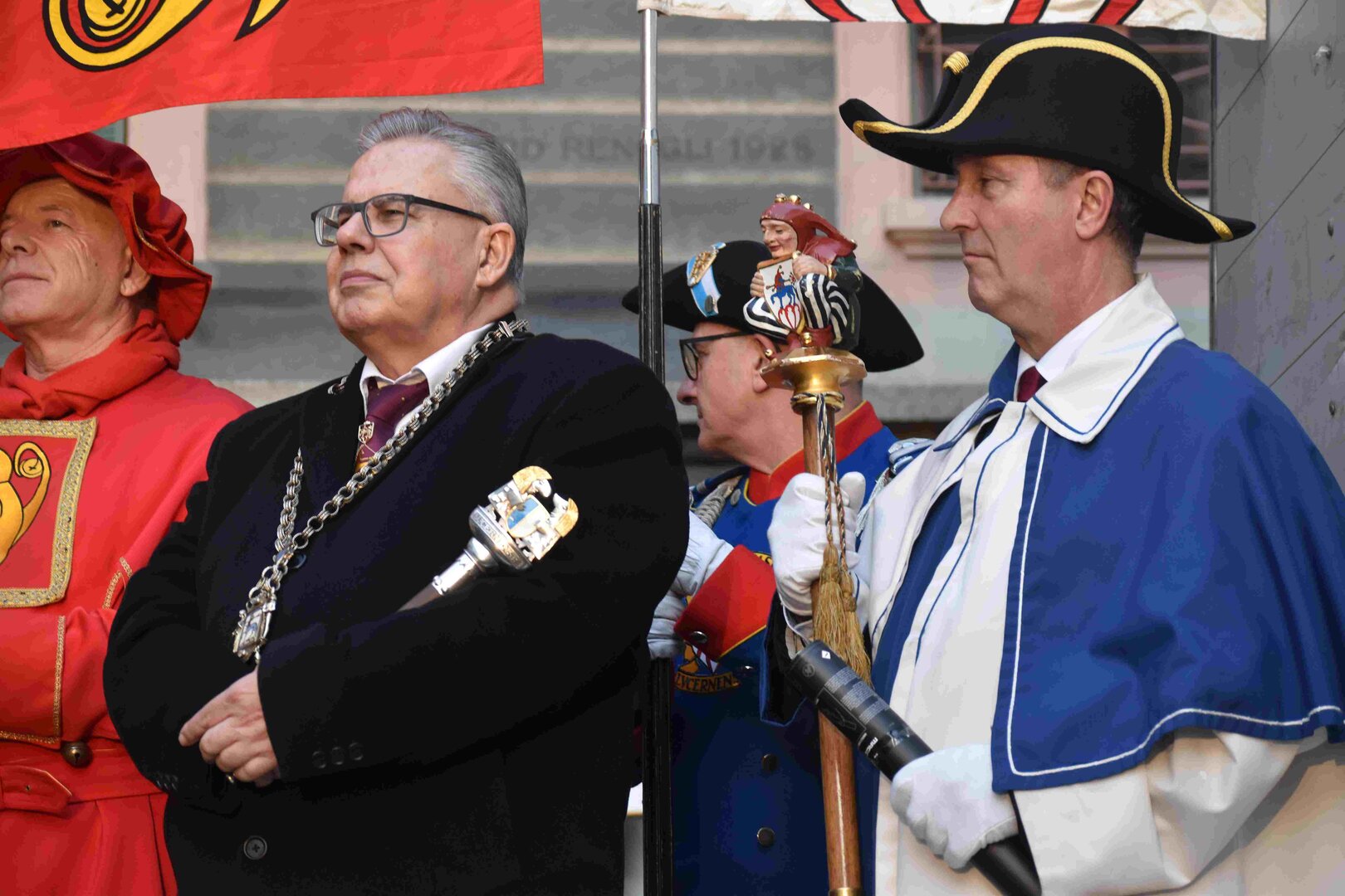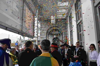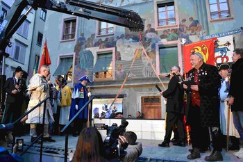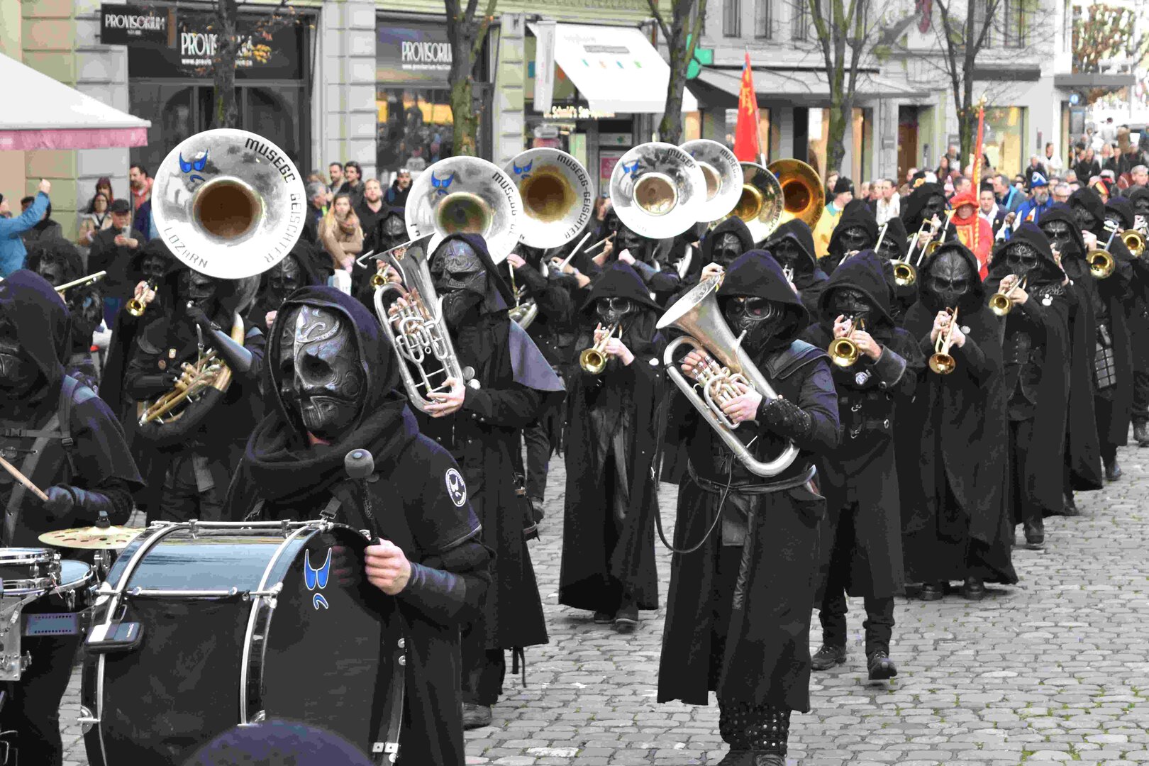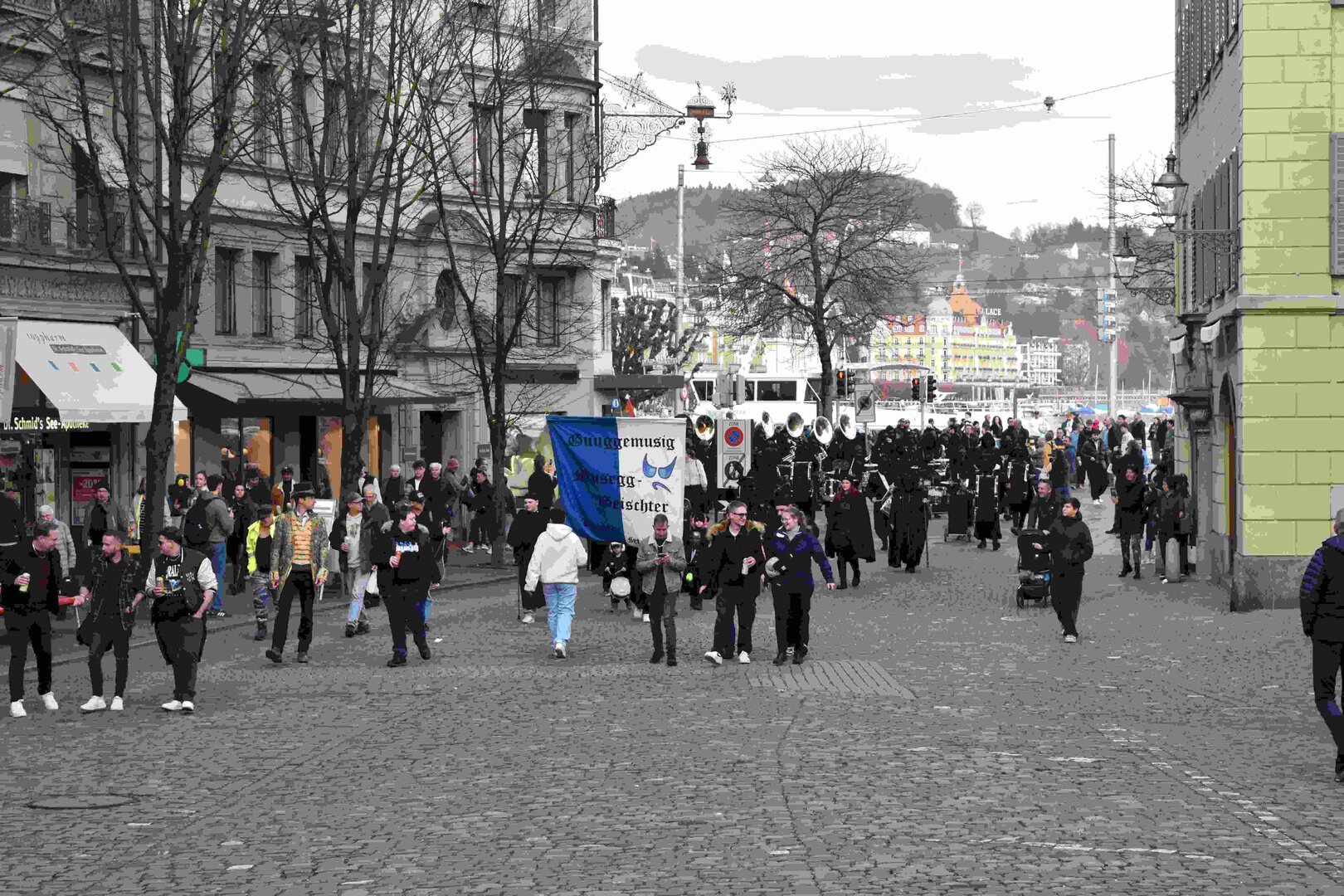 Begleitet von den Näbelhüüler Äbike und den Musegg-Geischter Lozärn zogen die Fasnachtsgewaltigen durch die Altstadt. Strahlender Sonnenschein und knackige Kälte sorgten für perfektes Wetter und einen würdigen Rahmen. Durch die Präsentation führte Thomas Zesiger und Vize-LFKP Peti Federer.