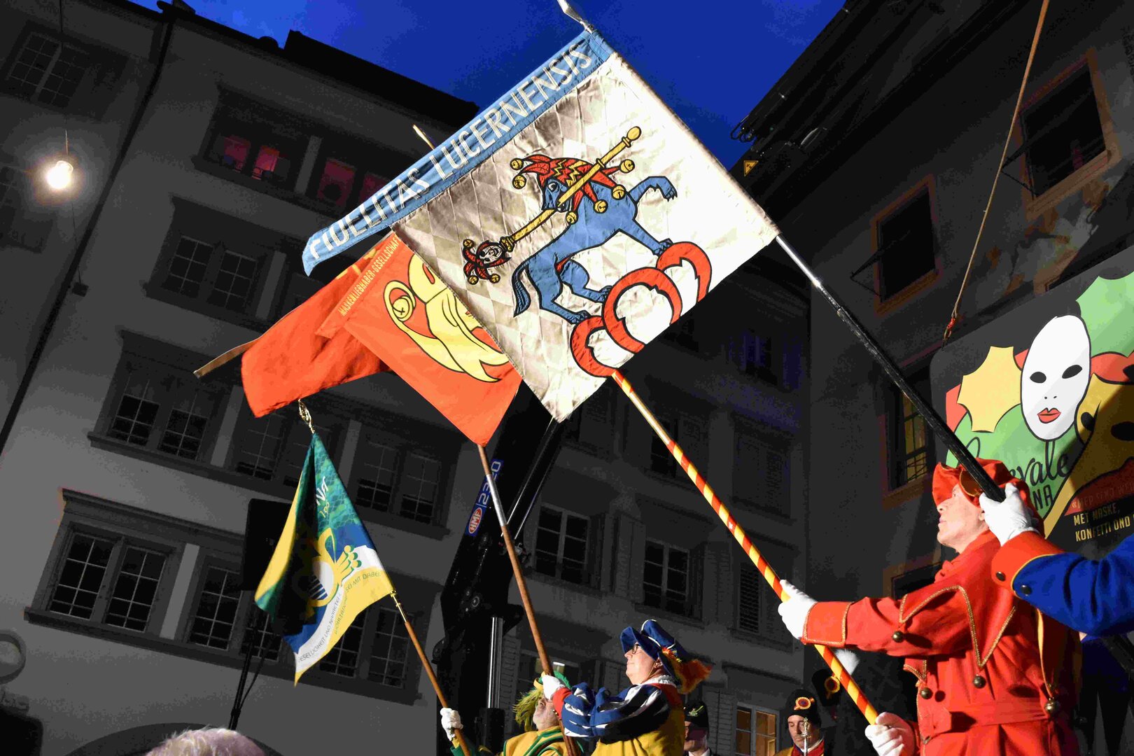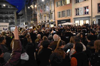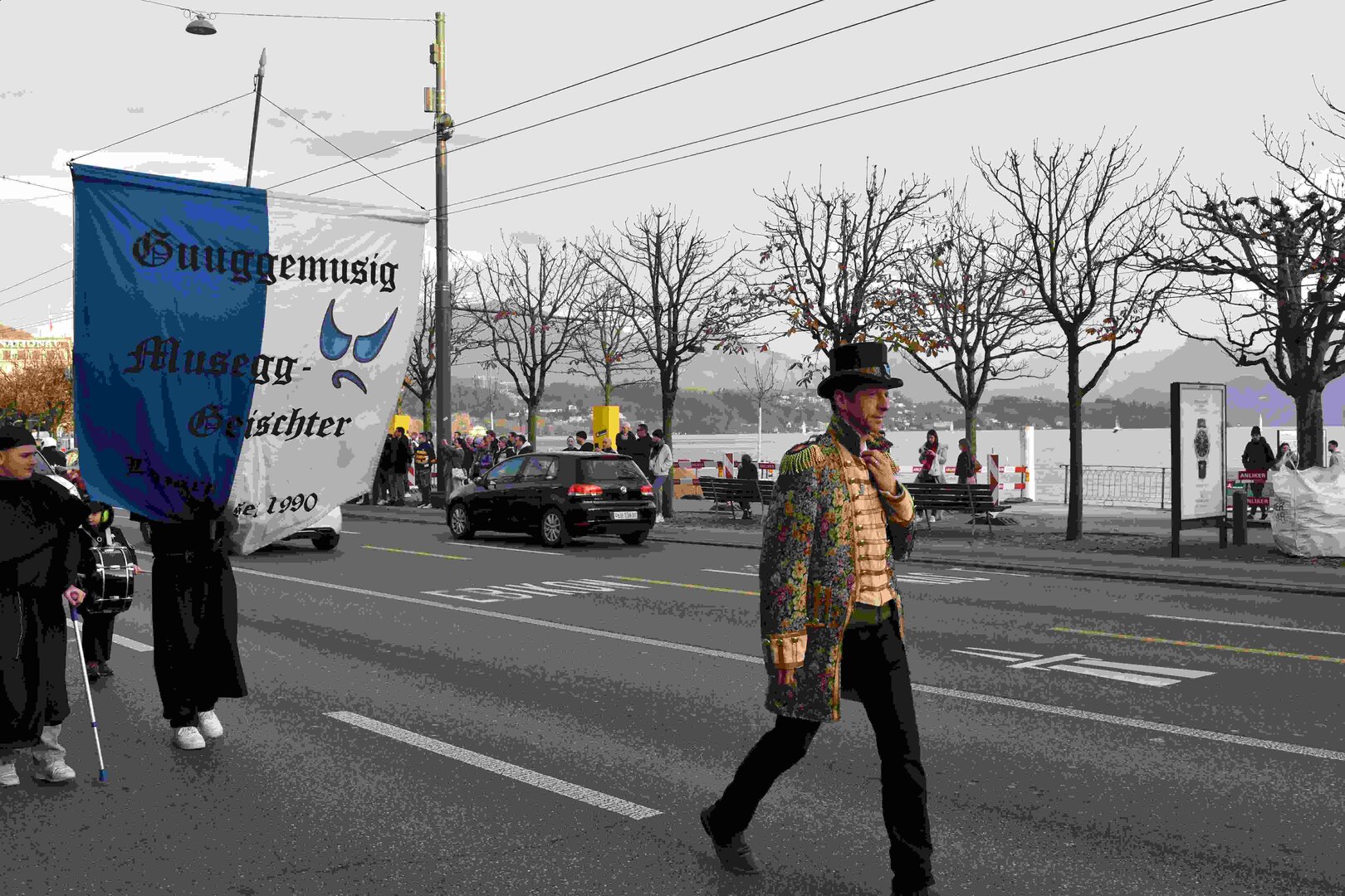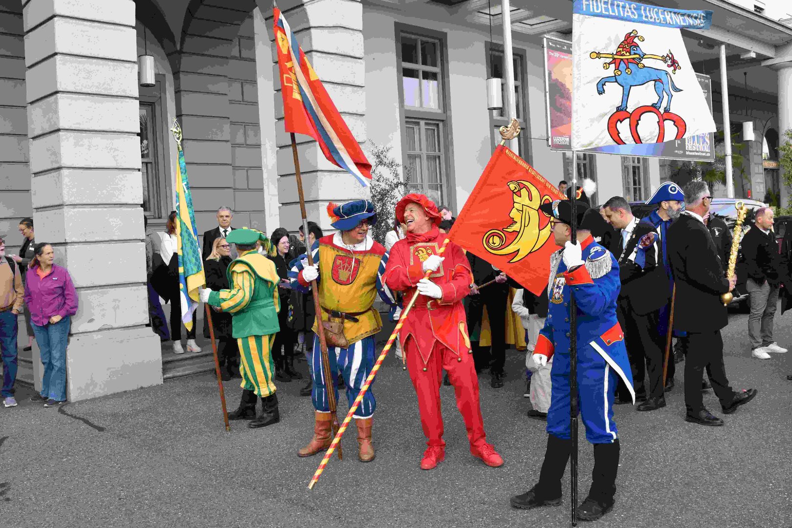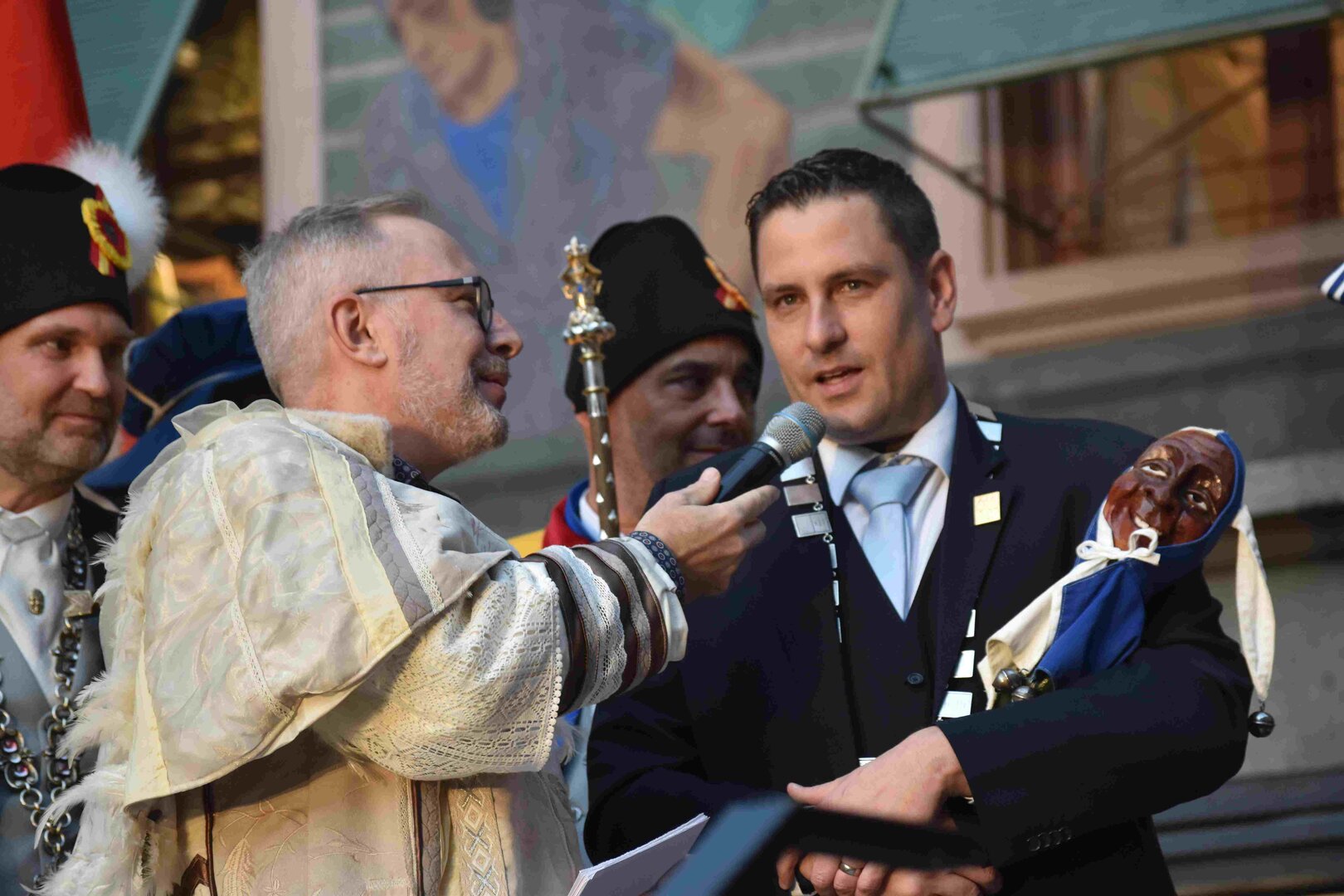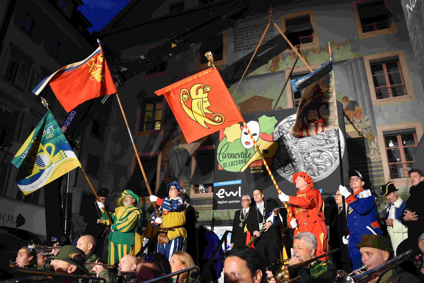 Begleitet von den Näbelhüüler Äbike und den Musegg-Geischter Lozärn zogen die Fasnachtsgewaltigen durch die Altstadt. Strahlender Sonnenschein und knackige Kälte sorgten für perfektes Wetter und einen würdigen Rahmen. Durch die Präsentation führte Thomas Zesiger und Vize-LFKP Peti Federer.