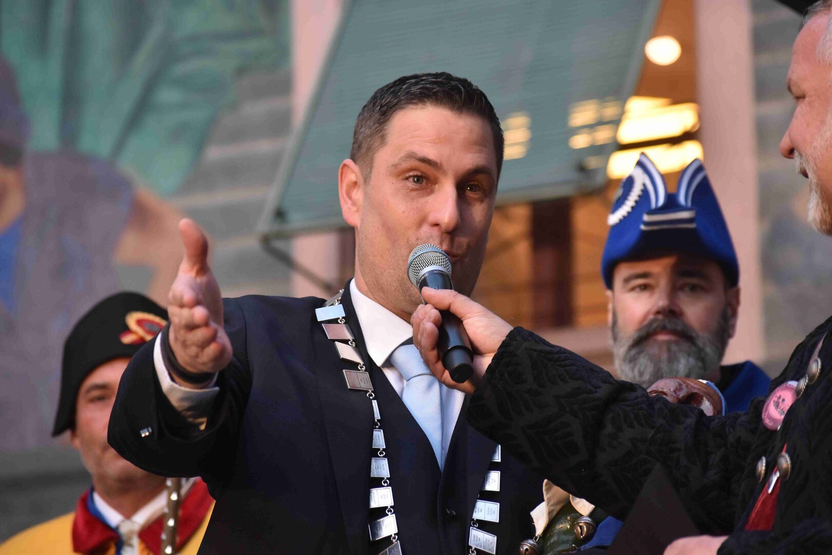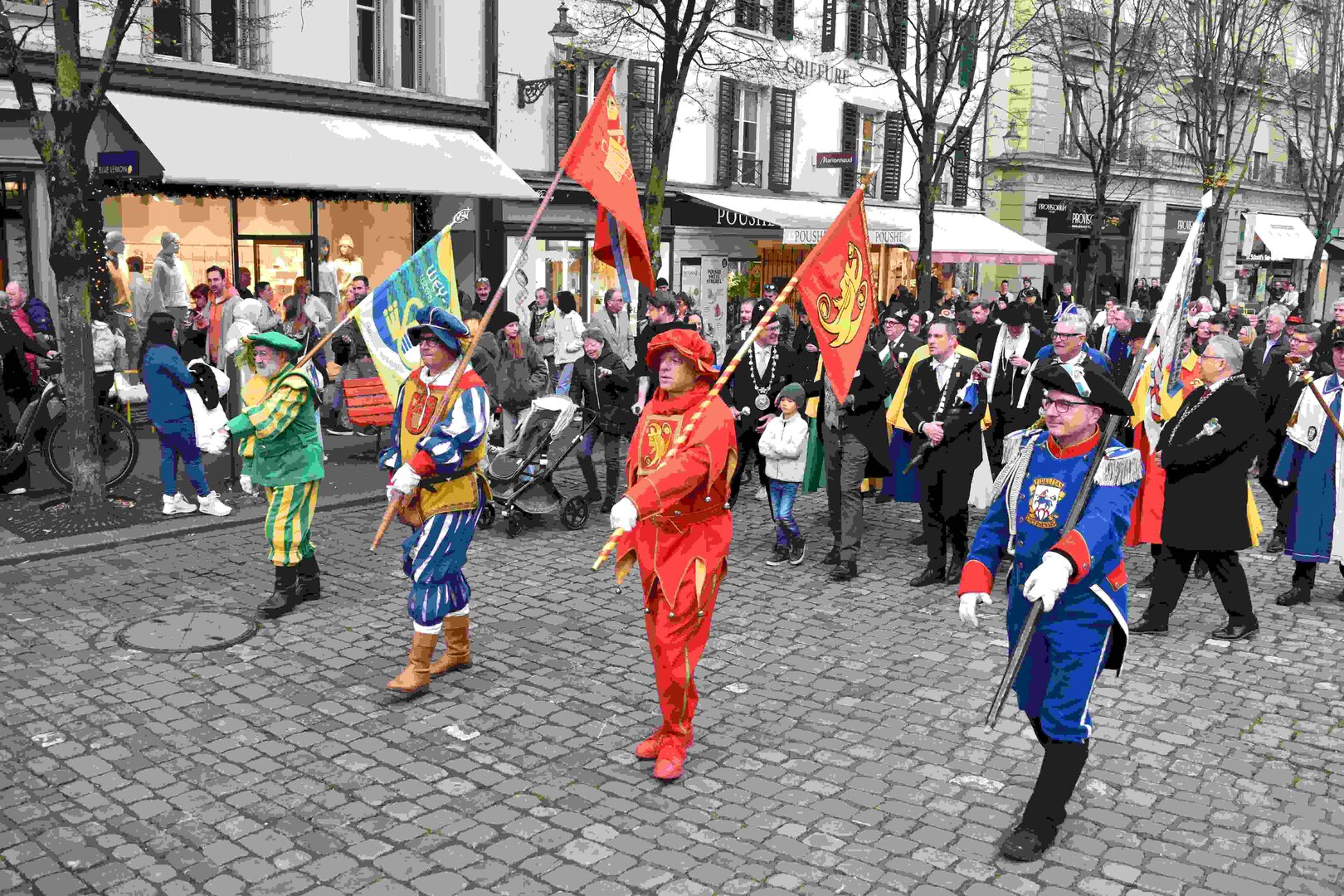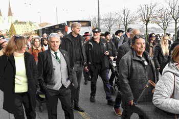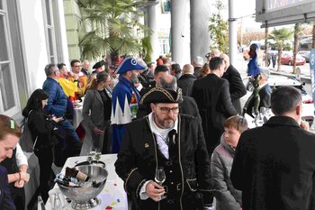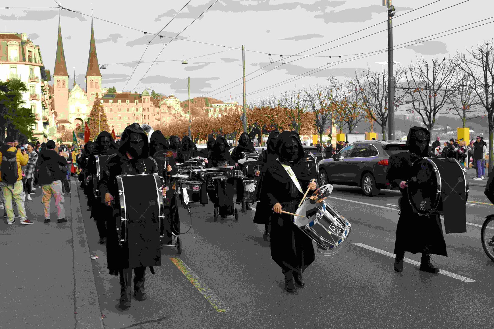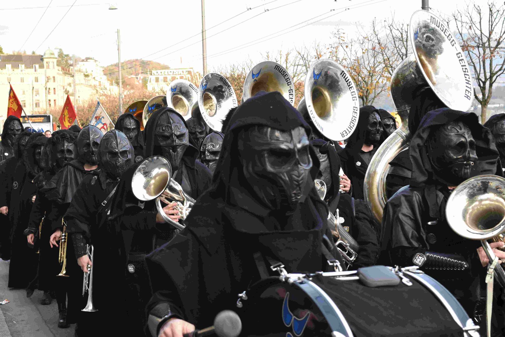 Begleitet von den Näbelhüüler Äbike und den Musegg-Geischter Lozärn zogen die Fasnachtsgewaltigen durch die Altstadt. Strahlender Sonnenschein und knackige Kälte sorgten für perfektes Wetter und einen würdigen Rahmen. Durch die Präsentation führte Thomas Zesiger und Vize-LFKP Peti Federer.