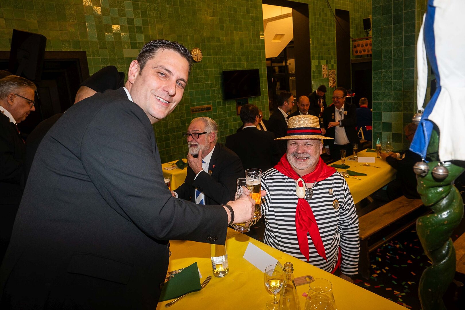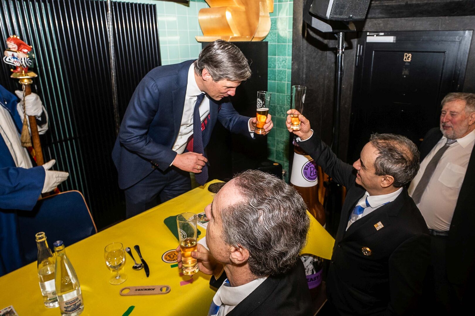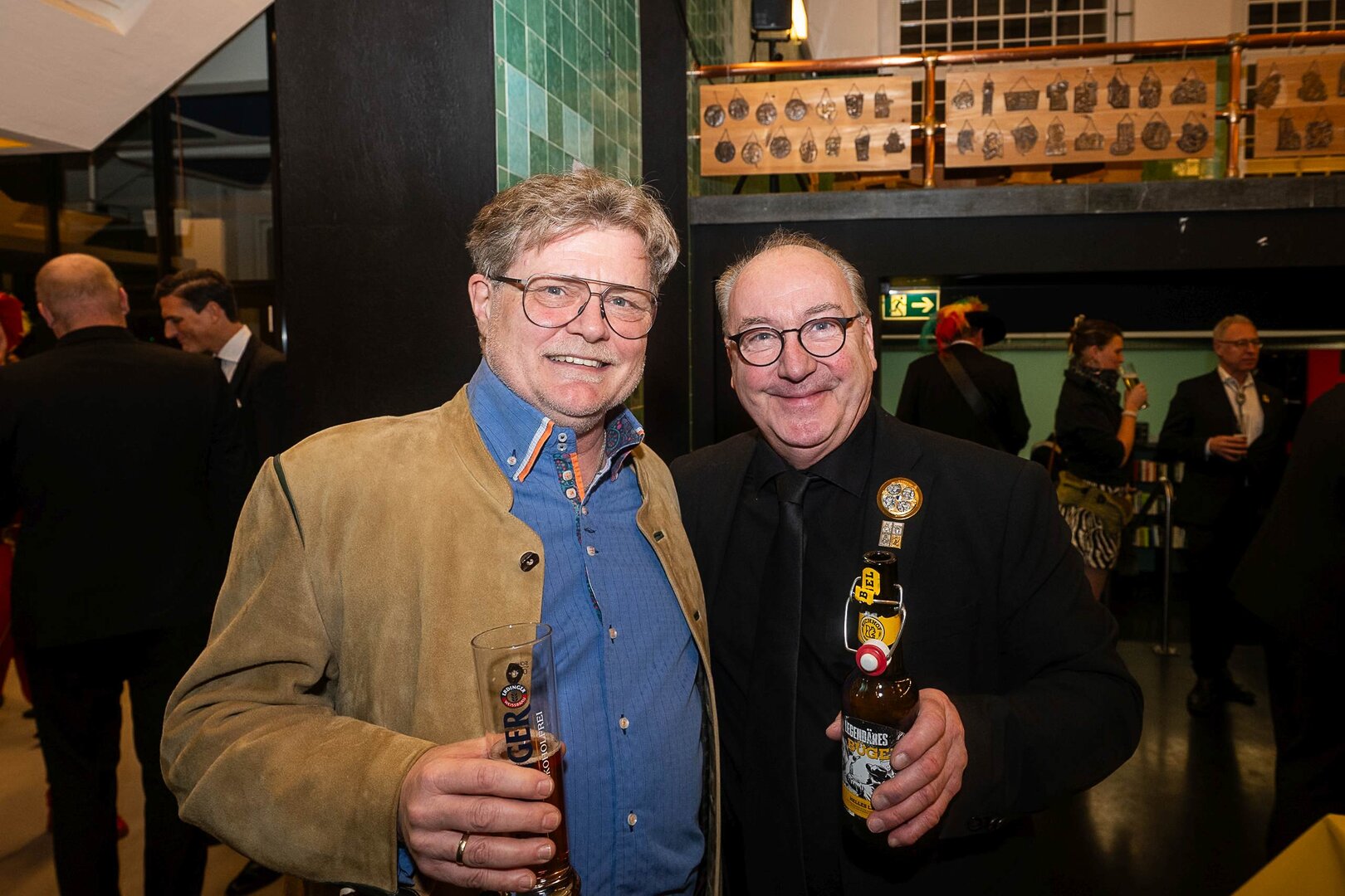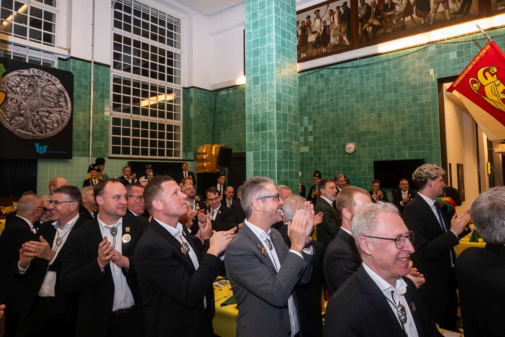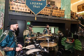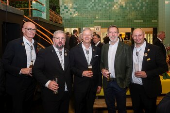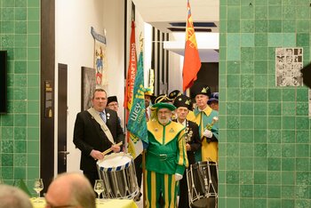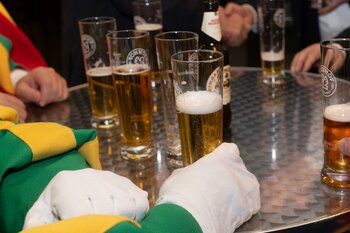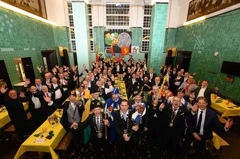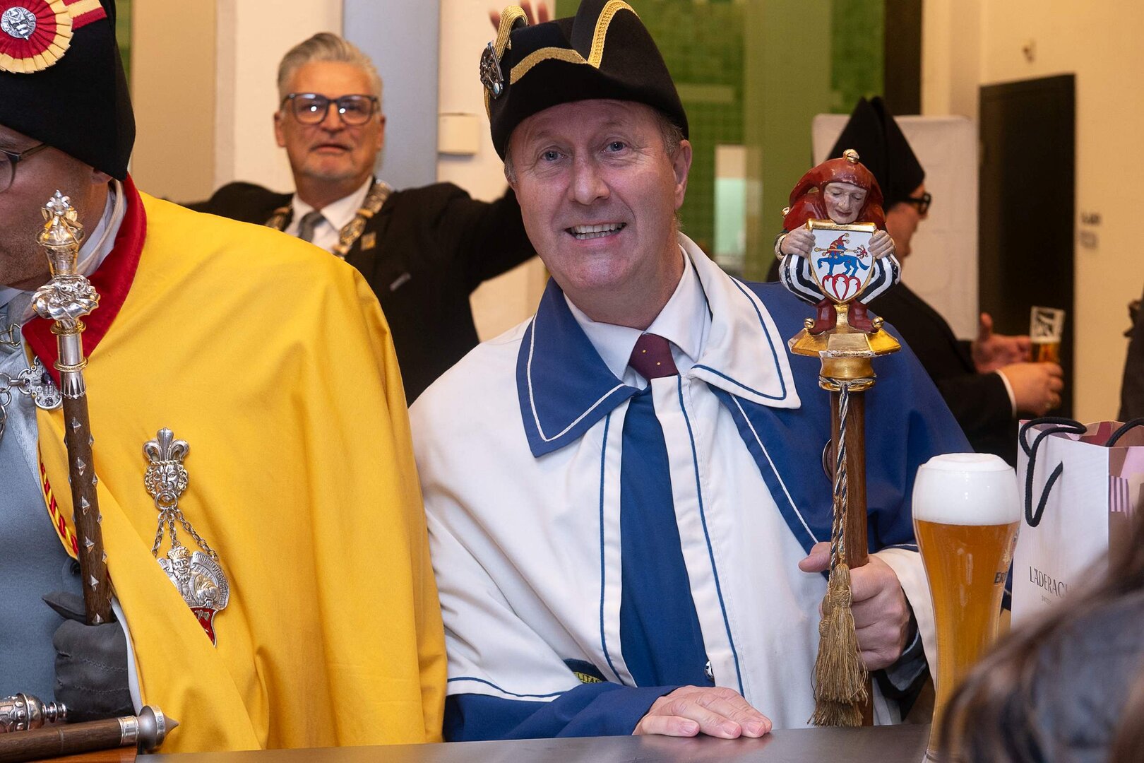 ph. Der Schalander-Empfang in der Brauerei Eichhof ist geprägt von Traditionen, die seit Jahrzehnten gepflegt werden. So das erste "Föteli" der Meister und Präsidenten. Und weil der Schalander - angeblich - auf Krienser Boden steht, ist an diesem Anlass auch der Krienser Gallivater mit dabei. Hoch den Bierhumpen, ein erstes gemeinsames Bild für die Medien und schon werden die Meister und Präsidenten von den LFK-Delegierten und Gästen mit stehenden Ovationen empfangen.