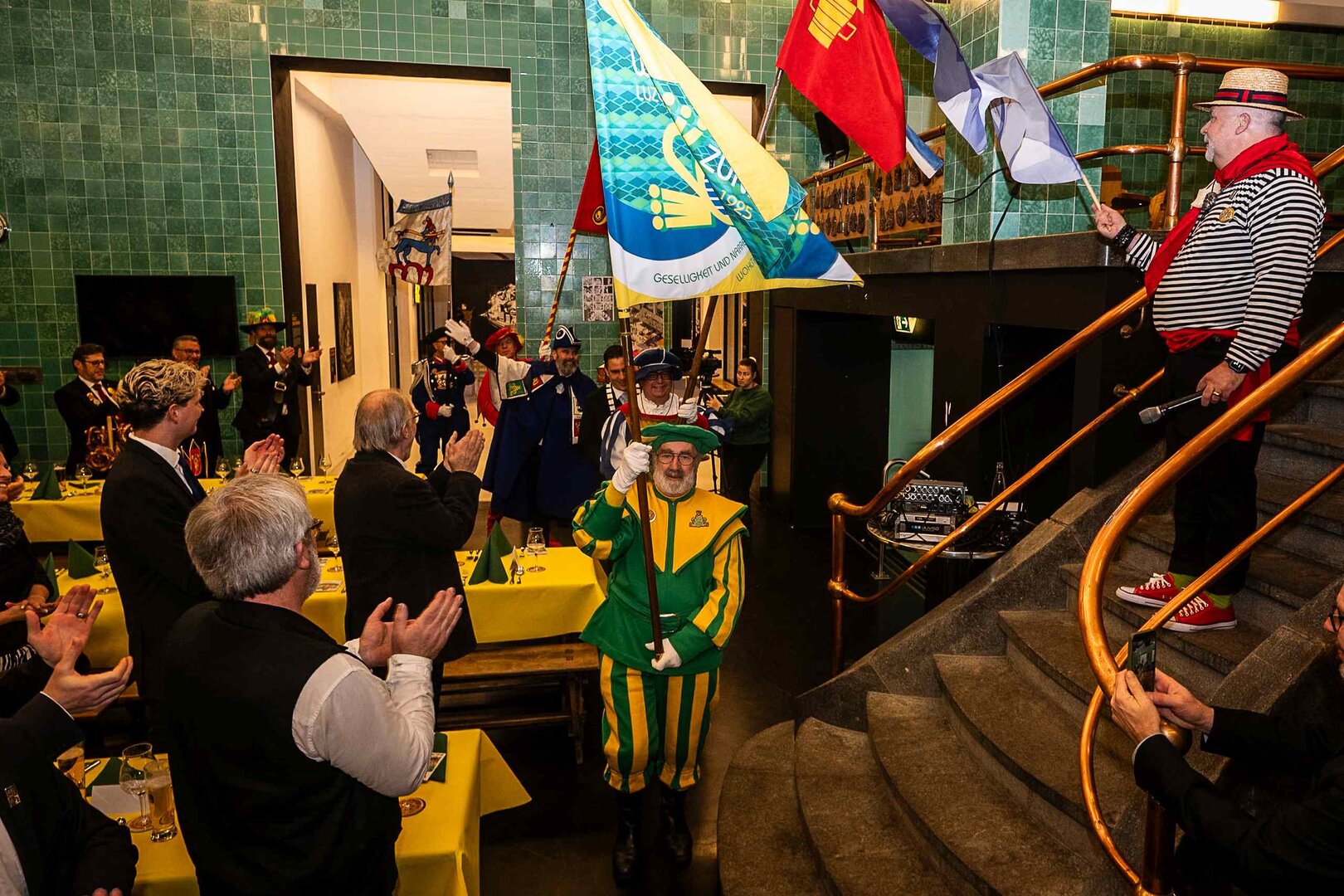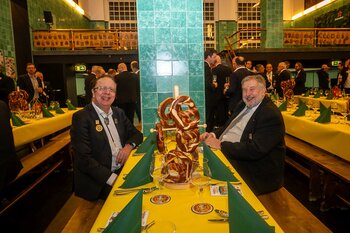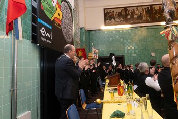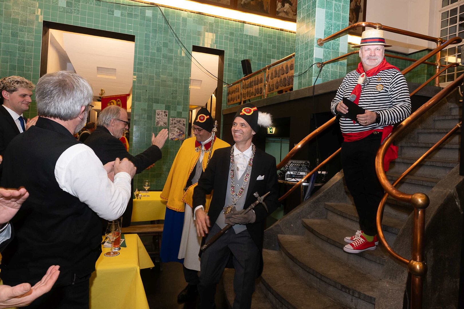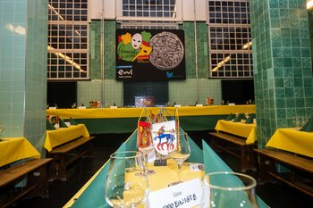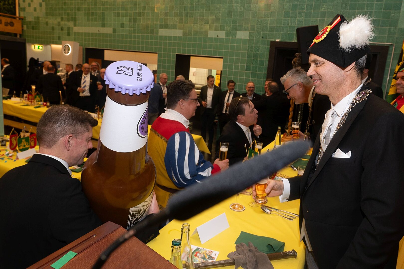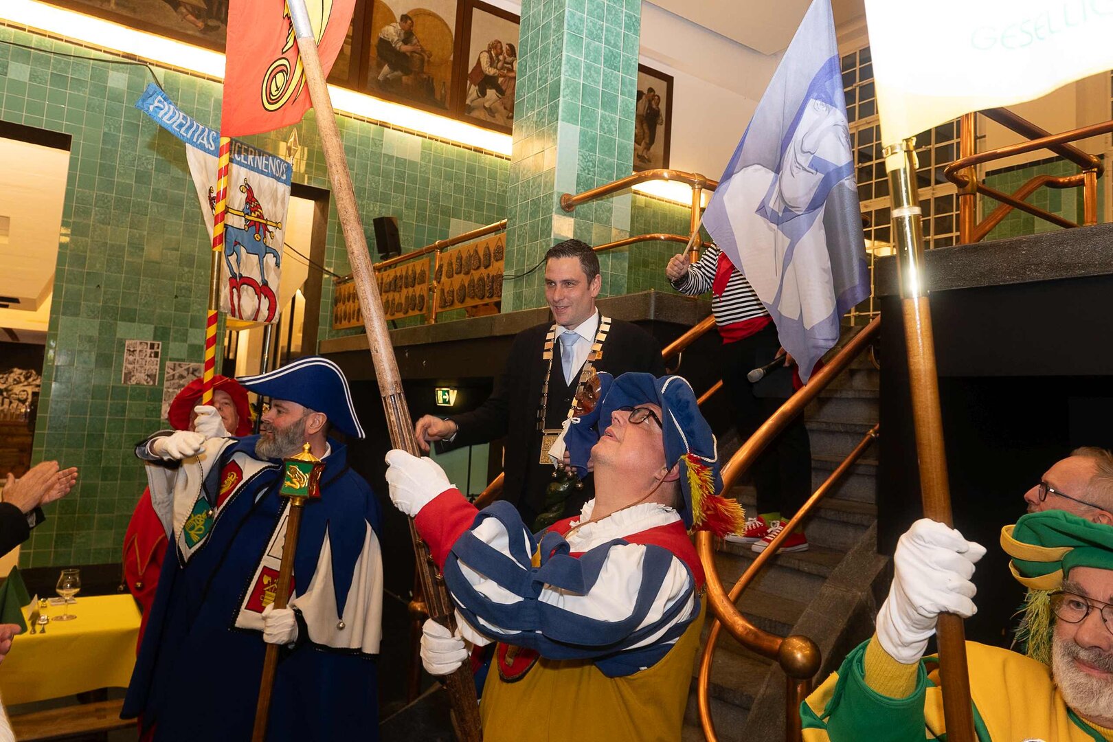 ph. Der Schalander-Empfang in der Brauerei Eichhof ist geprägt von Traditionen, die seit Jahrzehnten gepflegt werden. So das erste "Föteli" der Meister und Präsidenten. Und weil der Schalander - angeblich - auf Krienser Boden steht, ist an diesem Anlass auch der Krienser Gallivater mit dabei. Hoch den Bierhumpen, ein erstes gemeinsames Bild für die Medien und schon werden die Meister und Präsidenten von den LFK-Delegierten und Gästen mit stehenden Ovationen empfangen.