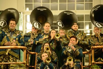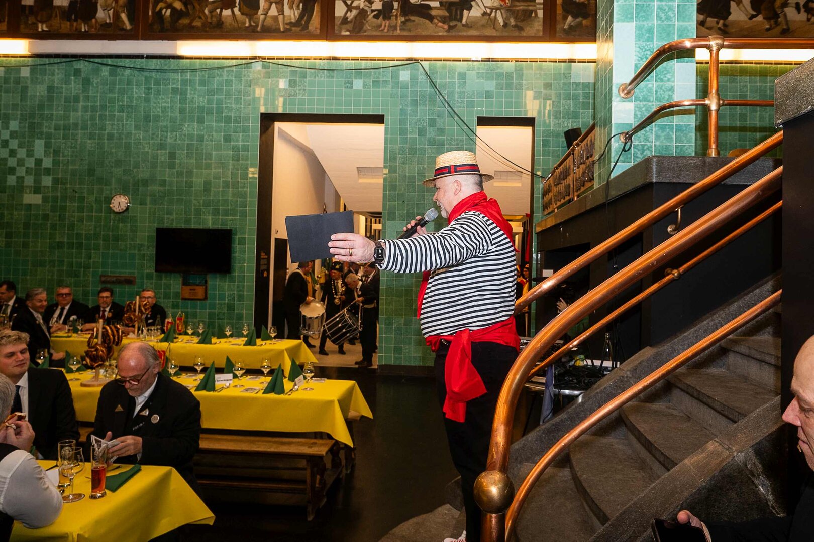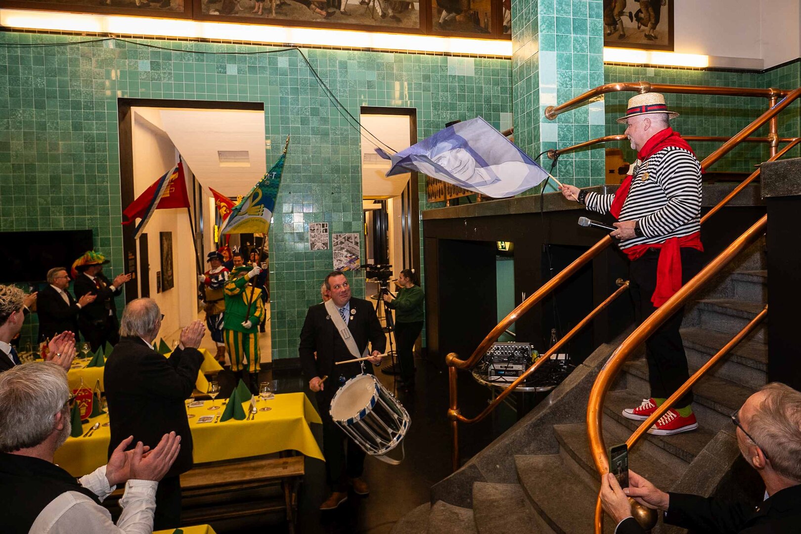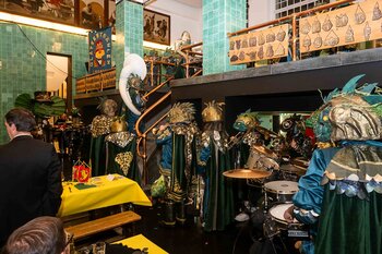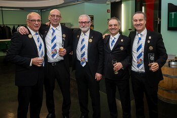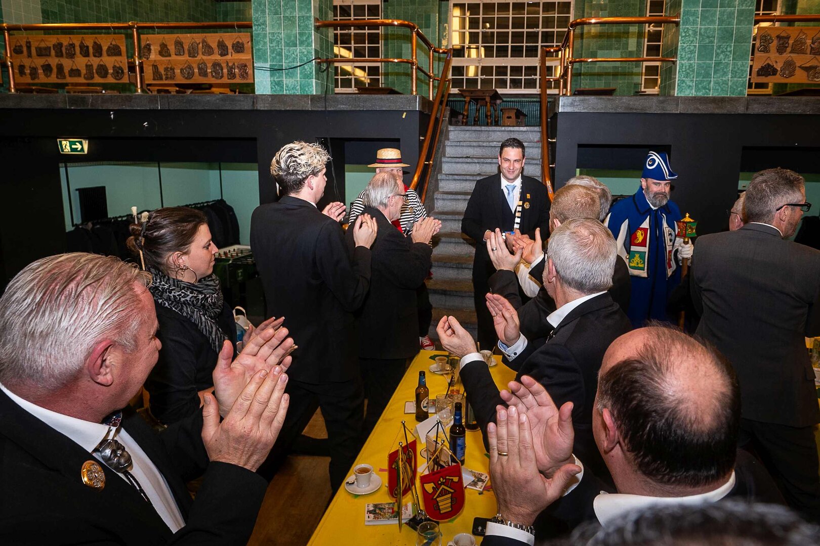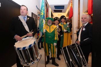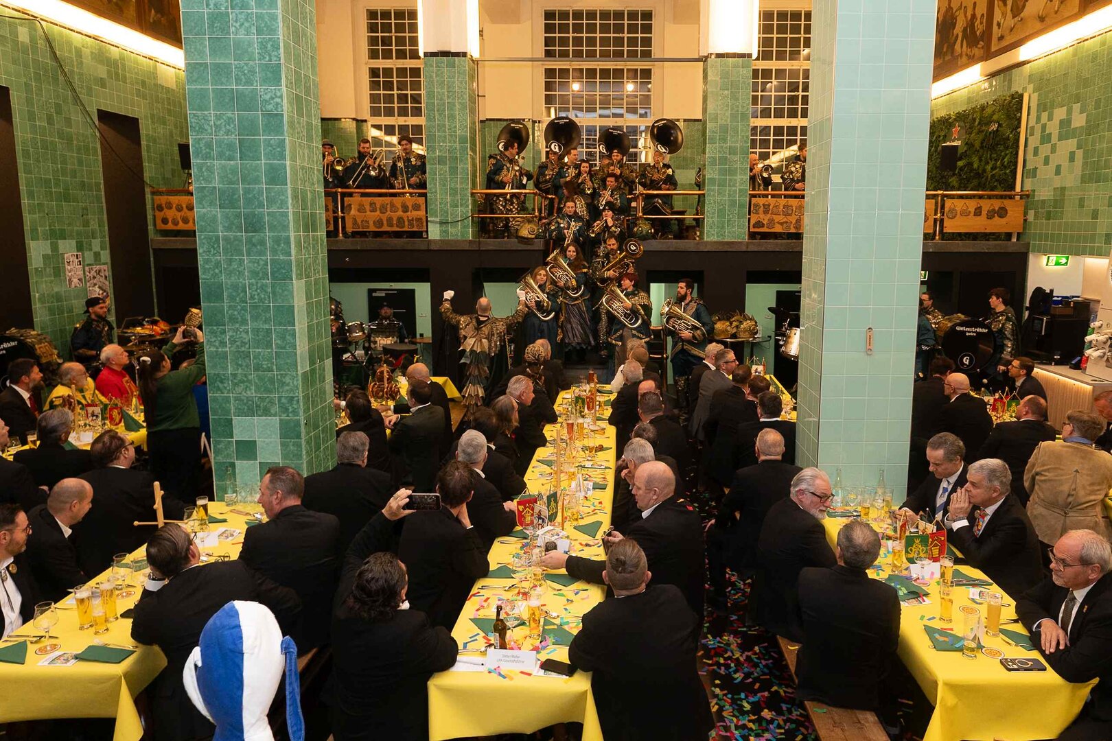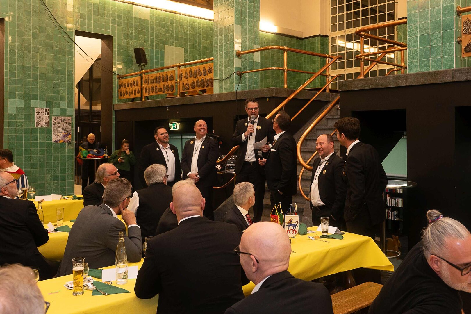 ph. Der Schalander-Empfang in der Brauerei Eichhof ist geprägt von Traditionen, die seit Jahrzehnten gepflegt werden. So das erste "Föteli" der Meister und Präsidenten. Und weil der Schalander - angeblich - auf Krienser Boden steht, ist an diesem Anlass auch der Krienser Gallivater mit dabei. Hoch den Bierhumpen, ein erstes gemeinsames Bild für die Medien und schon werden die Meister und Präsidenten von den LFK-Delegierten und Gästen mit stehenden Ovationen empfangen.