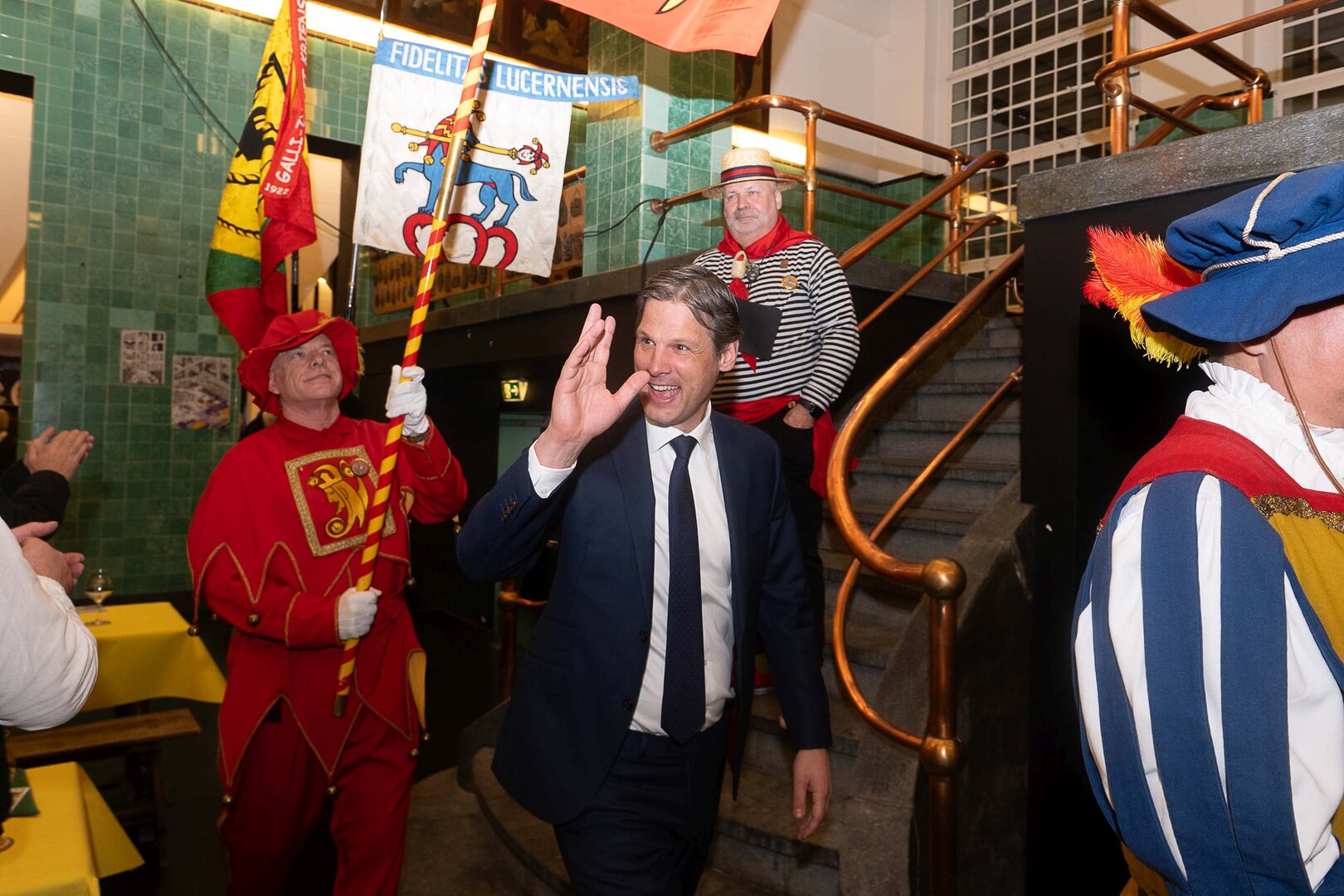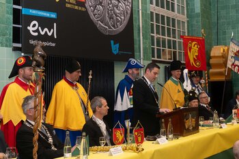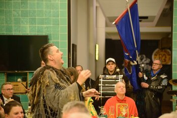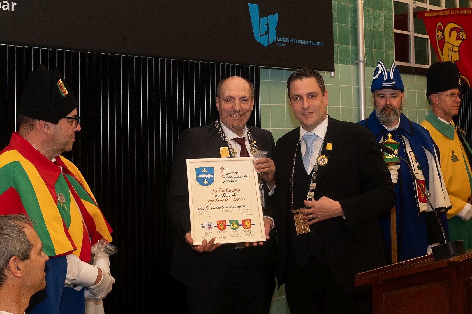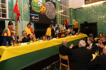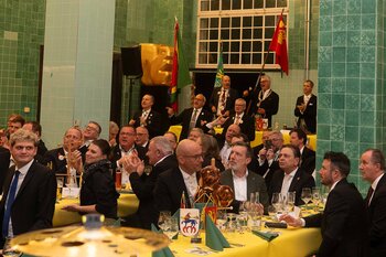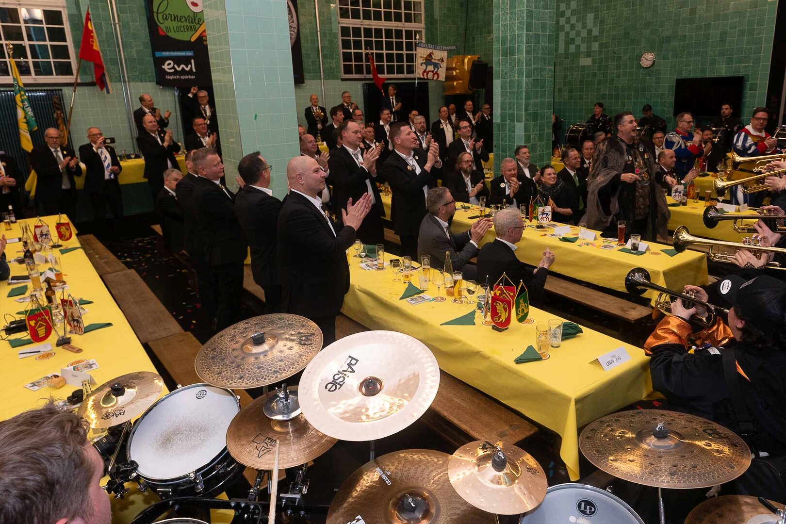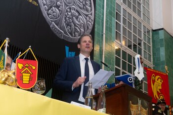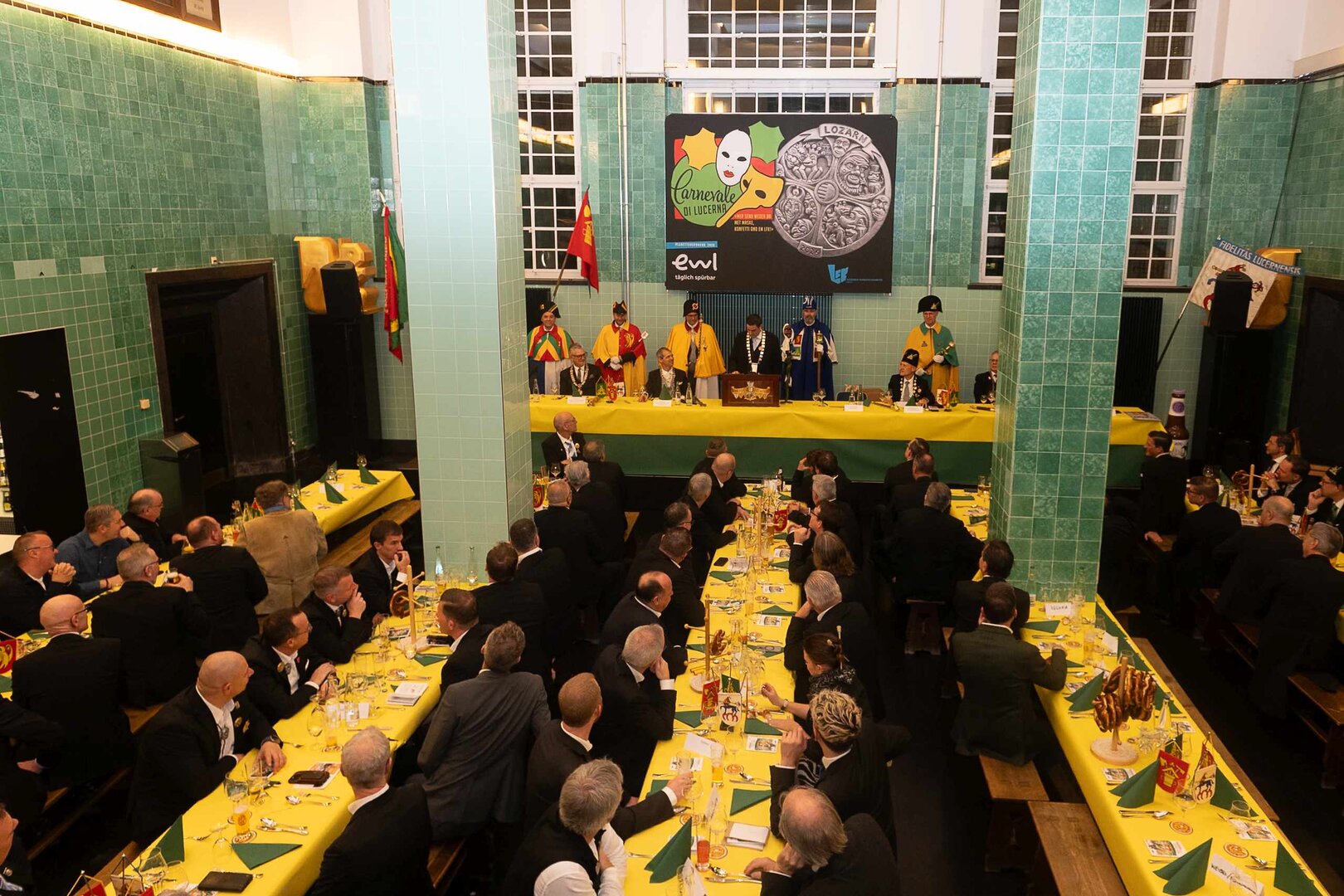 Gespannt ist man natürlich auf die Festansprachen der Fasnachtsgewaltigen. Diesen Reigen eröffnet jeweils der Chef der gastgebenden Brauerei Eichhof - bereits zum dritten Mal vom Managing Director Diederik Vos. Der gebürtige Niederländer sagte selber, dass er offenbar an Rudi Karell erinnert. Der einzigartige LFK-Präsident Flavio Boschian begrüsste denn auch die übrigen Festredner. Der Zunftmeister der Wey-Zunft Berto Margraf zeigte sich mit seinem Motto "gnüss s'Läbe" voller Tatendrang. Der neue Zunftmeister zu Safran und Fritschivater 2026 Stefan Hug war überrascht, dass der "Ultra" Büsche im Schalander anzutreffen ist und der MLG-Präsident überzeugte wieder mit einer überlangen Rede von Bier-Ei Marathon und seinem Köbeli usem Entlebuch. So hingegen schwärmte hochwohllöblichen Dominus Markus Achermann von seinen Vorrednern, welcher sich wohl fühlt im Ü60-Club.