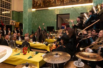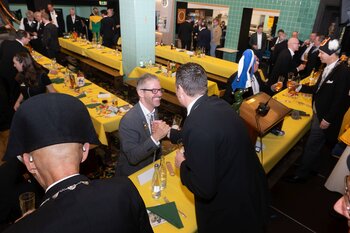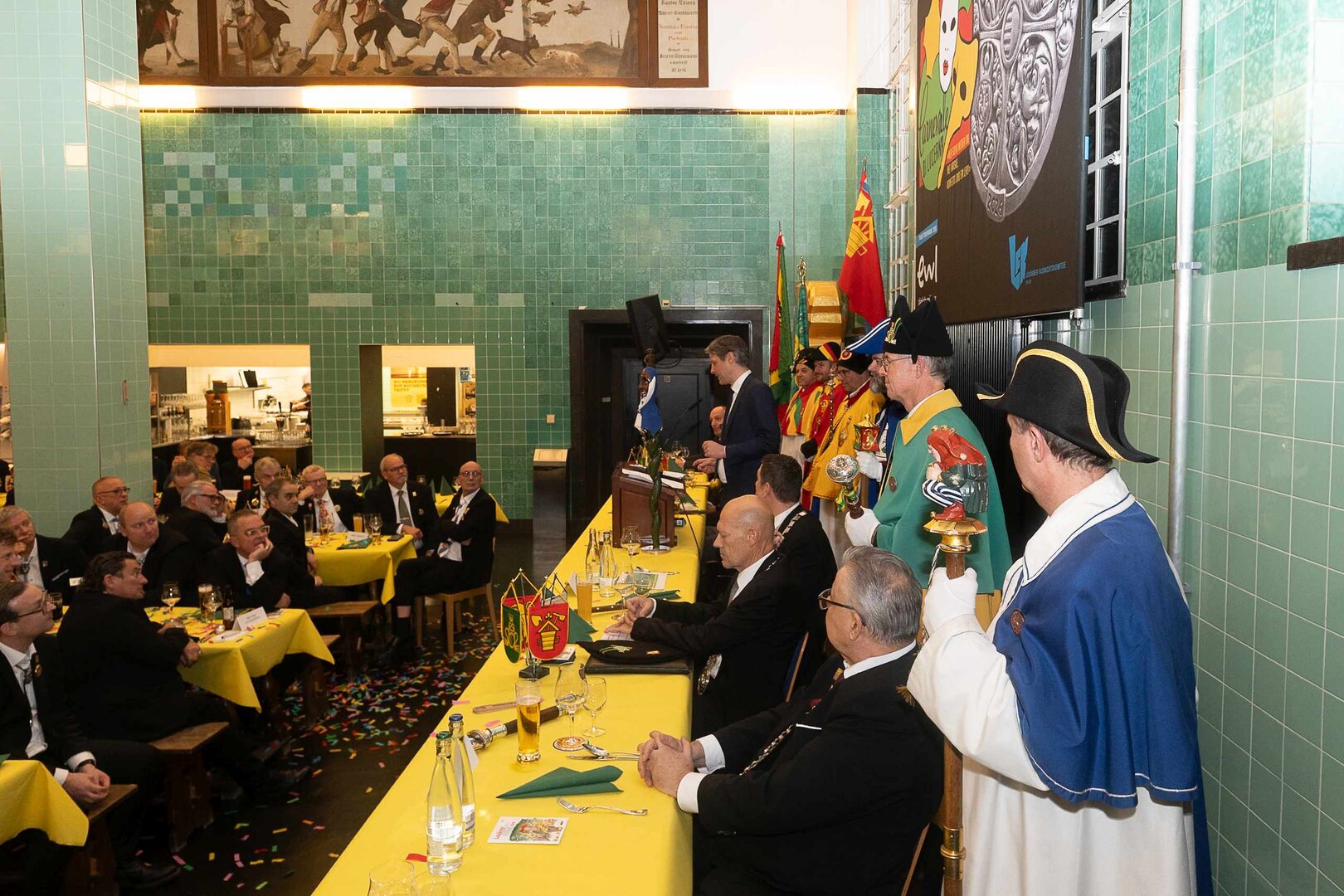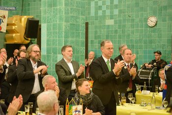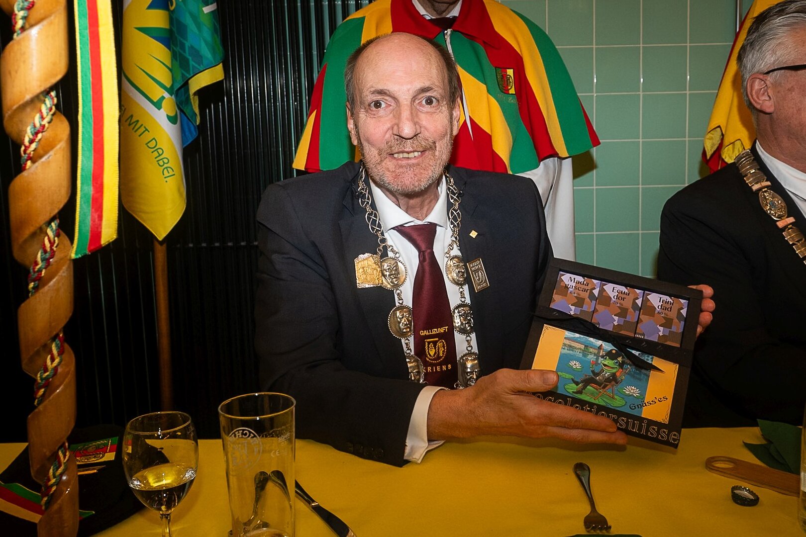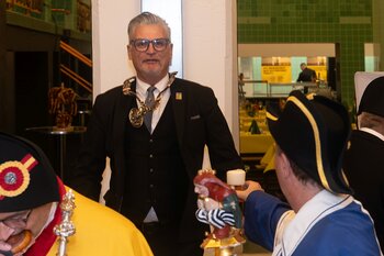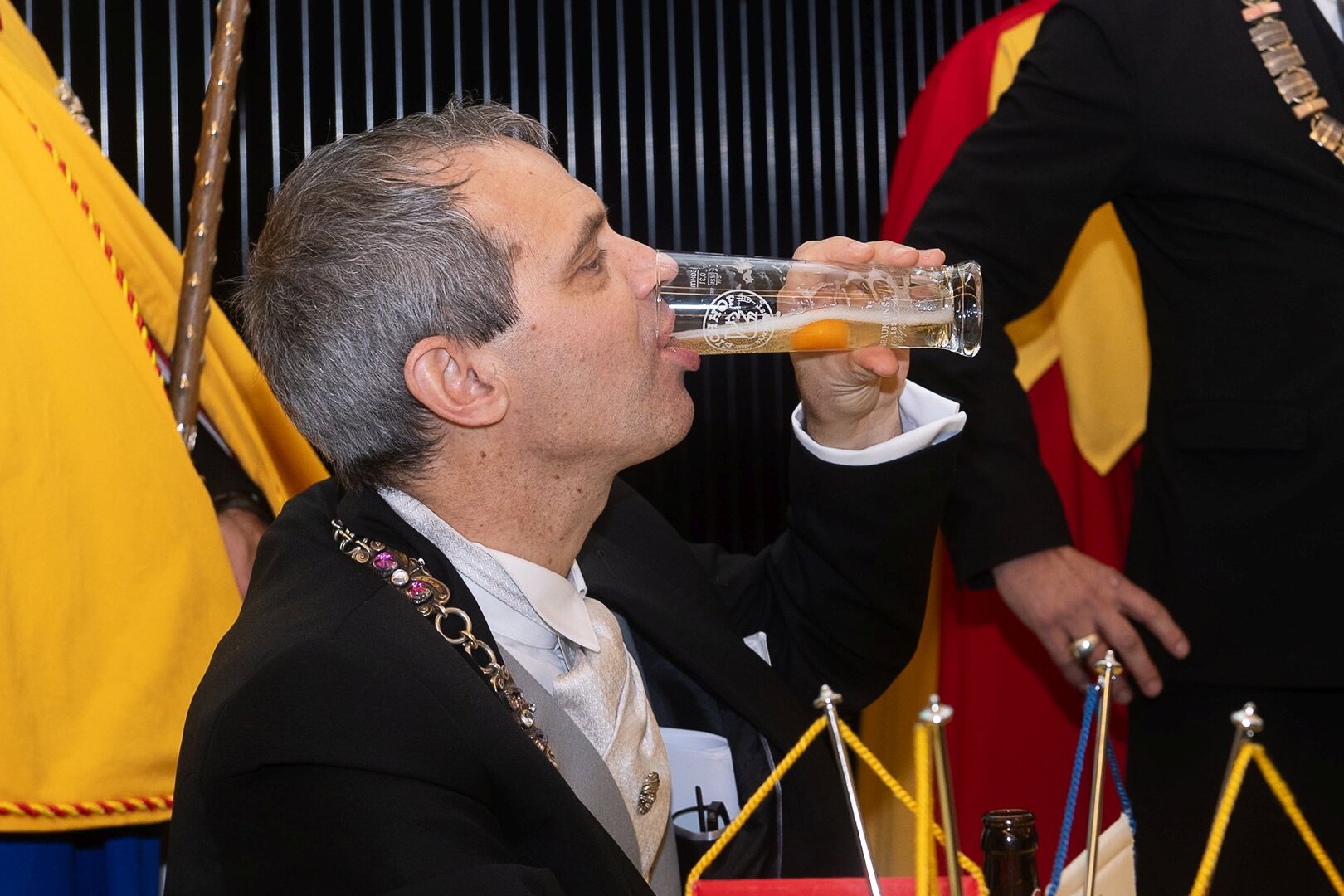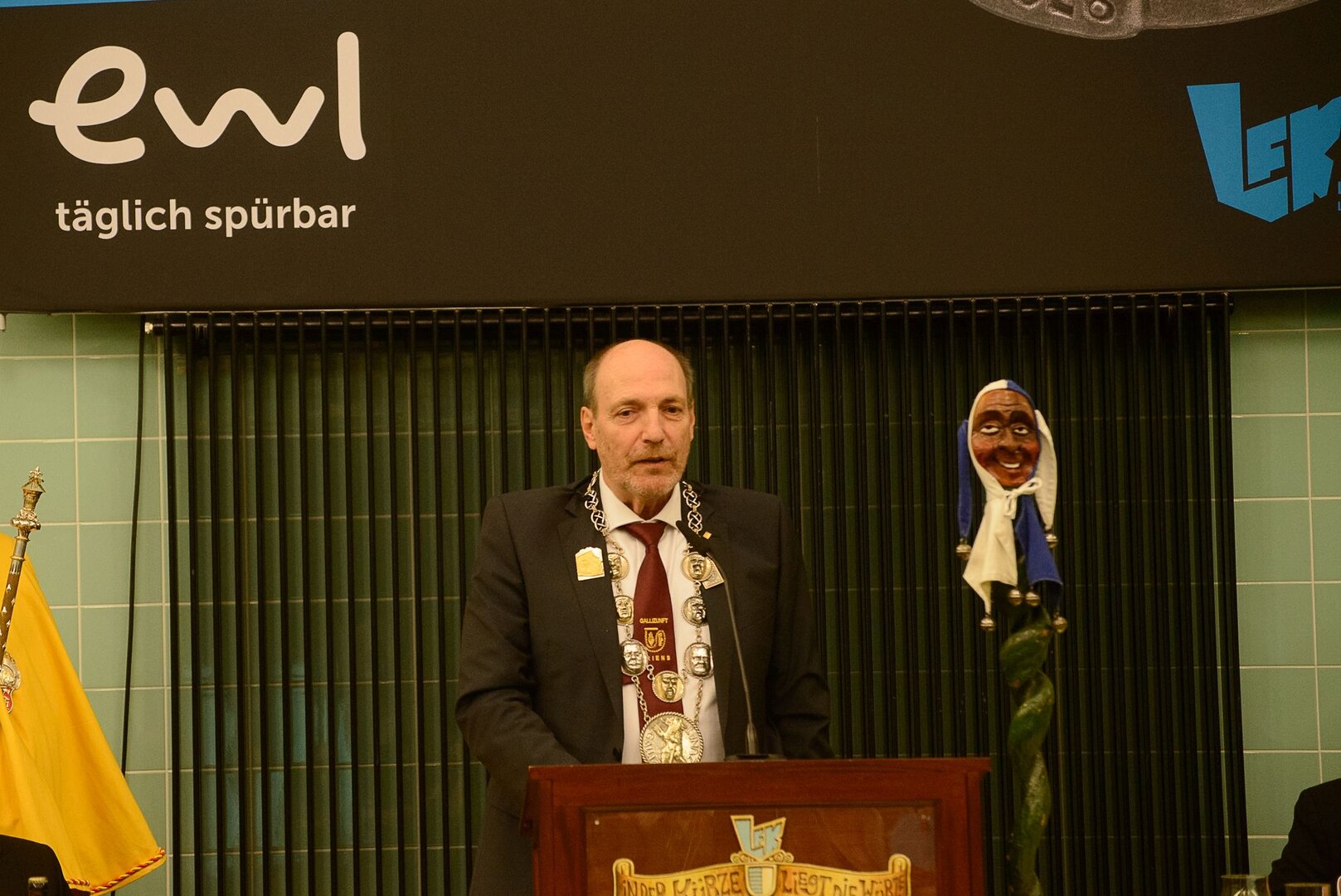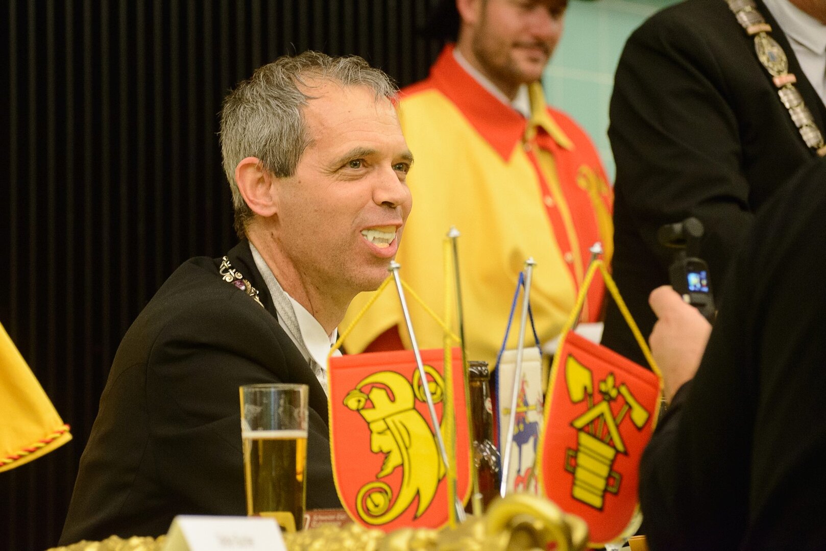Gespannt ist man natürlich auf die Festansprachen der Fasnachtsgewaltigen. Diesen Reigen eröffnet jeweils der Chef der gastgebenden Brauerei Eichhof - bereits zum dritten Mal vom Managing Director Diederik Vos. Der gebürtige Niederländer sagte selber, dass er offenbar an Rudi Karell erinnert. Der einzigartige LFK-Präsident Flavio Boschian begrüsste denn auch die übrigen Festredner. Der Zunftmeister der Wey-Zunft Berto Margraf zeigte sich mit seinem Motto "gnüss s'Läbe" voller Tatendrang. Der neue Zunftmeister zu Safran und Fritschivater 2026 Stefan Hug war überrascht, dass der "Ultra" Büsche im Schalander anzutreffen ist und der MLG-Präsident überzeugte wieder mit einer überlangen Rede von Bier-Ei Marathon und seinem Köbeli usem Entlebuch. So hingegen schwärmte hochwohllöblichen Dominus Markus Achermann von seinen Vorrednern, welcher sich wohl fühlt im Ü60-Club.