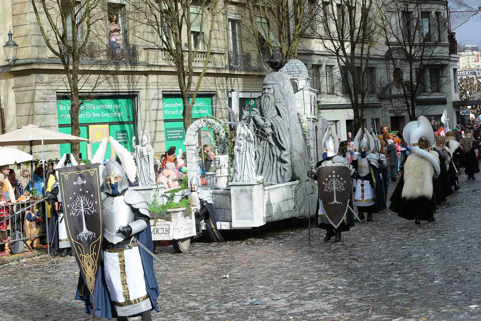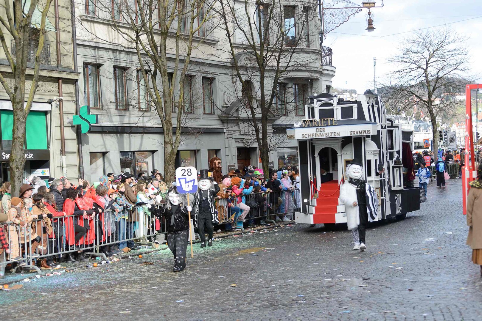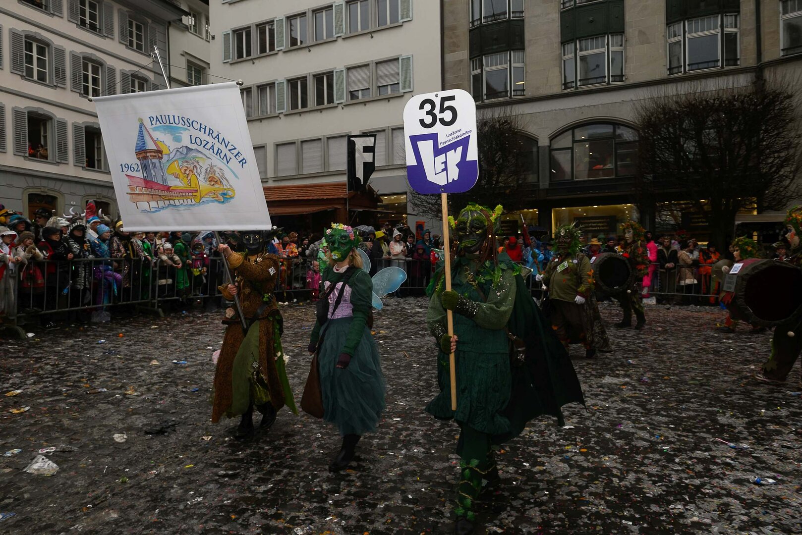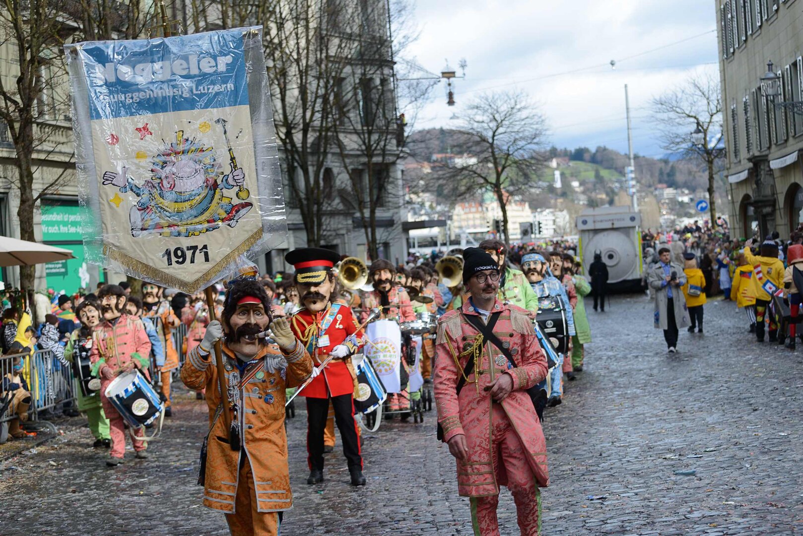 ph. 47 Umzugsnummern konnte das LFK in diesem Jahr einladen, mehrere Teilnehmenden mussten vertröstet werden. Punkt 14 Uhr starteten die Bannerherren zu Pferd der vier LFK-Zünfte und -Gesellschaften, vom Luzernerhof via Schweizerhofquai, Kapellplatz mit Fritschibrunnen, Seebrücke, Bahnhofplatz, Pilatusstrasse bis hin zur Winkelriedstrasse, mit Auflösung beim Helvetiaplatz. Das Wetter war trotz regnerischen Vorhersagen äusserst Milde und sogar die Sonne zeigte sich einige Male. Petrus muss ein Fasnächtler sein!