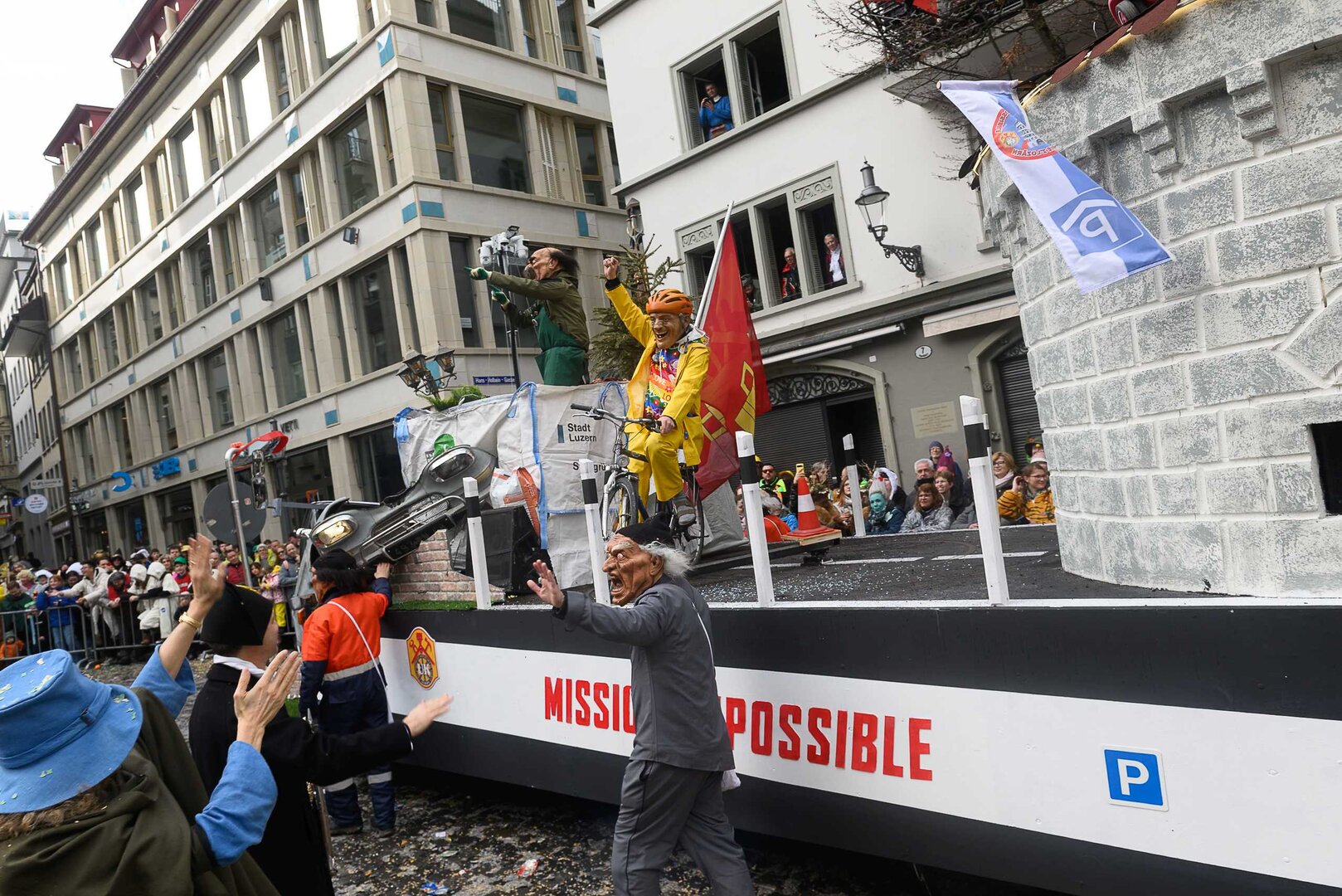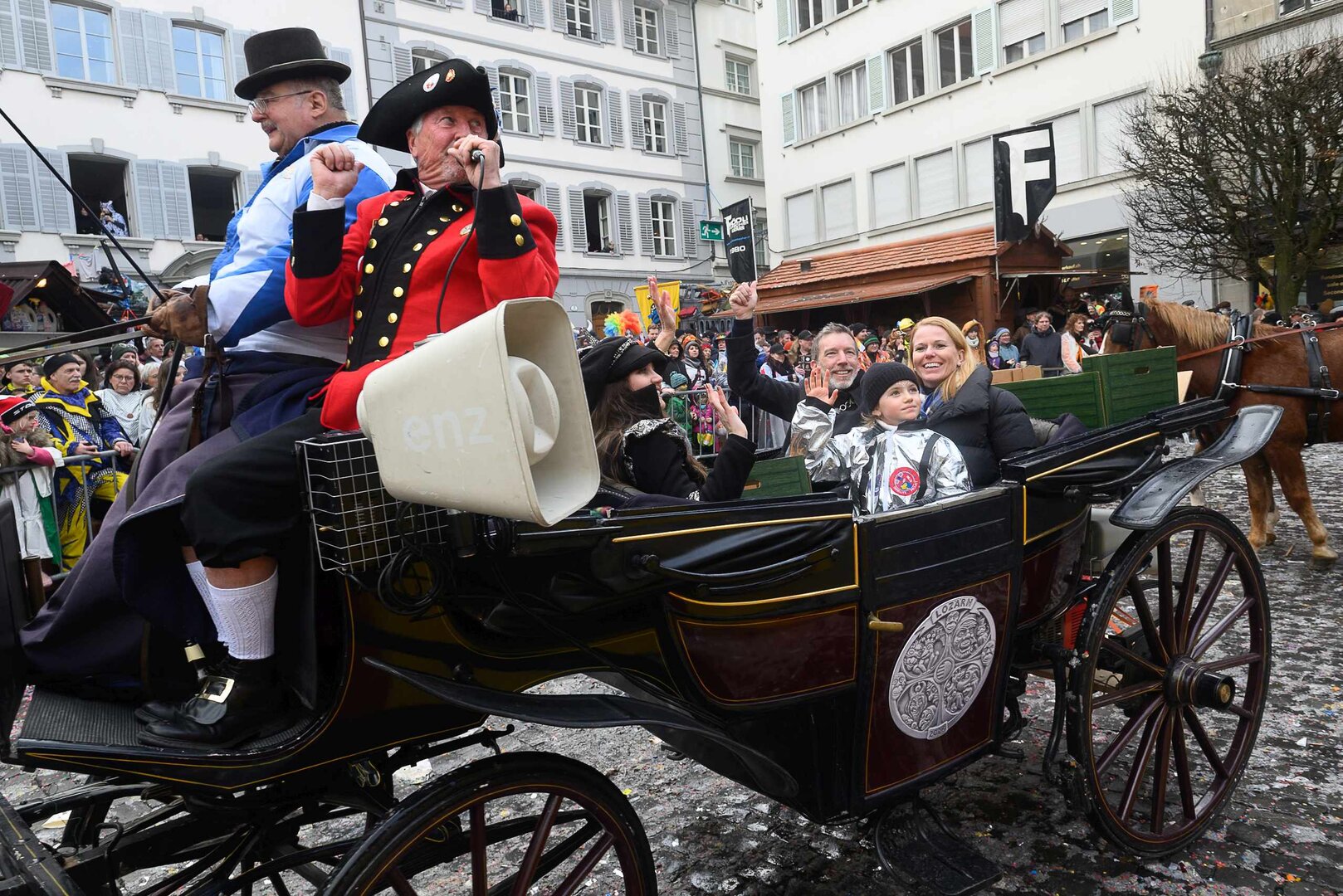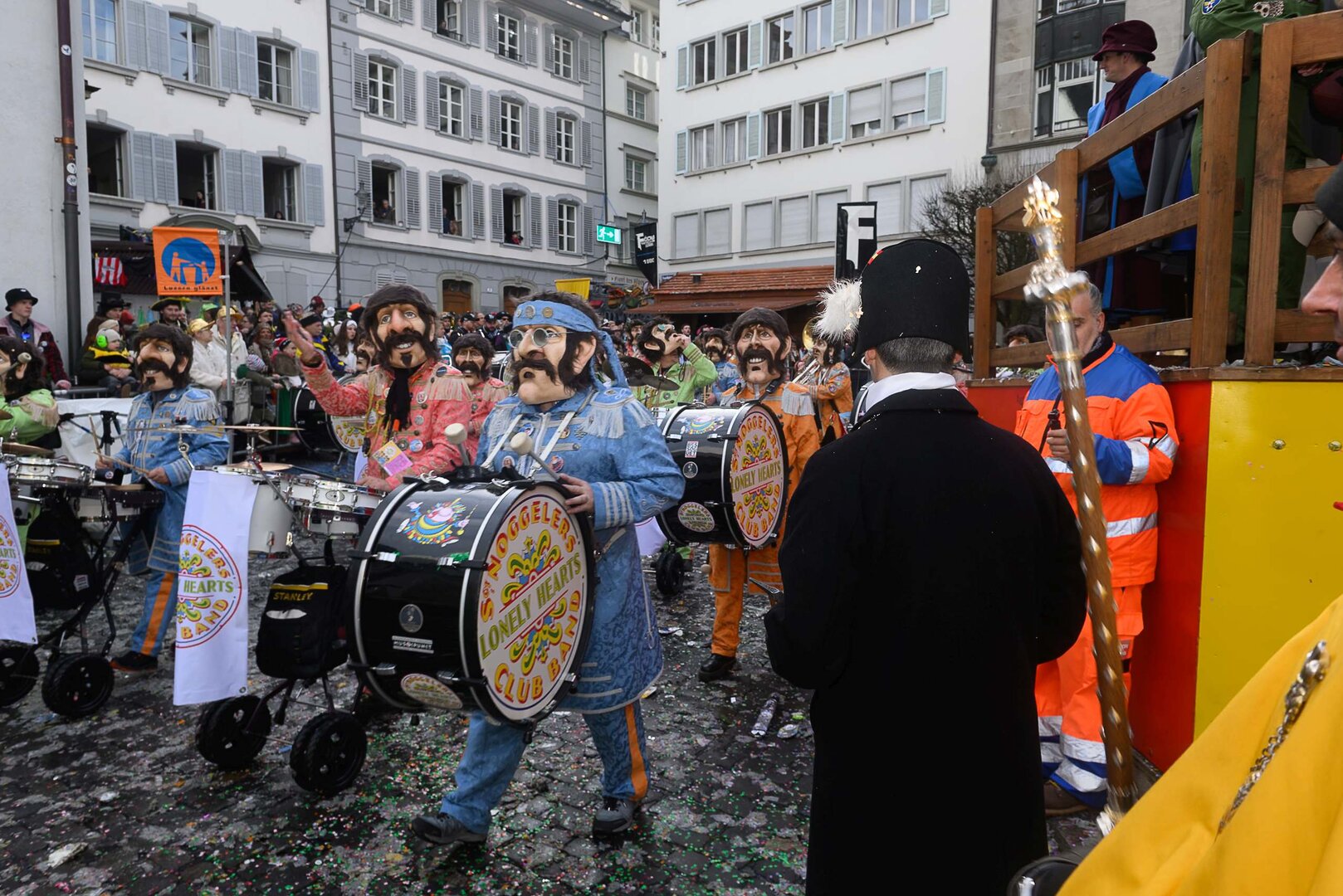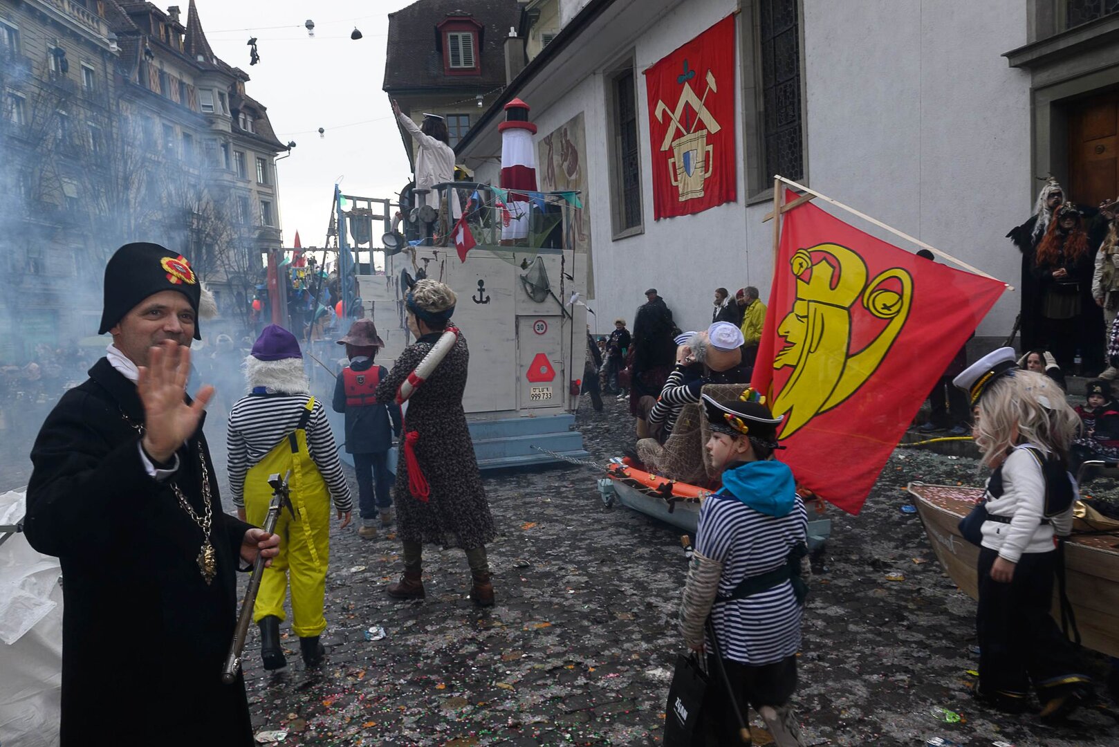ph. 47 Umzugsnummern konnte das LFK in diesem Jahr einladen, mehrere Teilnehmenden mussten vertröstet werden. Punkt 14 Uhr starteten die Bannerherren zu Pferd der vier LFK-Zünfte und -Gesellschaften, vom Luzernerhof via Schweizerhofquai, Kapellplatz mit Fritschibrunnen, Seebrücke, Bahnhofplatz, Pilatusstrasse bis hin zur Winkelriedstrasse, mit Auflösung beim Helvetiaplatz. Das Wetter war trotz regnerischen Vorhersagen äusserst Milde und sogar die Sonne zeigte sich einige Male. Petrus muss ein Fasnächtler sein!