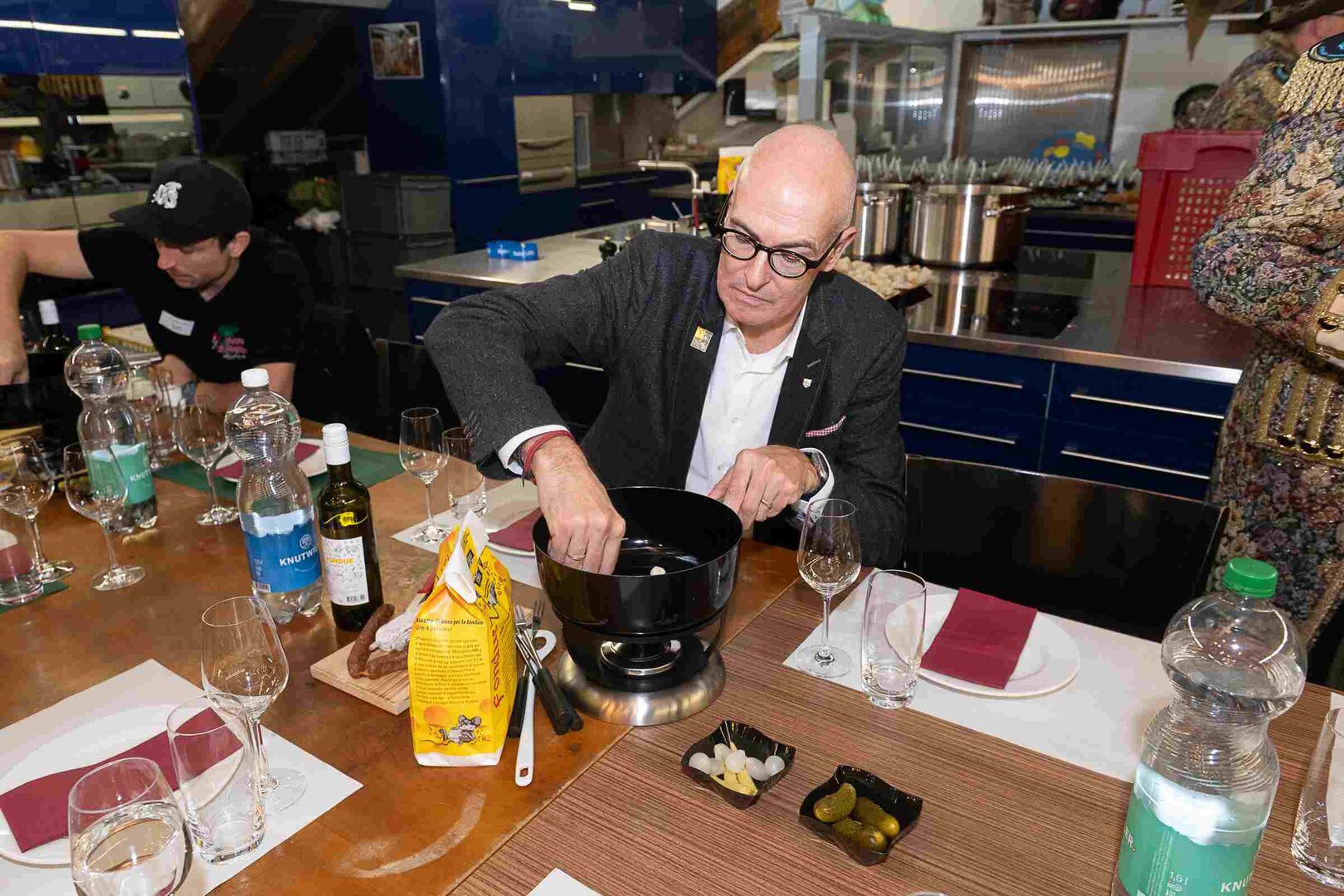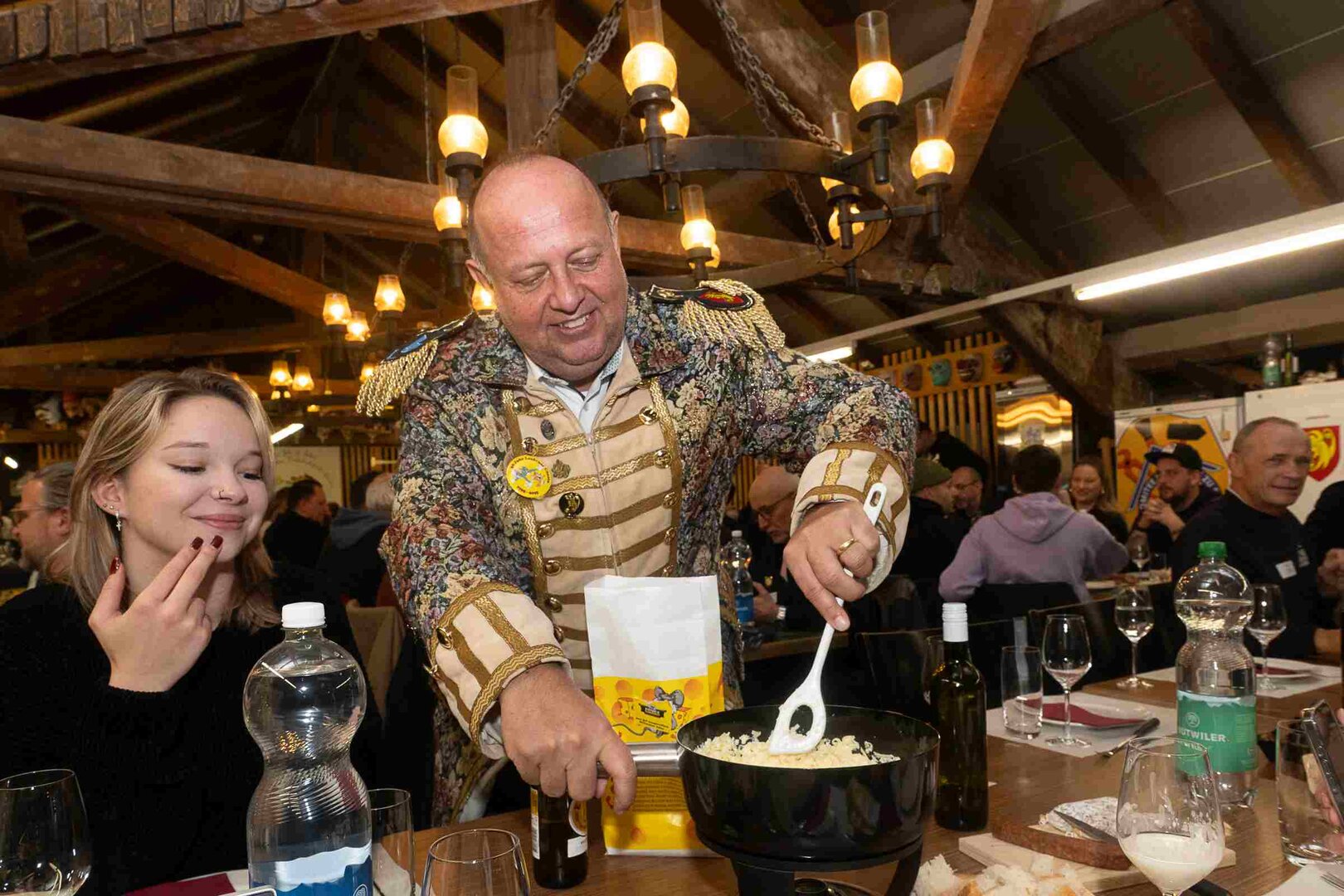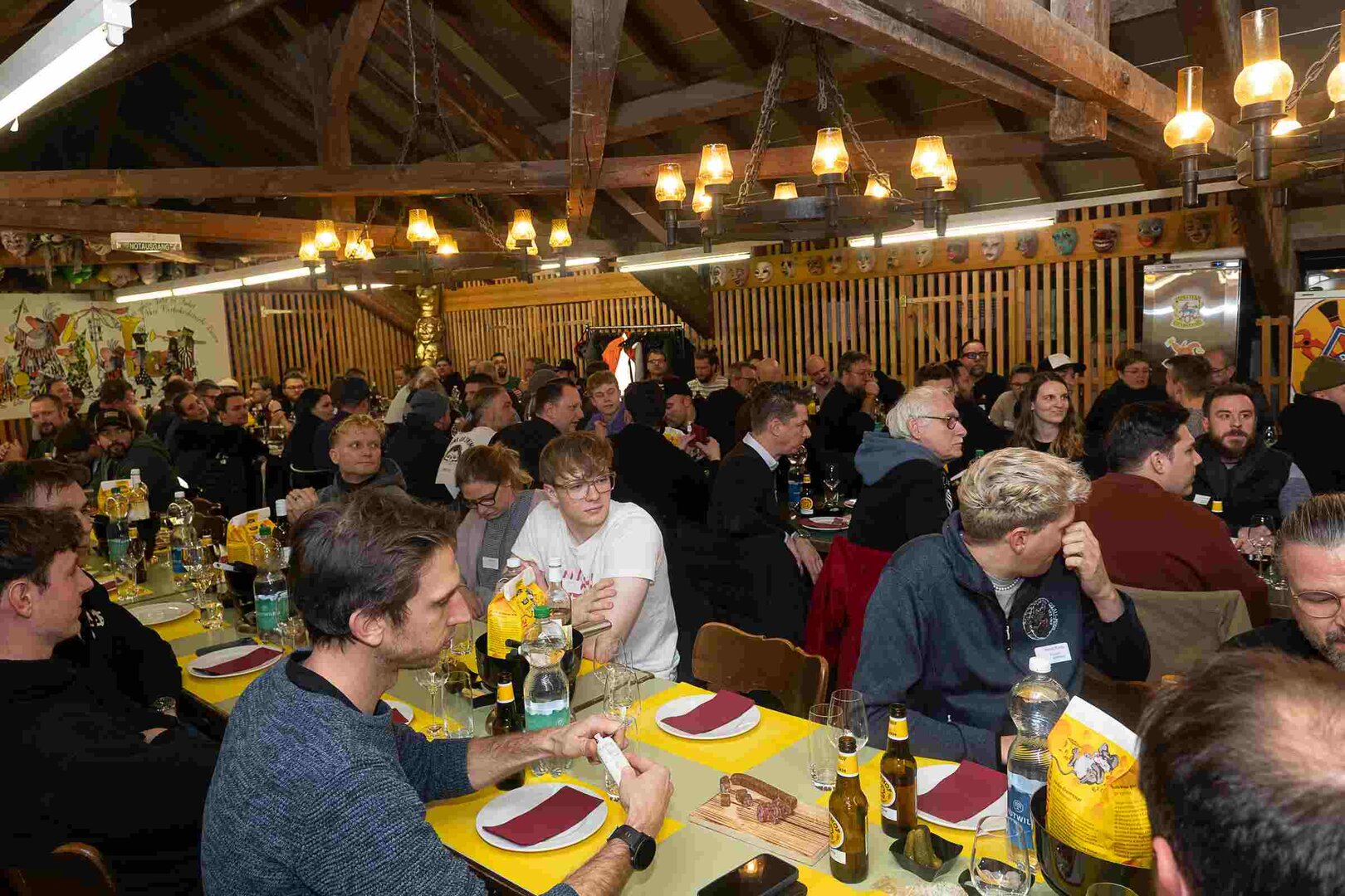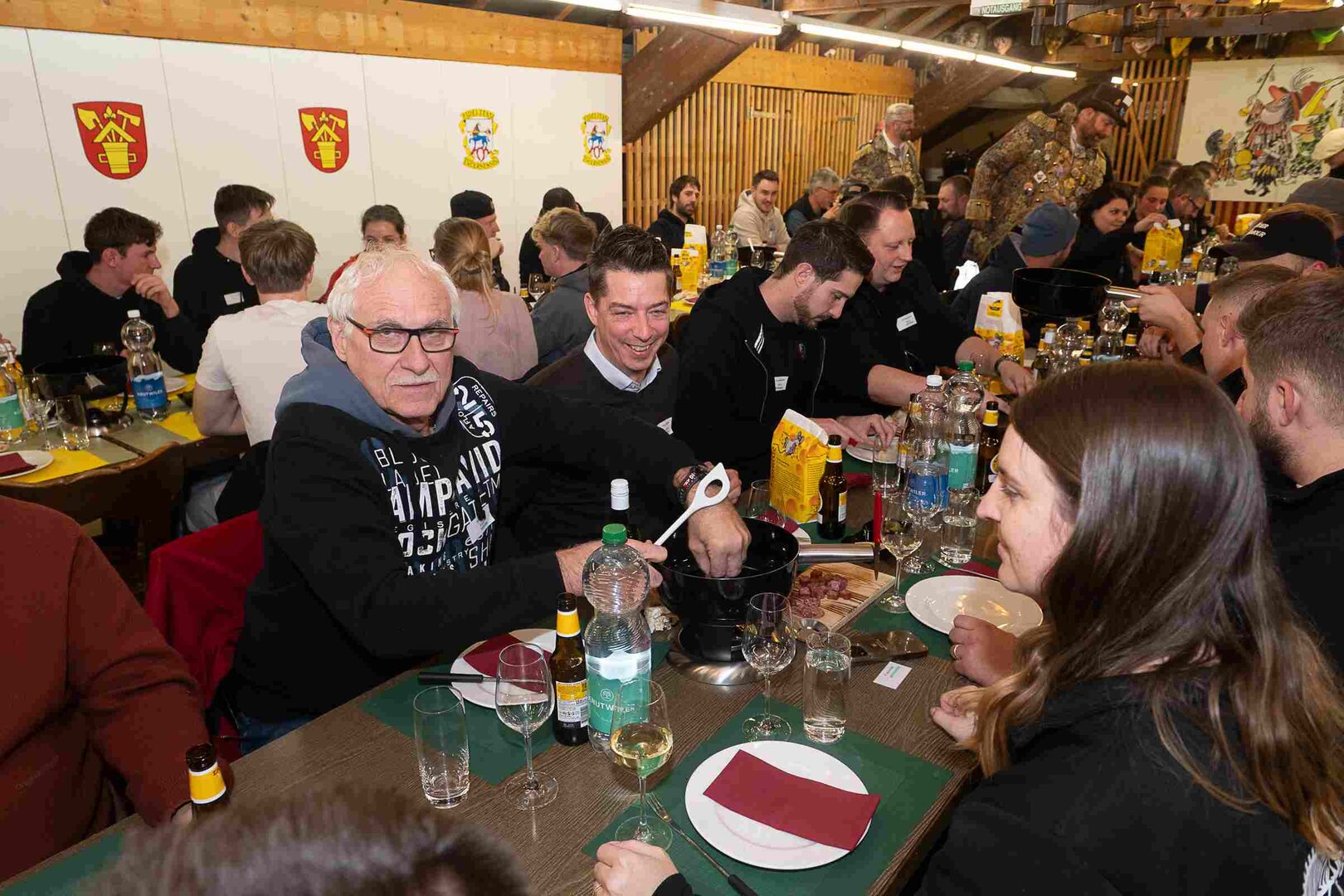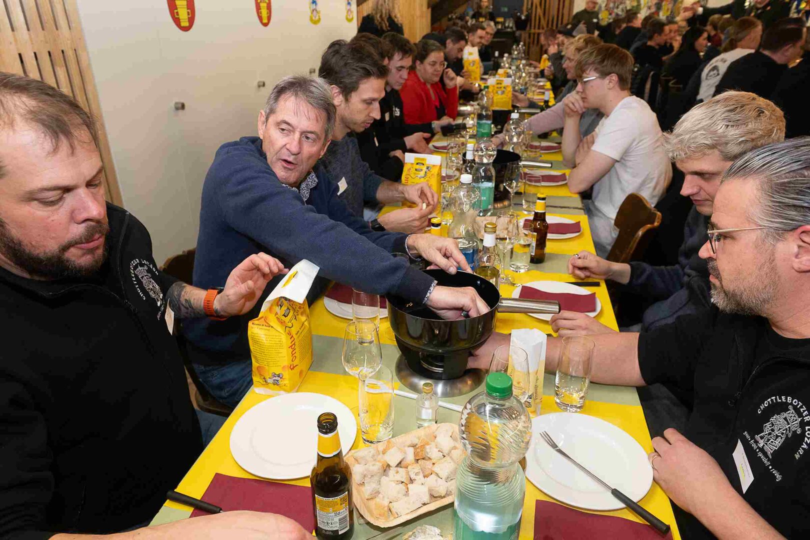 Die Atmosphäre im Fliegerschuppen war schnell festlich und gesellig. Beim gemeinsamen Fondue bot sich reichlich Gelegenheit für Gespräche und Begegnungen. Dass aus einem gewöhnlichen Donnerstagabend schliesslich ein deutlich längerer wurde, passte am Ende perfekt – denn gerade diese Traditionen machen das Treffen jedes Jahr besonders.