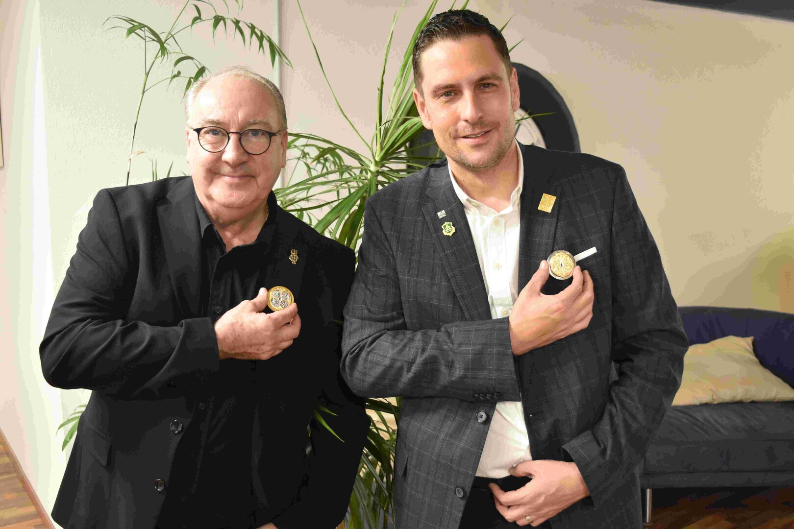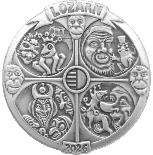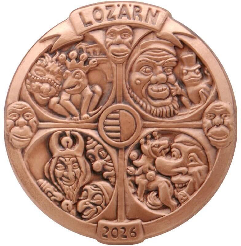 ph. Nachdem im Sommer der LFK-Präsident Flavio Boschian mit seinem Motto Carnevale di Lucerna inthronisiert wurde, steht nun im November der nächste Höhepunkt vor der Tür. Die Fasnachtsplakette 2026 wird der Öffentlichkeit präsentiert. Passend vereint die diesjährige Fasnachtsplakette zwei Jubiläen. Einerseits das 75. Jubiläum des Lozärner Fasnachtskomitées (LFK) und das 100-Jährige Bestehen der Lozärner Fasnachtsplakette, welche seinerzeit im Jahr 1926 durch die Vorgänger-Organisation dem «Luzerner Fasnachts-Comité» herausgegeben wurde. Diese beiden Jubiläen inspirierte mitunter auch den diesjährigen Gewinner des Plaketten-Wettbewerbes Basil Koch. Dabei handelt es sich um die Sujets der Anfangsplaketten, welche seinerzeit in den Jahren 1950 bis 1956 notabene von Otto Arnet entworfen wurden. Die Plakette visualisiert ein klassisches, stilistisch ruhiges Sujet, welche die vier tragenden Zünfte und Gesellschaften während der Anfangszeiten des LFK’s einfängt. Dabei wirkt die diesjährige Lozärner Fasnachtsplakette nicht verspielt und verschnörkelt, sondern trifft den Zeitgeist der Lozärner Fasnachtsplaketten aus den 50er und 60er Jahre perfekt. Detailverliebt fügen sich denn auch die drei «Huerenäffli» am Rand der Plakette ein.
